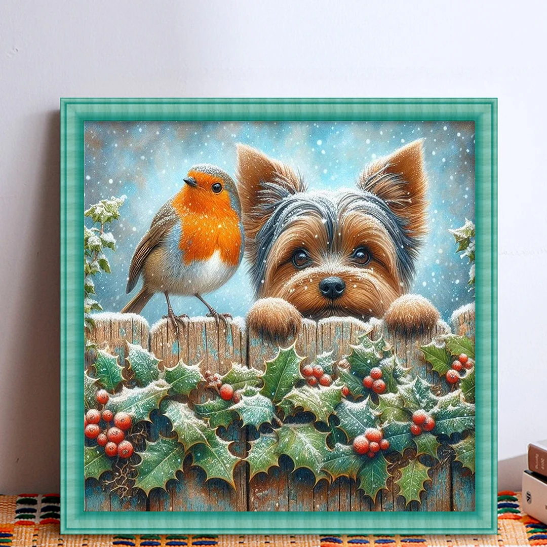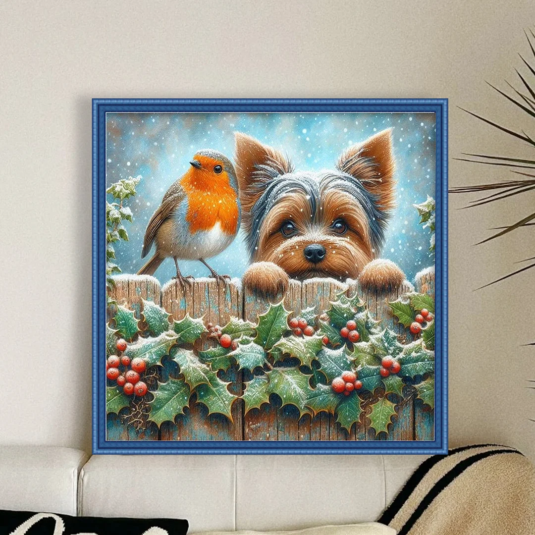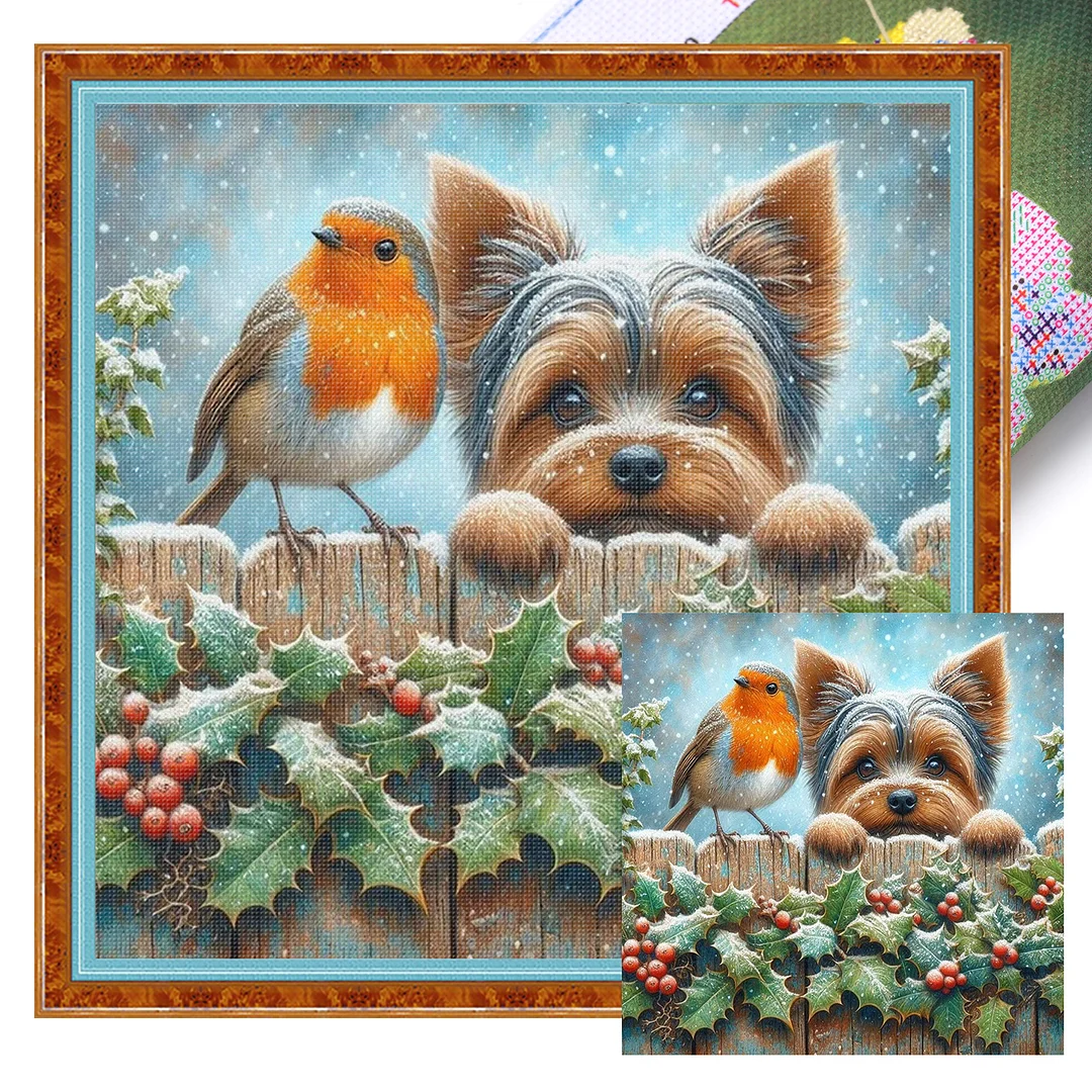 11CT Stamped Cross Stitch Kit - Bird Yorkshire Terrier (40*40cm)