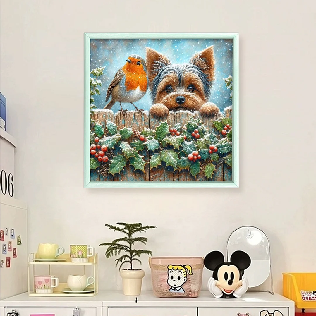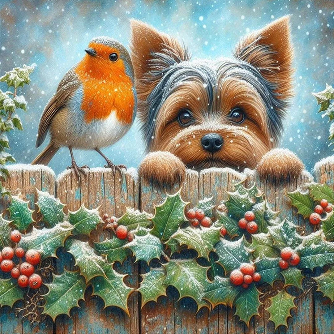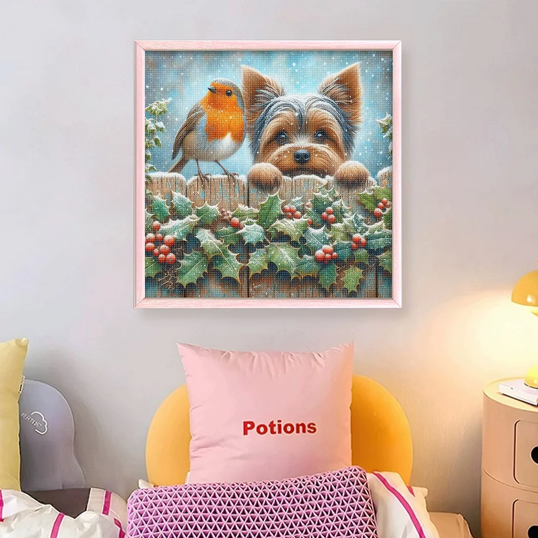 11CT Stamped Cross Stitch Kit - Bird Yorkshire Terrier (40*40cm)