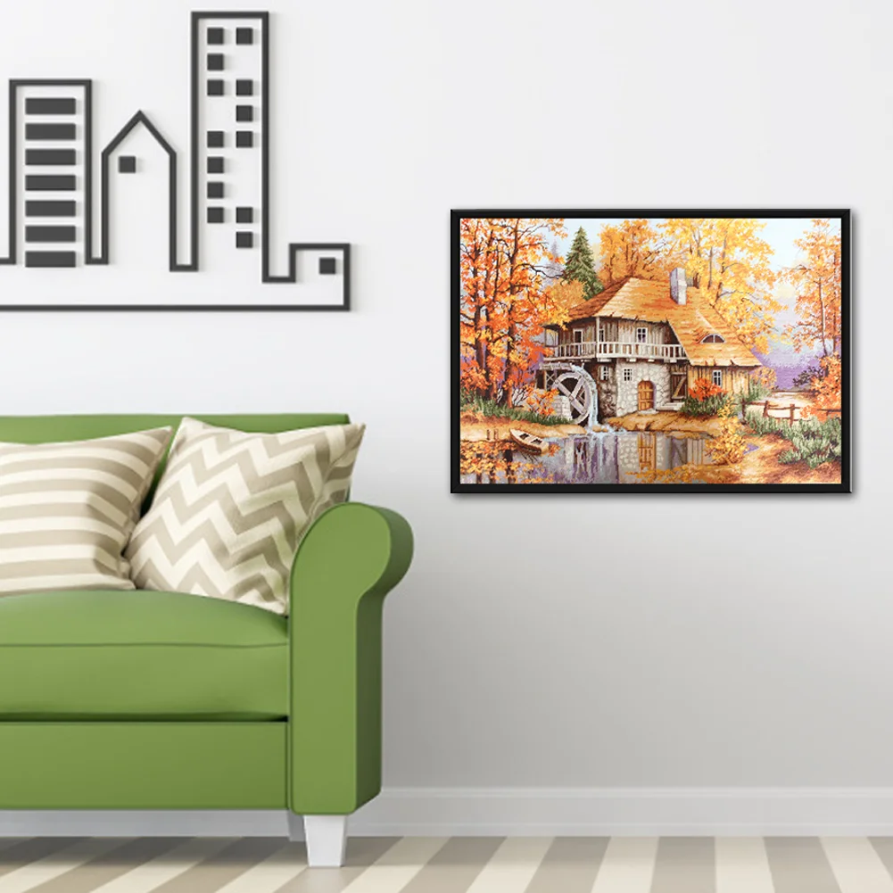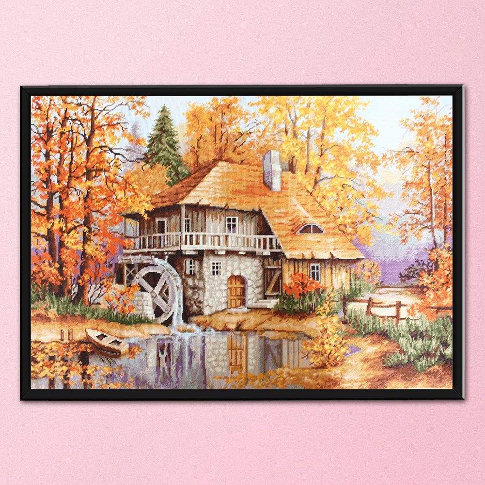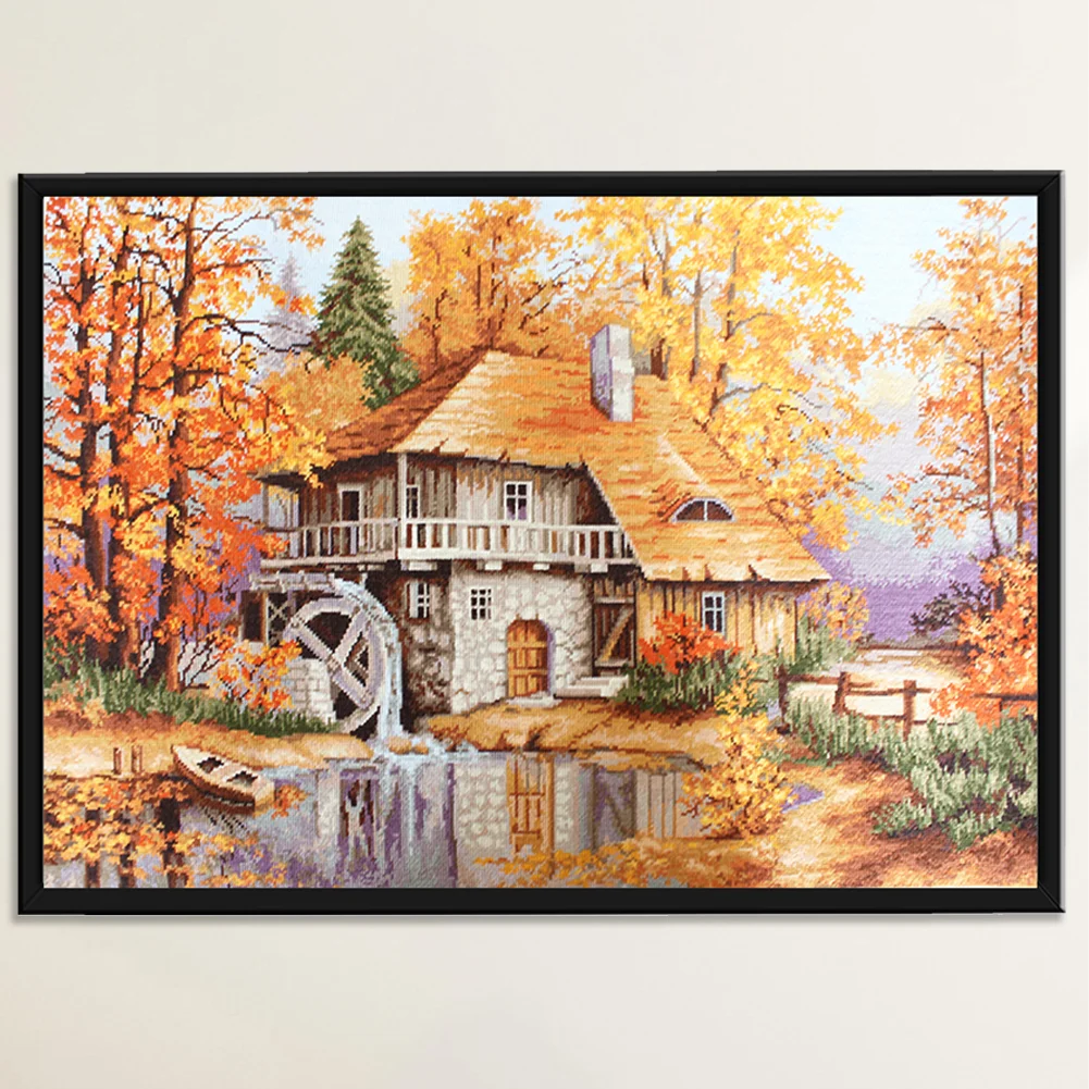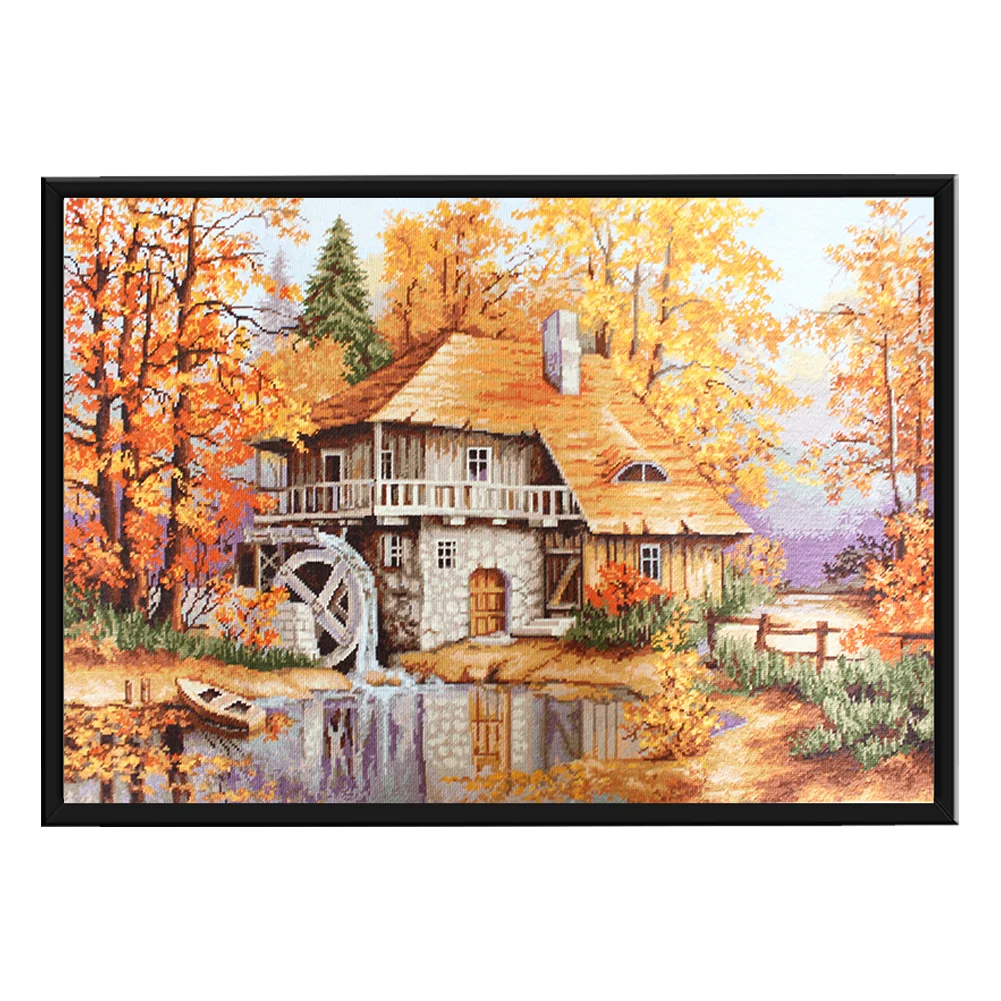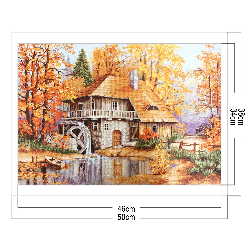 Full Embroidery Forest Cabin DIY Cross Stitch Kits Stamped Canvas 11CT Needlework Sets Home Decor
