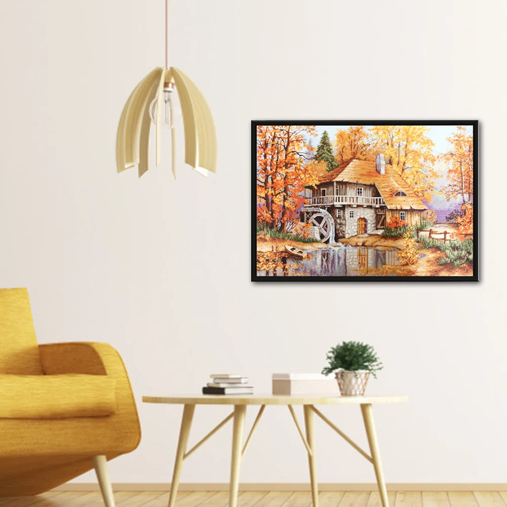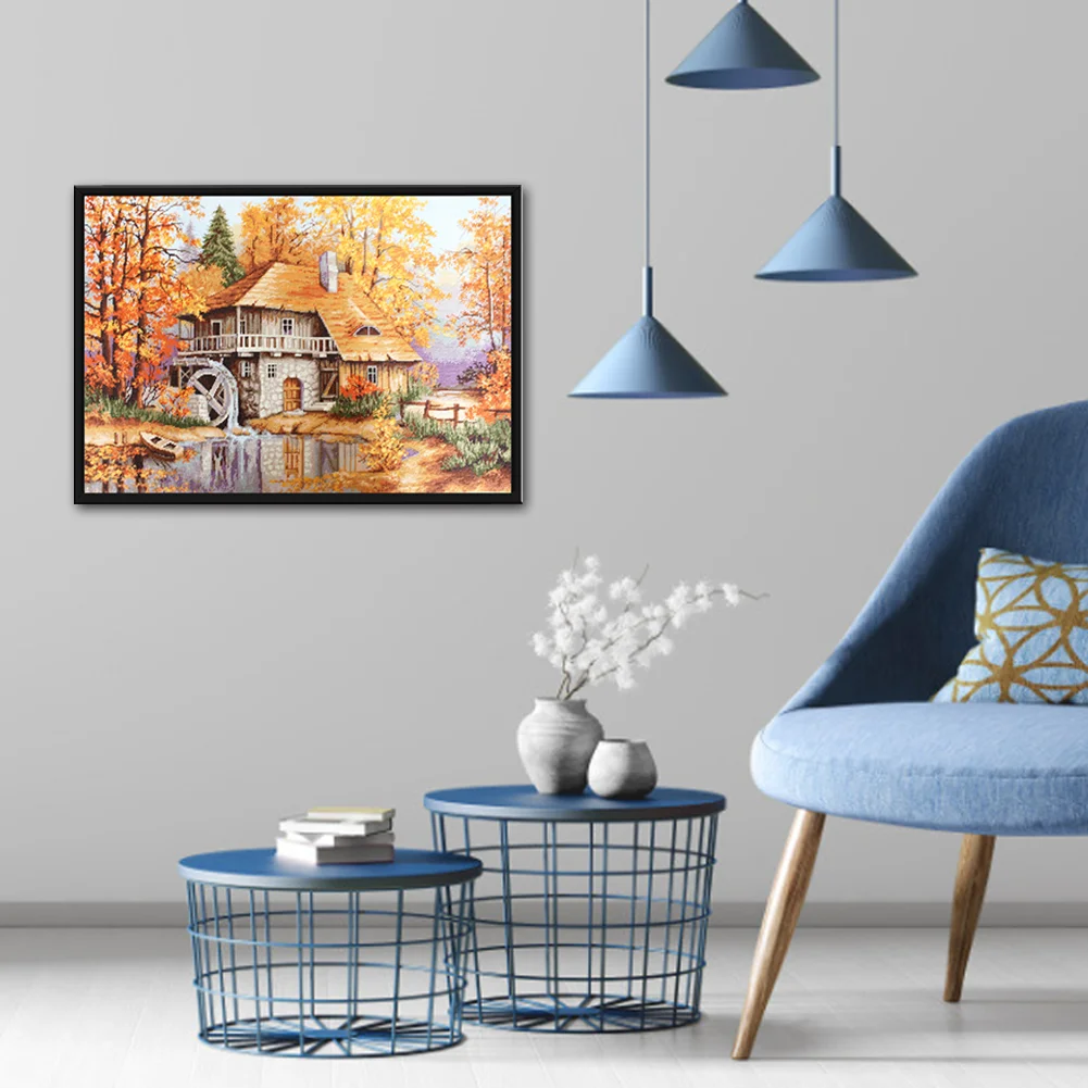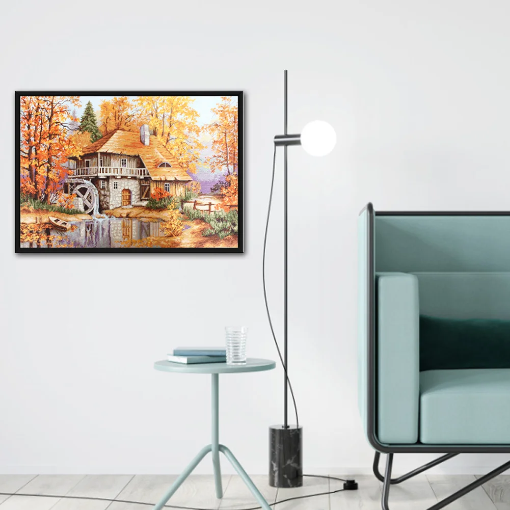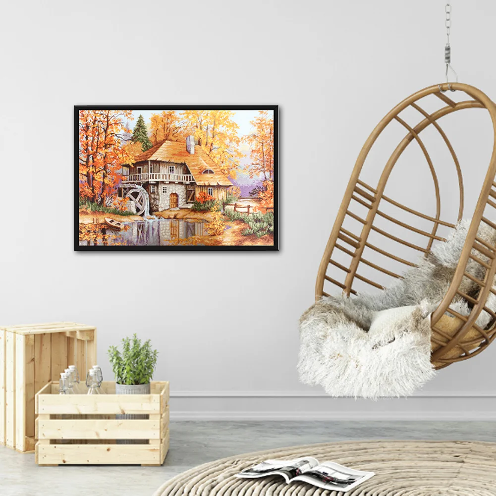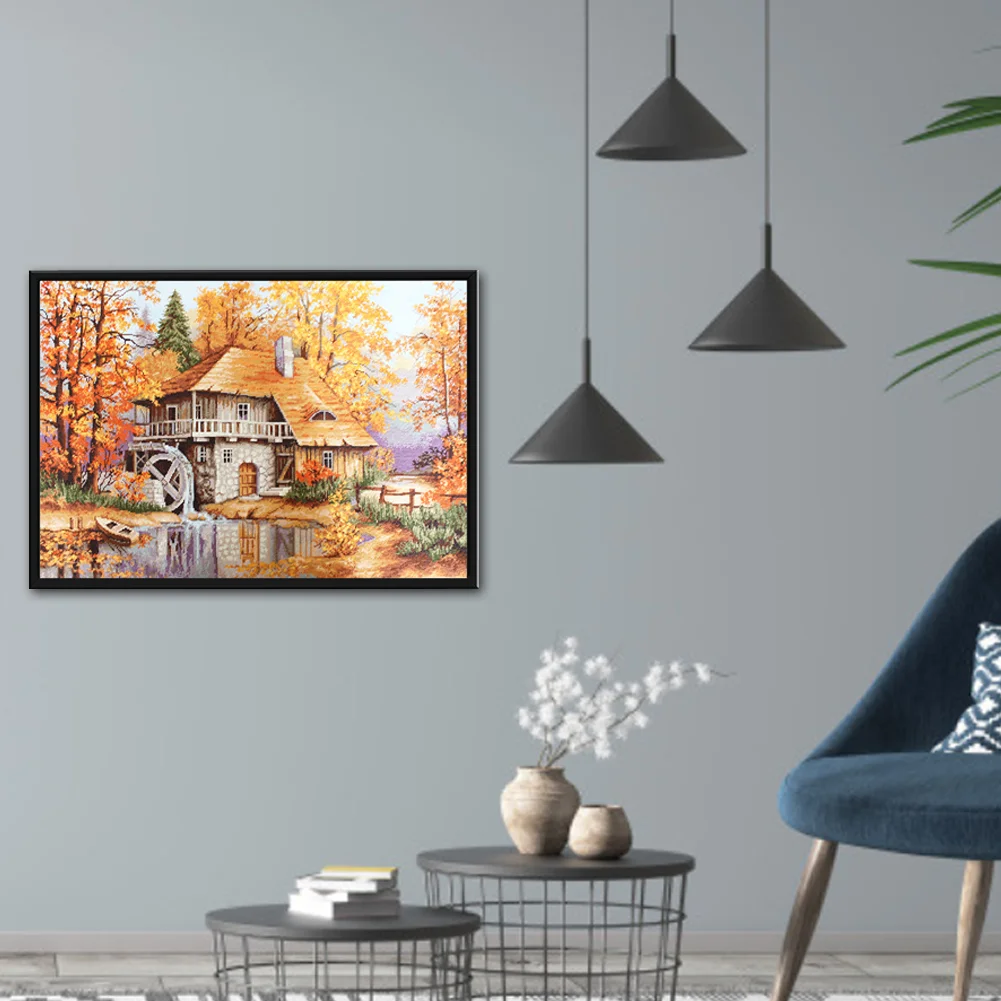 Full Embroidery Forest Cabin DIY Cross Stitch Kits Stamped Canvas 11CT Needlework Sets Home Decor