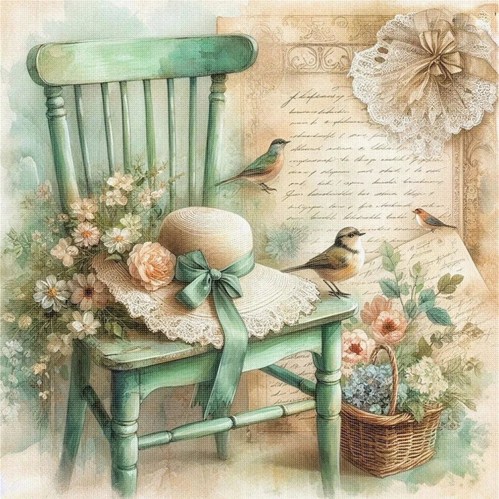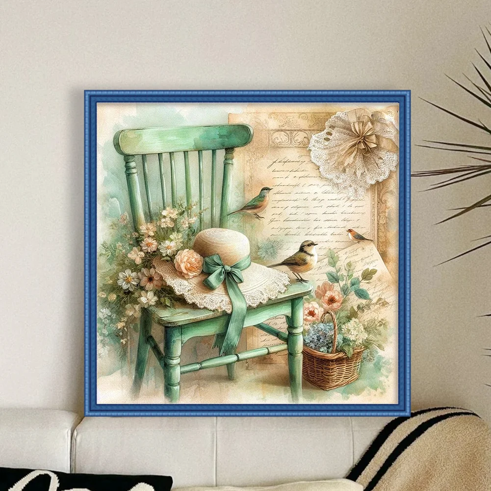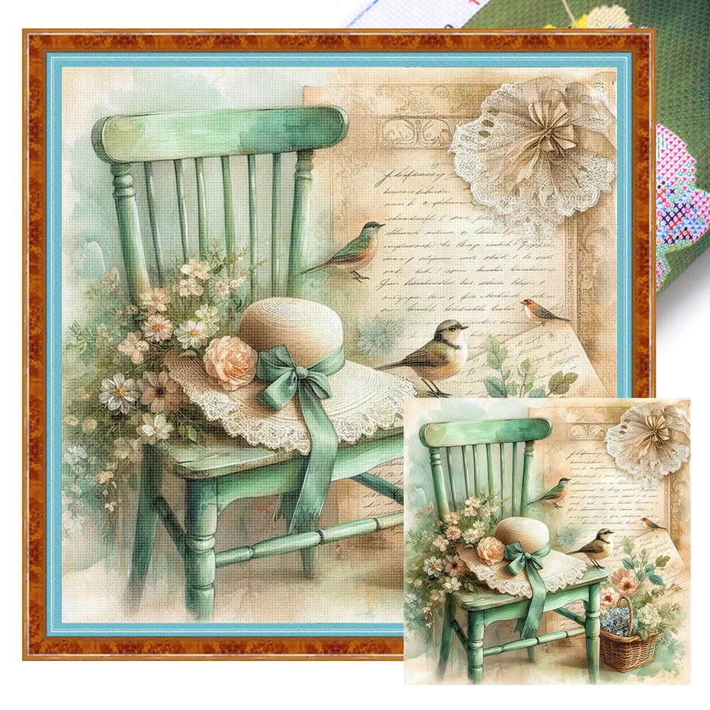 11CT Stamped Cross Stitch Kit - Chair Flower Hat (40*40cm)