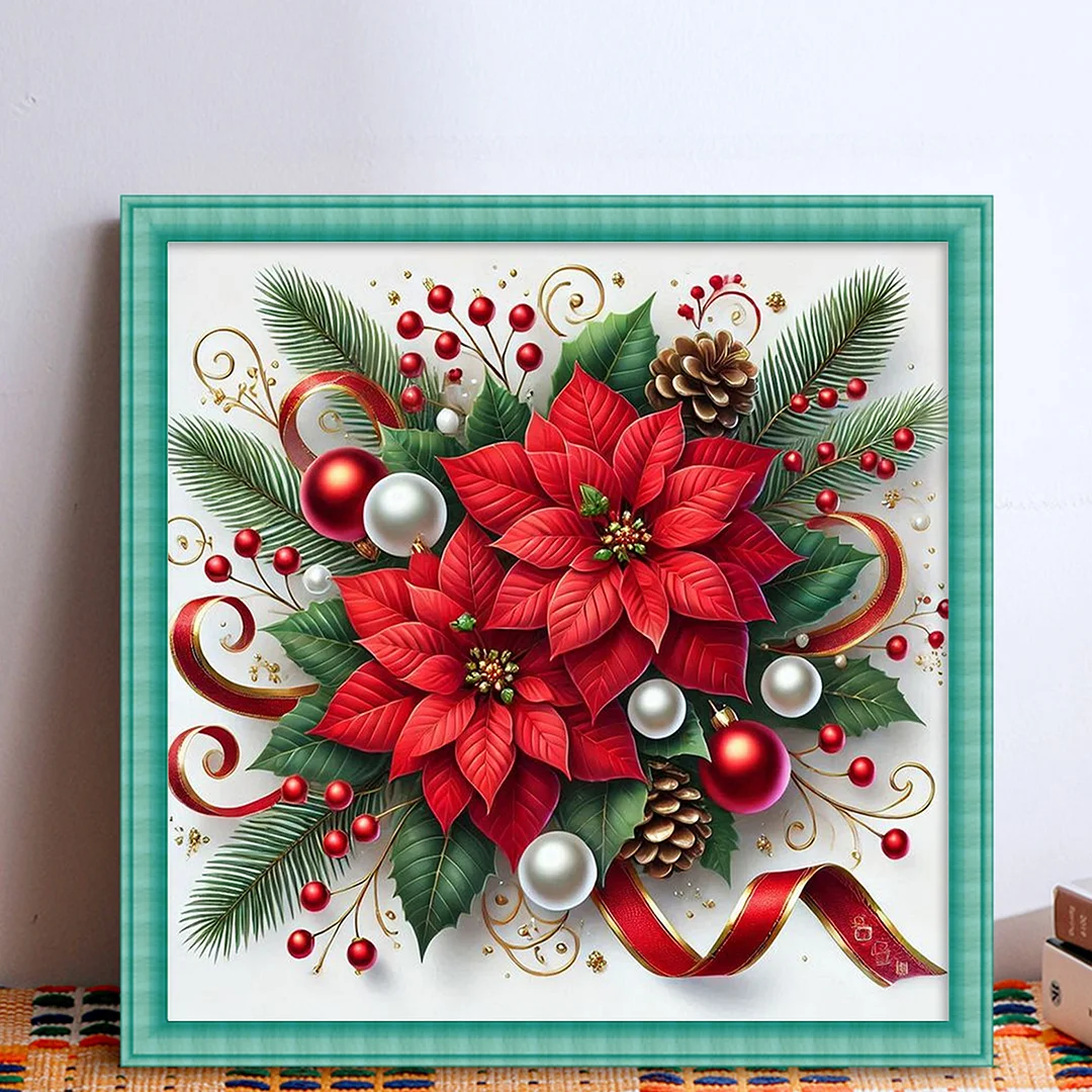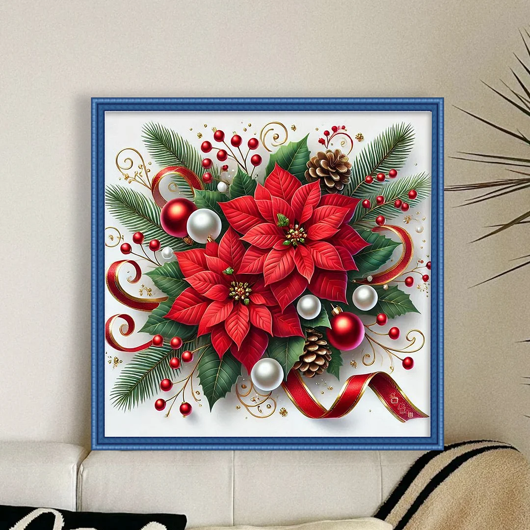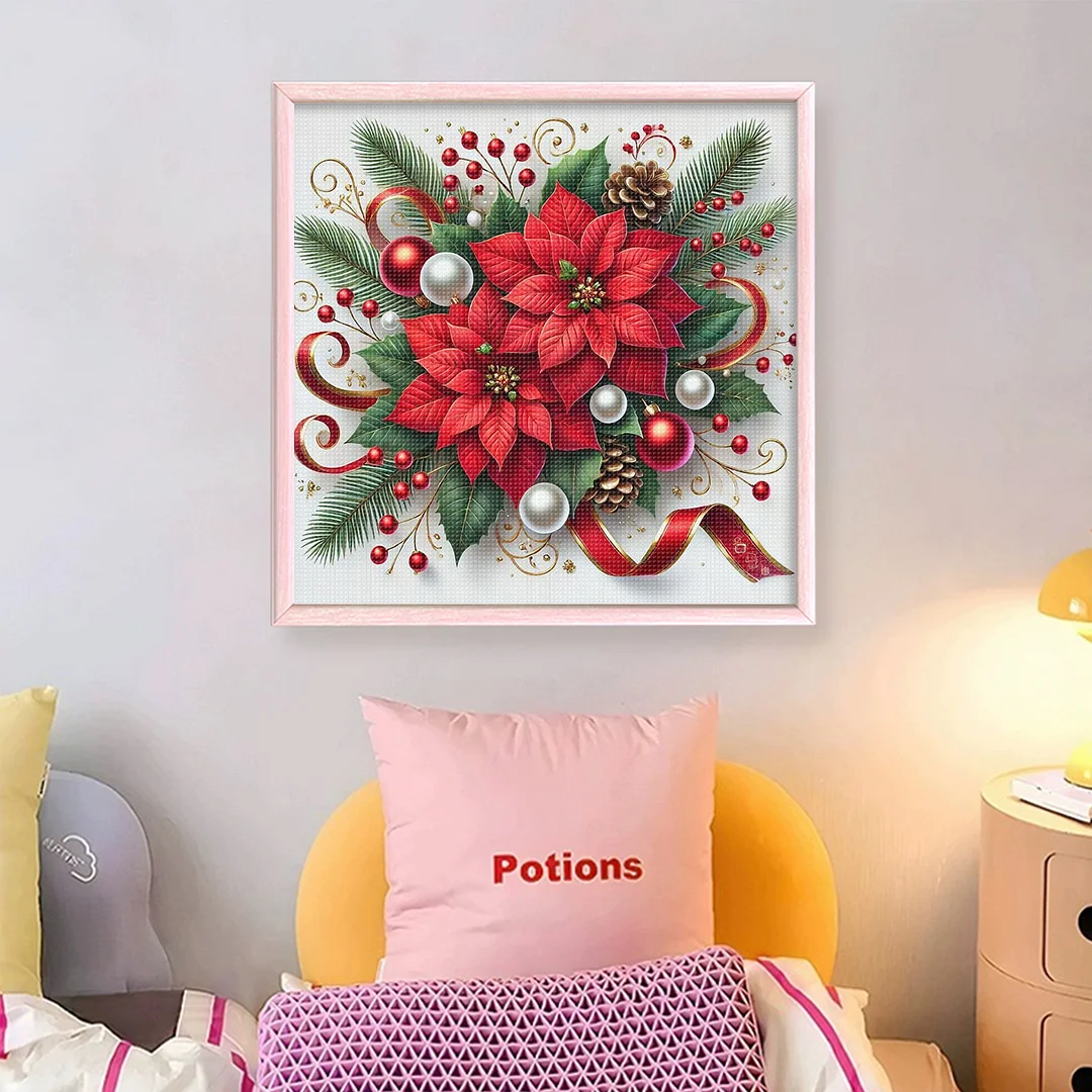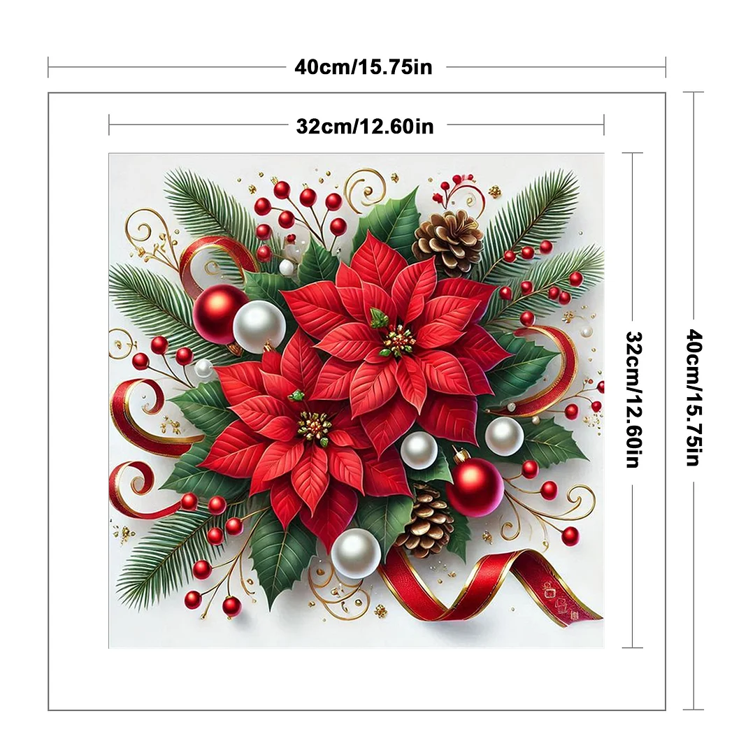 11CT Stamped Cross Stitch Kit - Christmas Red Flower (40*40cm)