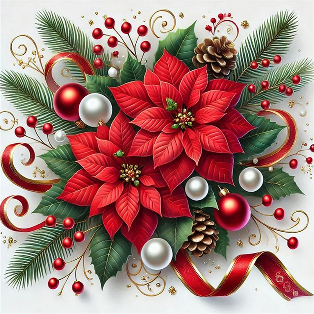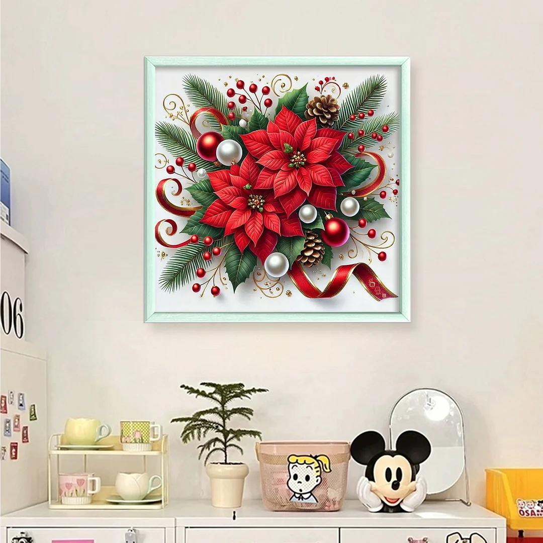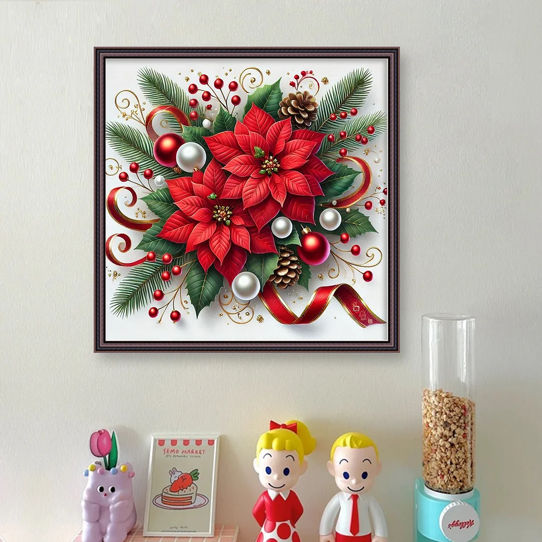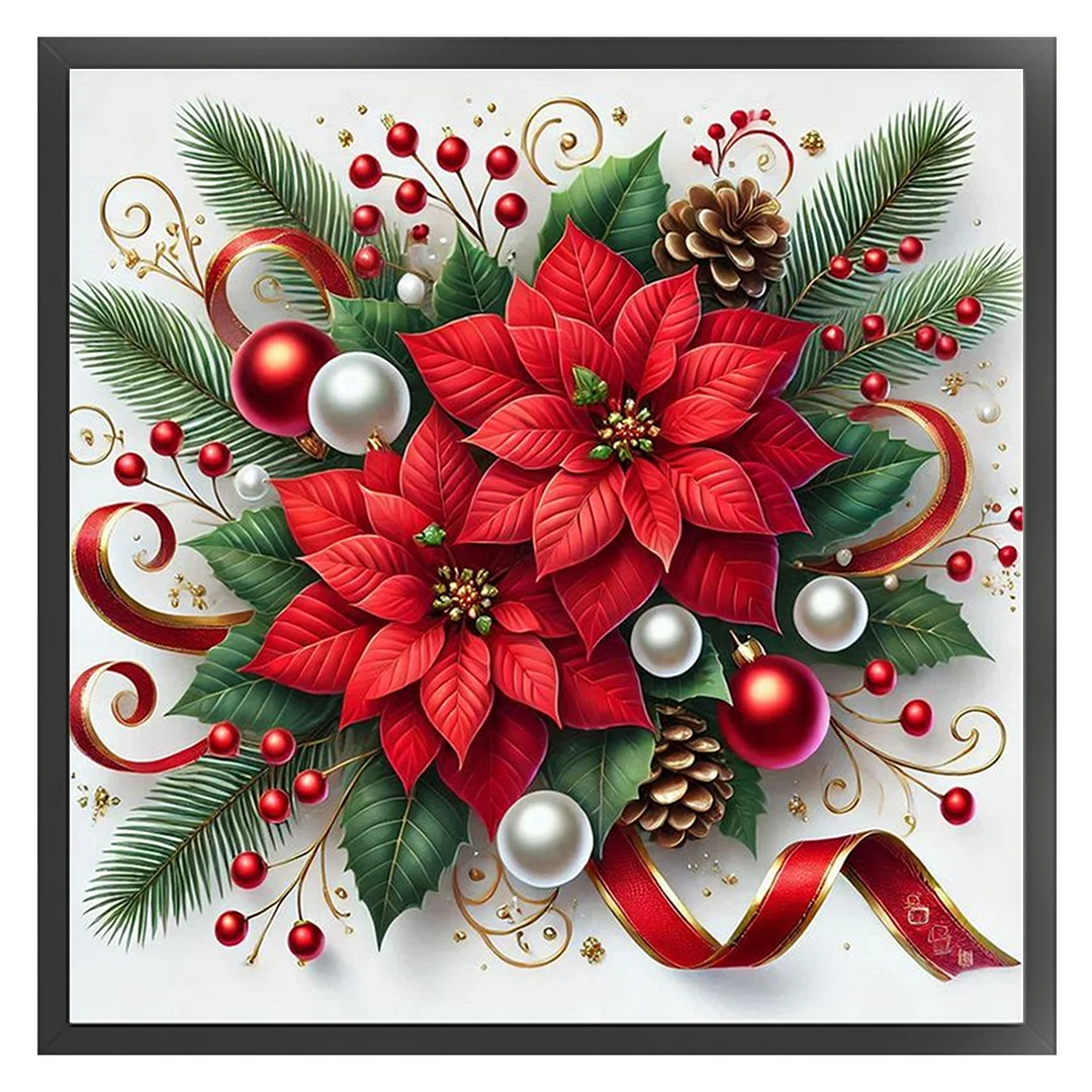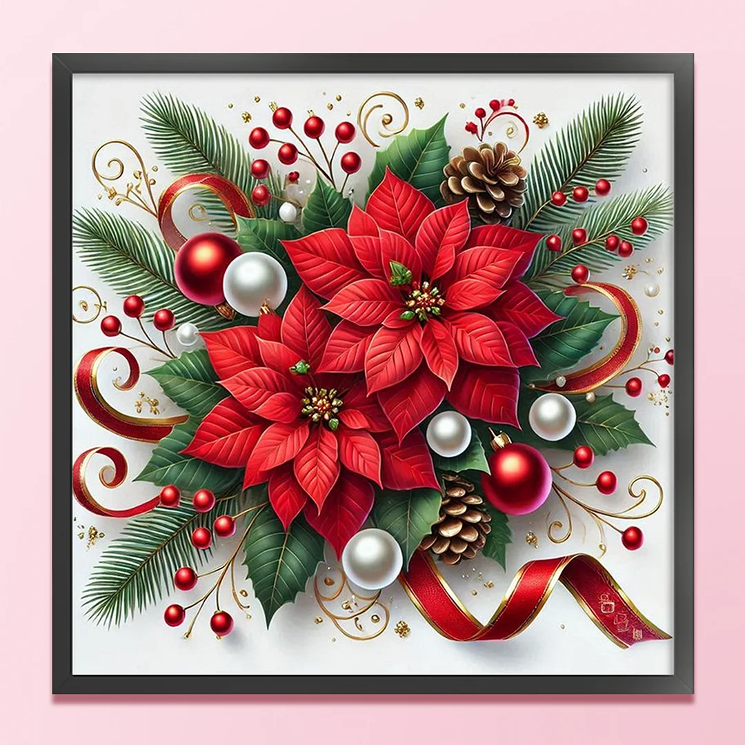 11CT Stamped Cross Stitch Kit - Christmas Red Flower (40*40cm)