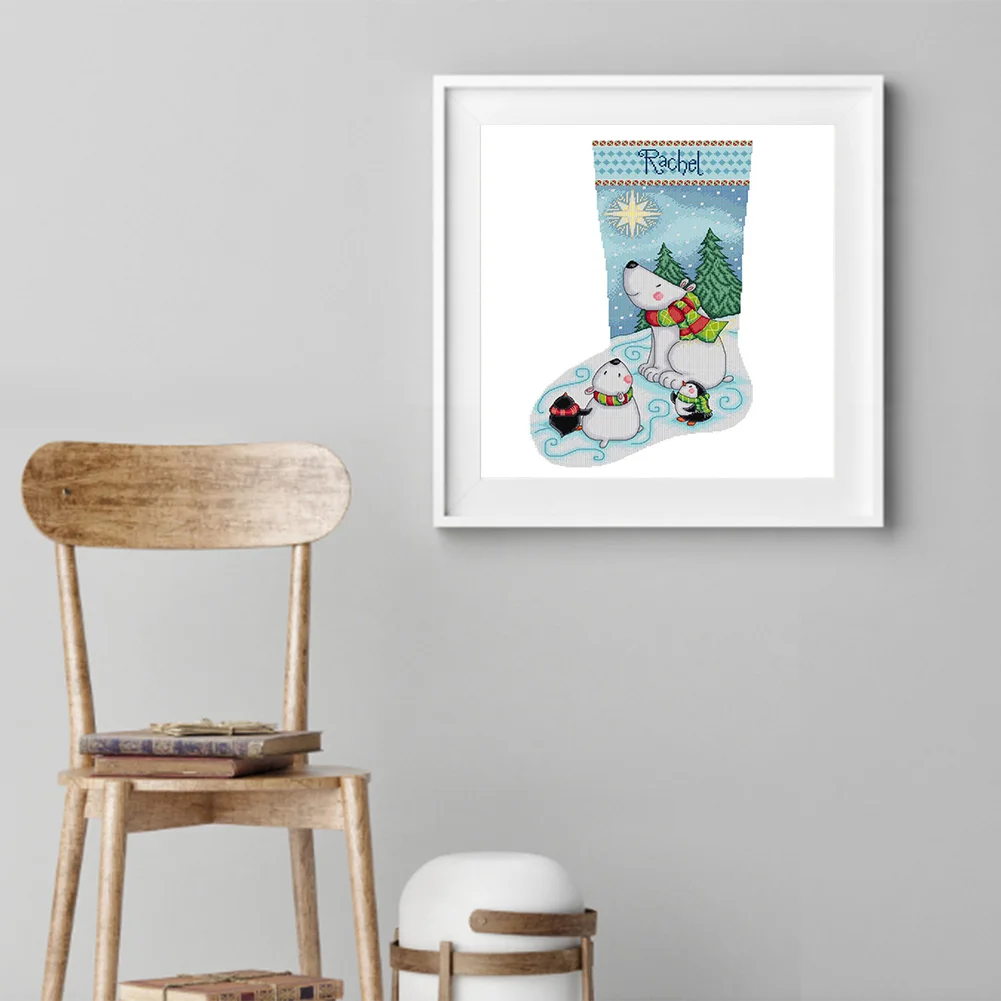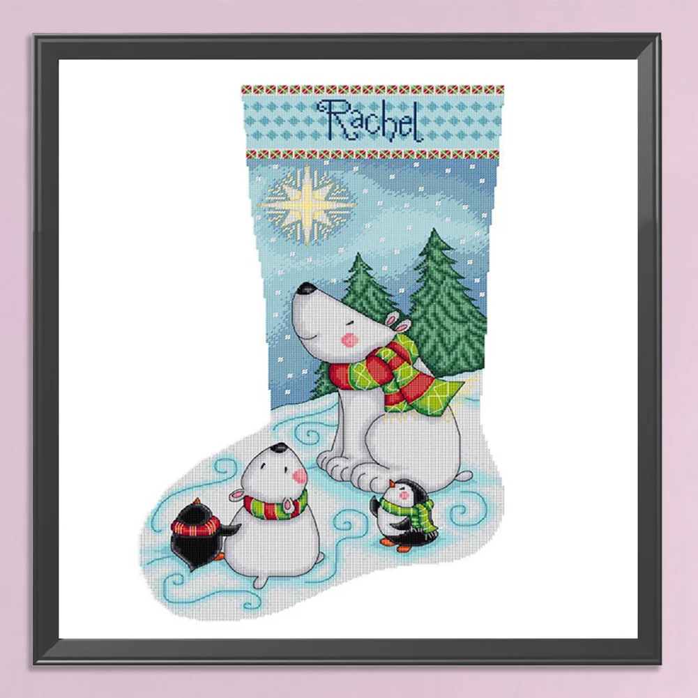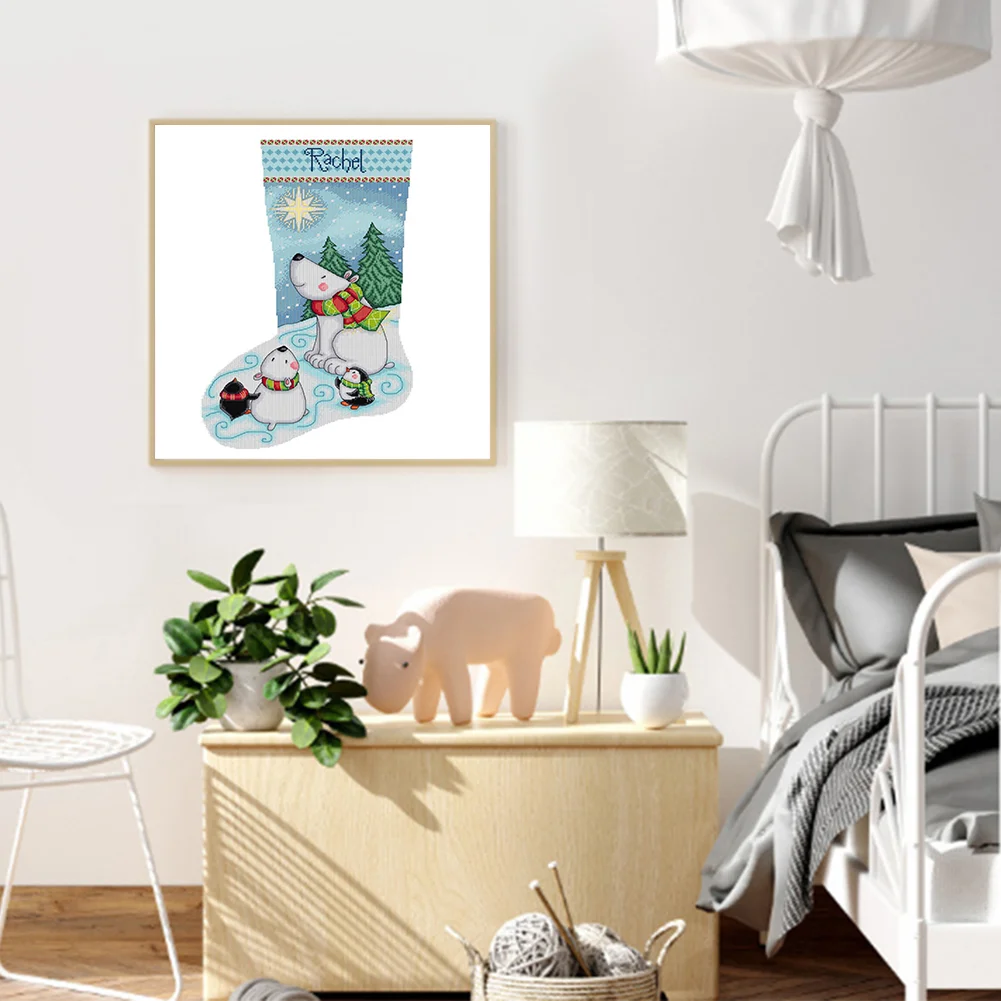 Partial Embroidery Christmas Stocking DIY Cross Stitch Kits Stamped Canvas 11CT Needlework Sets Home Decor