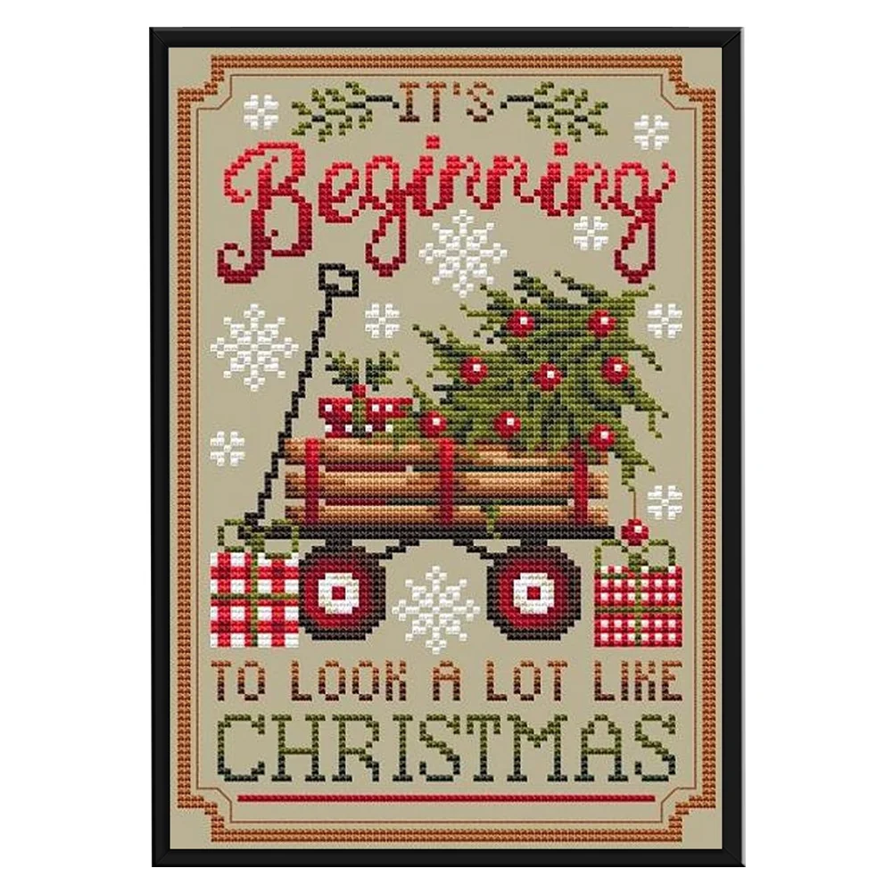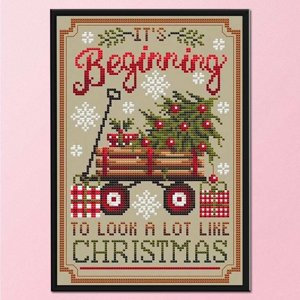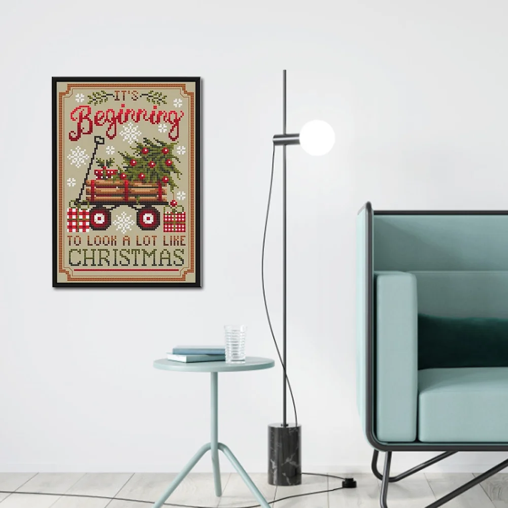 Full Embroidery Christmas Trailer Needles Thread Cross Stitch Cotton 11CT 3 Strand Stamped Embroidery Kits Printed Canvas DIY Art Needlework Home Decoration Picture Craft