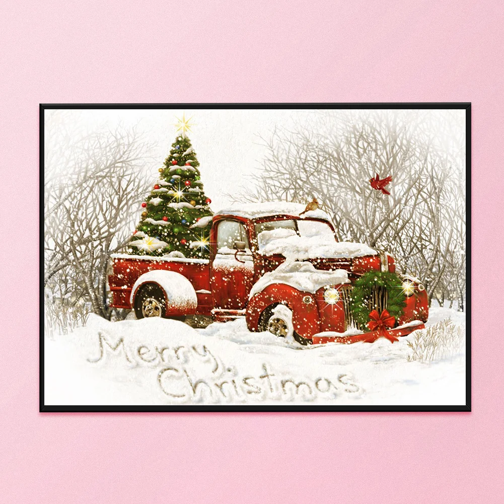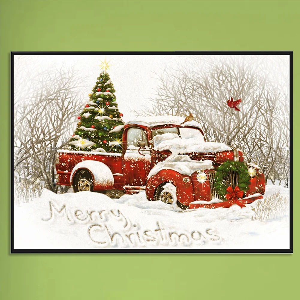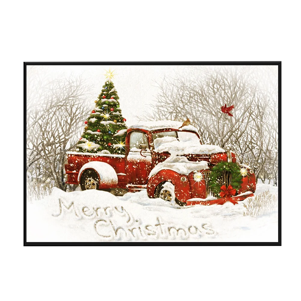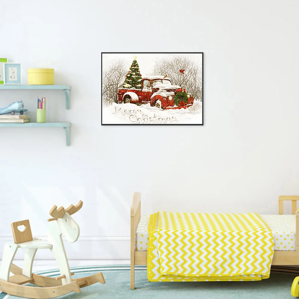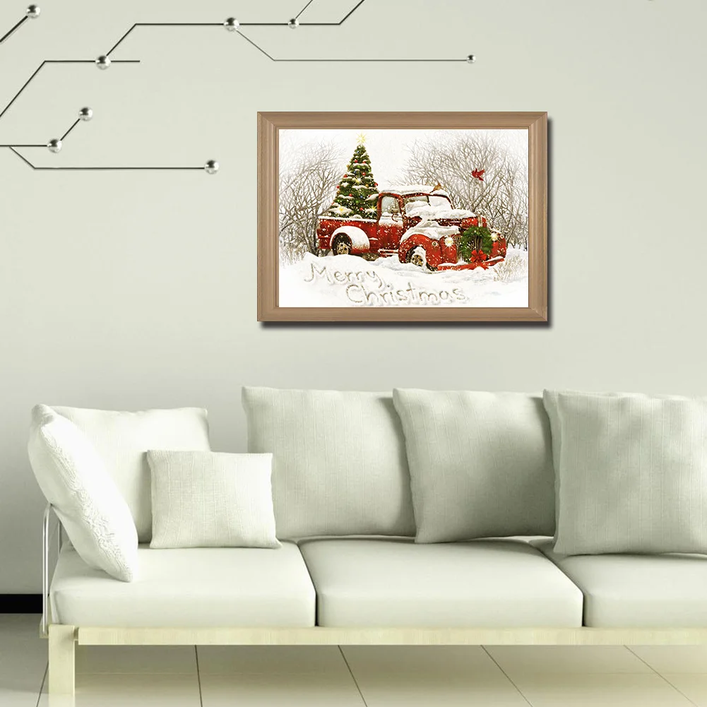 Full Embroidery Christmas Tree Car Needles Thread Cross Stitch Cotton 11CT 3 Strand Stamped Embroidery Kits Print Canvas DIY Art Needlework Home Decoration Picture Craft