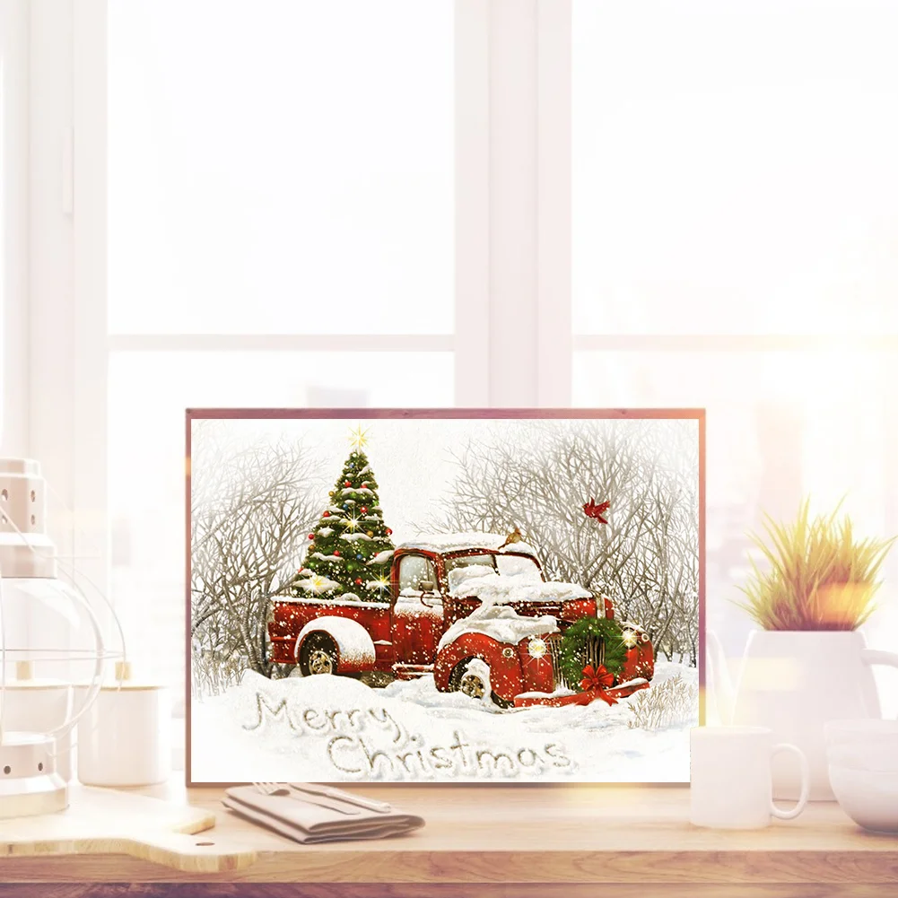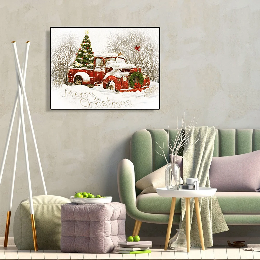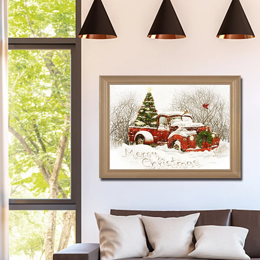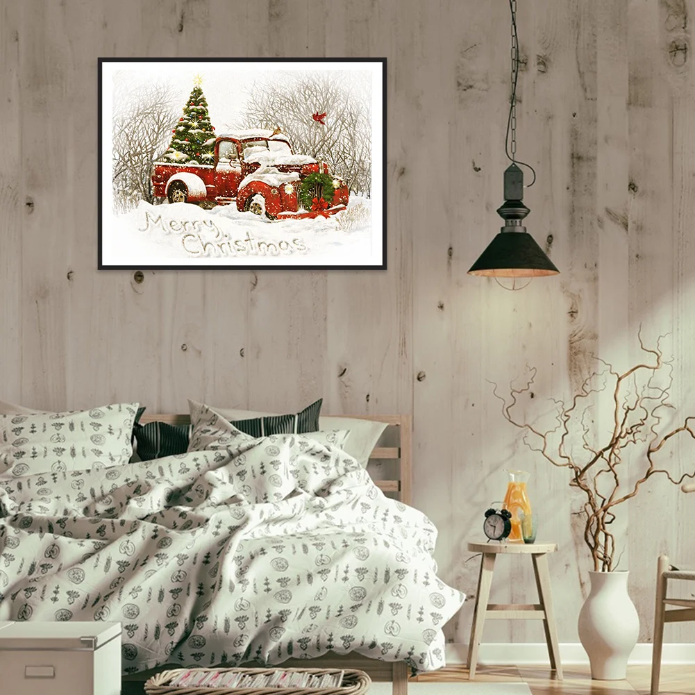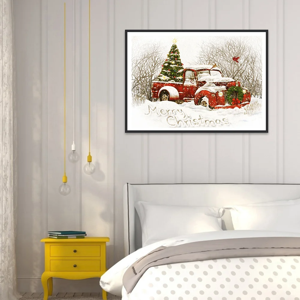 Full Embroidery Christmas Tree Car Needles Thread Cross Stitch Cotton 11CT 3 Strand Stamped Embroidery Kits Print Canvas DIY Art Needlework Home Decoration Picture Craft