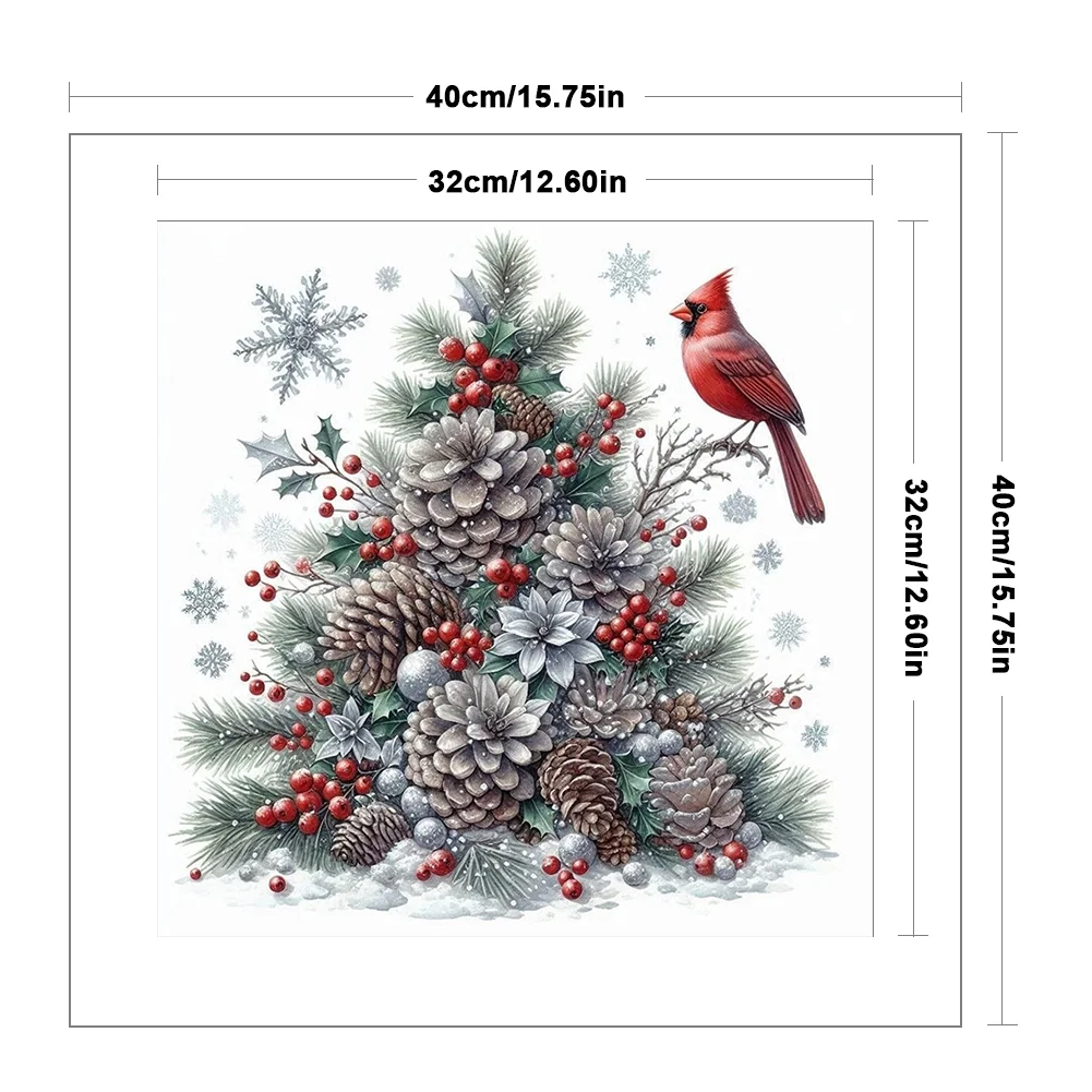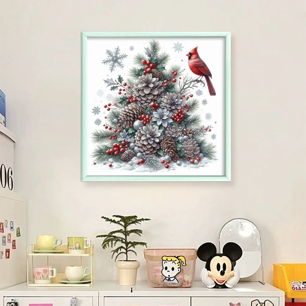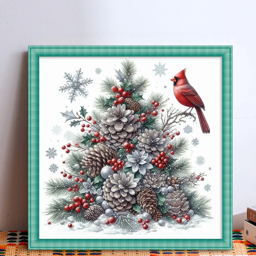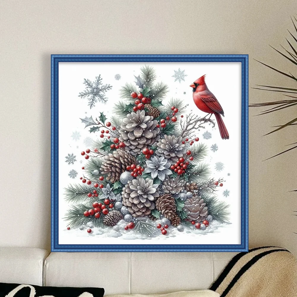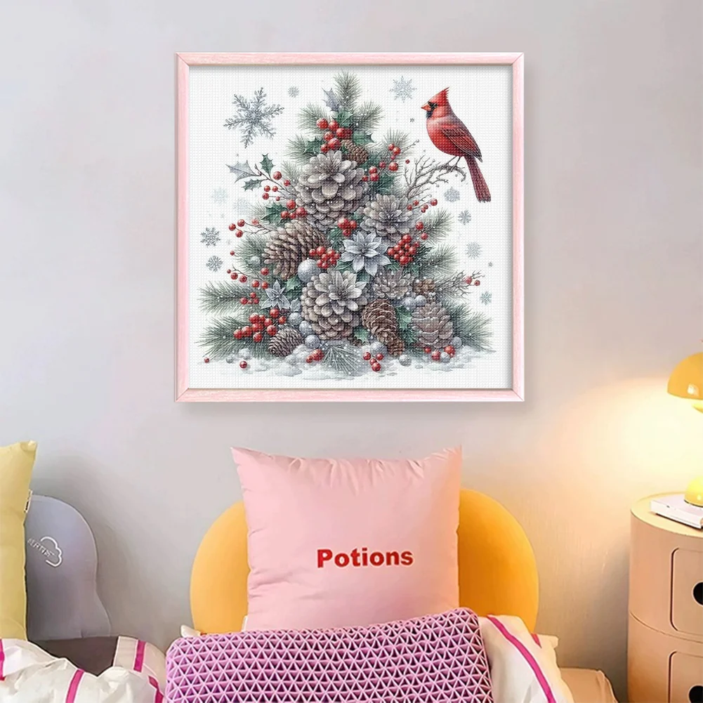 11CT Stamped Cross Stitch Kit - Christmas Tree Red Bird (40*40cm)
