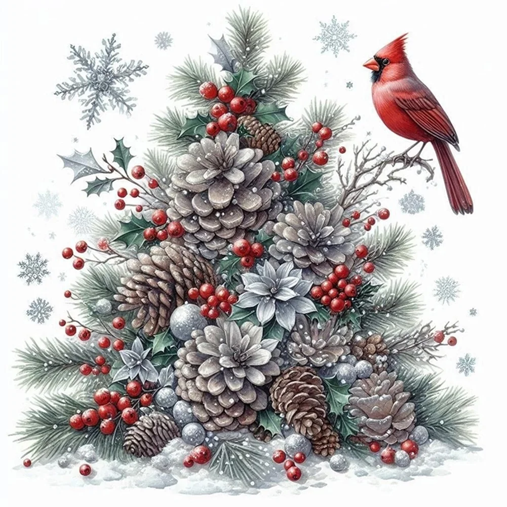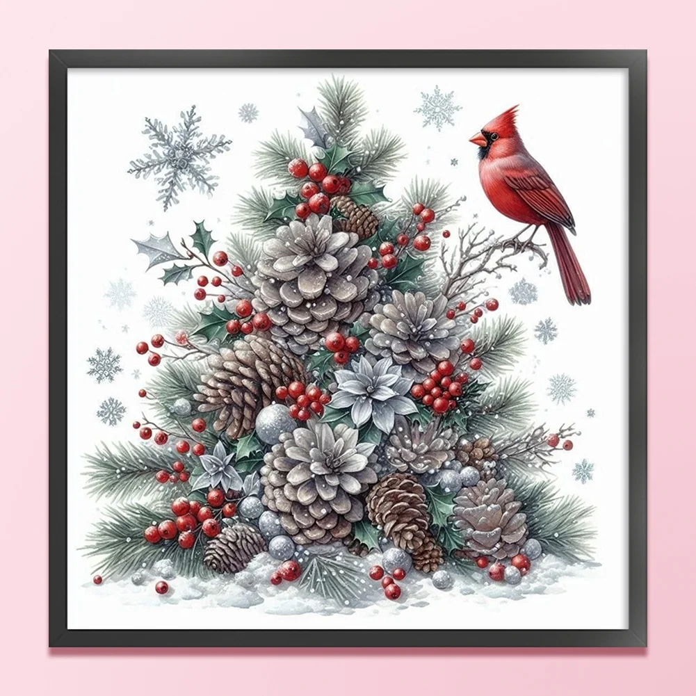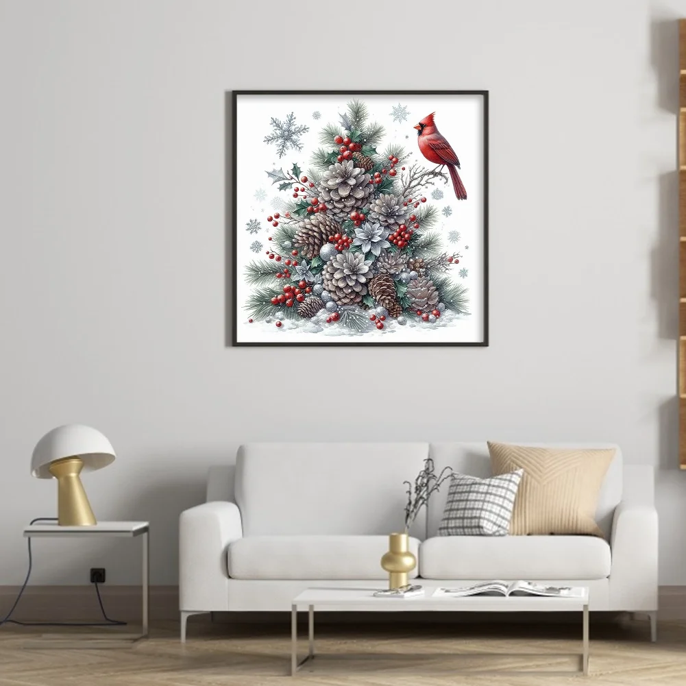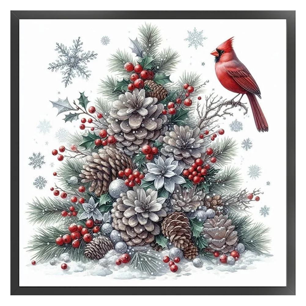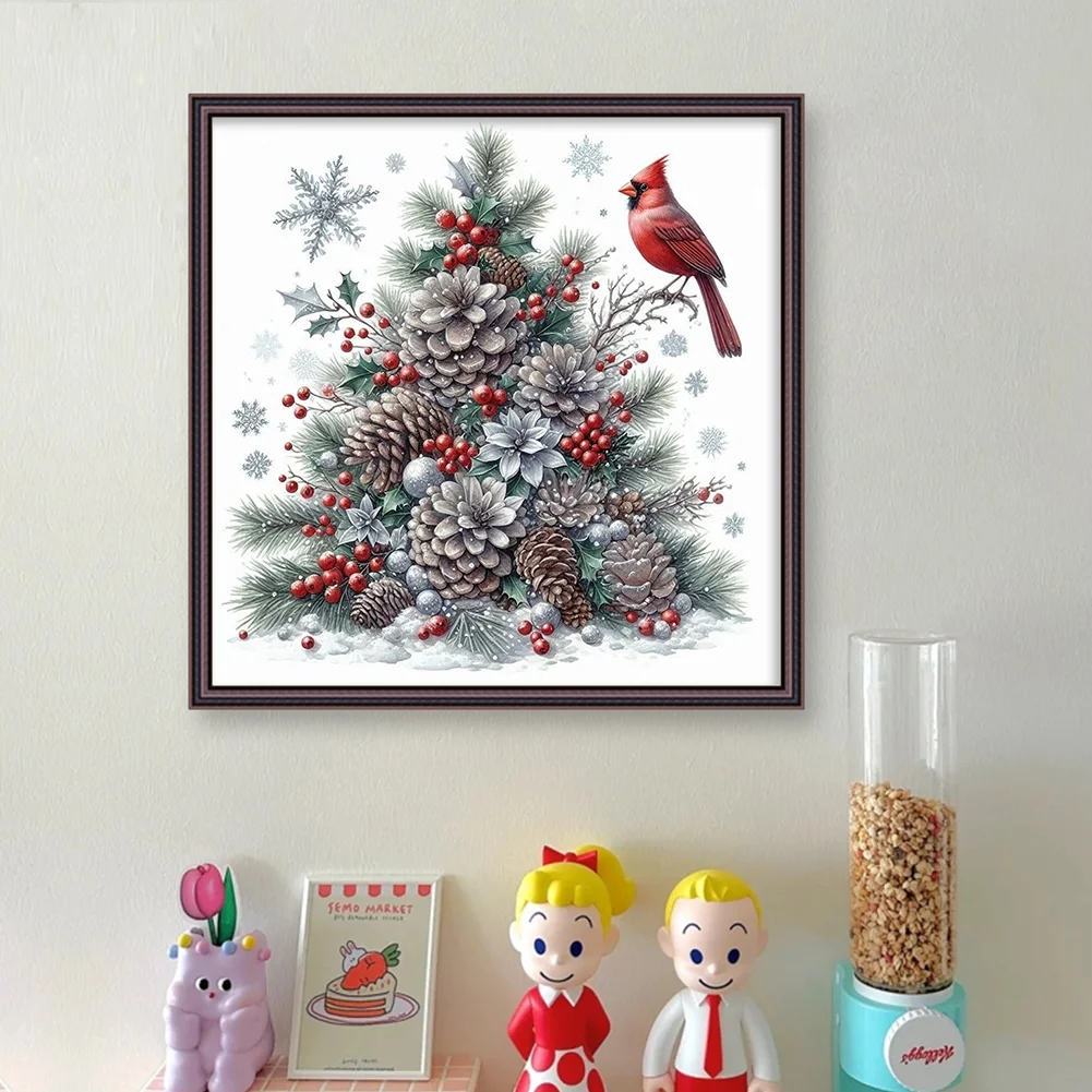 11CT Stamped Cross Stitch Kit - Christmas Tree Red Bird (40*40cm)