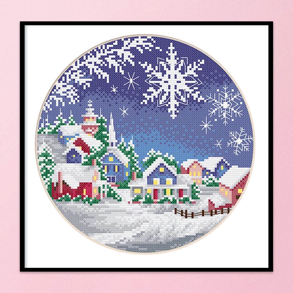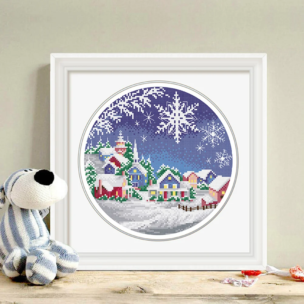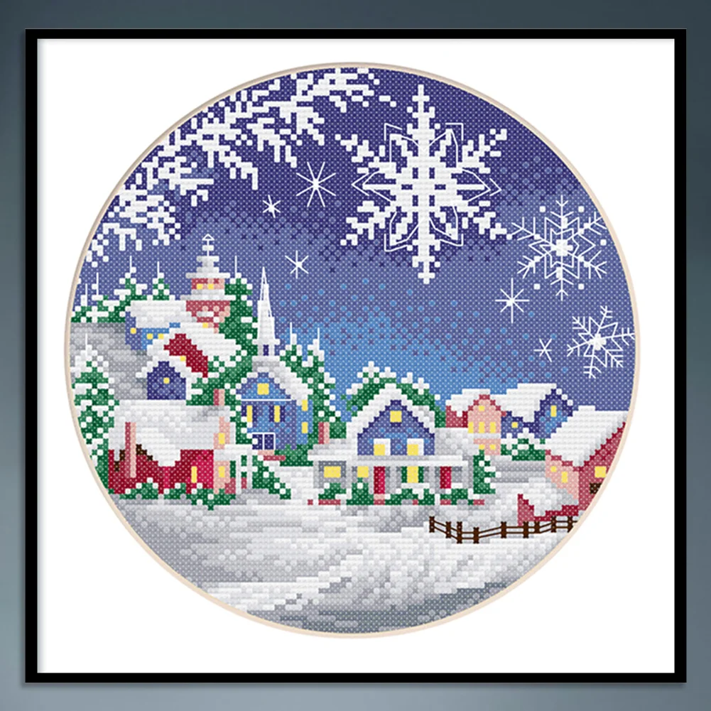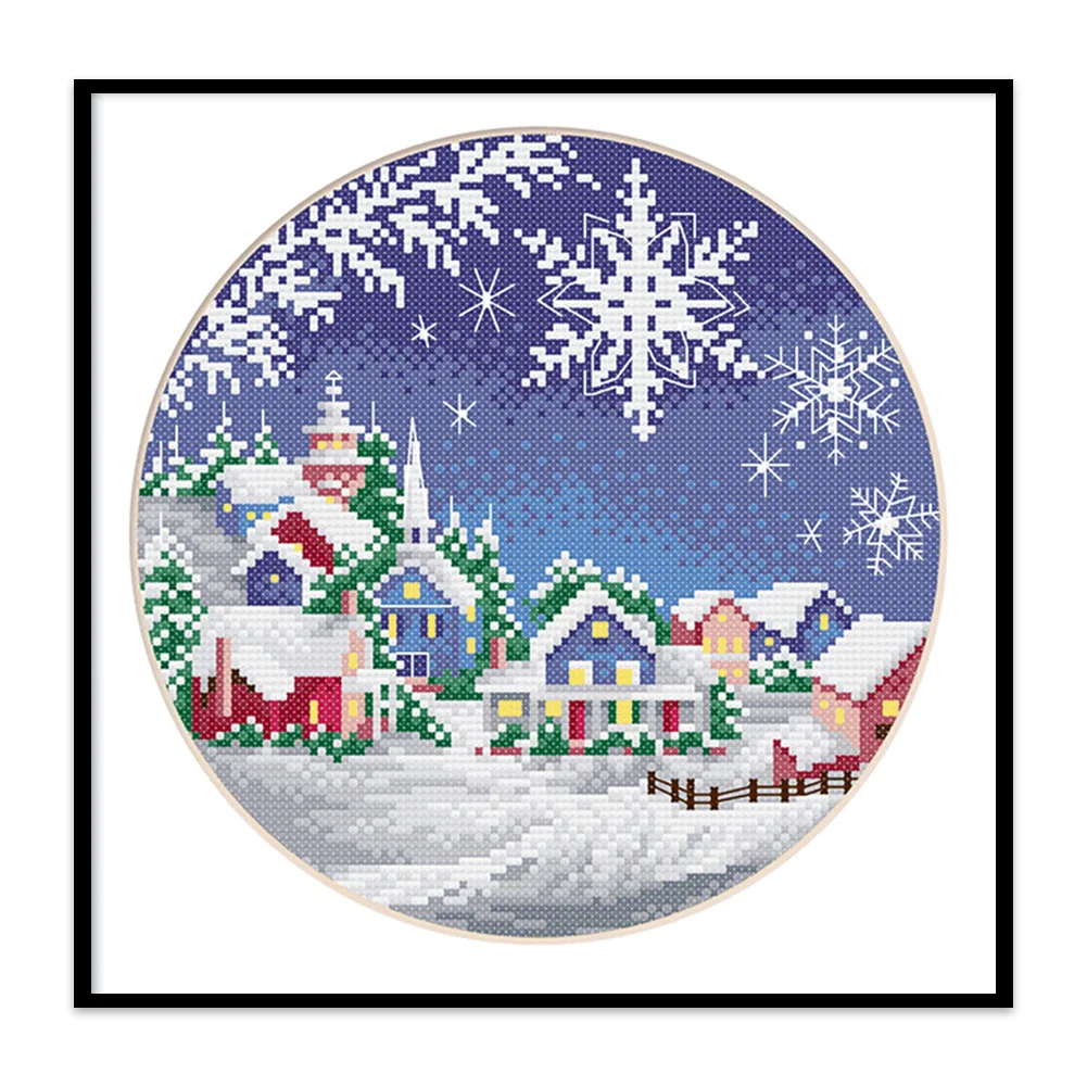 cotton Thread 11CT Stamped Print DIY Four Seasons Scenery Handmade Cross Stitch Artwork Canvas Embroidery Kit Needlework Home Decor Ornaments Craft 35x35cm