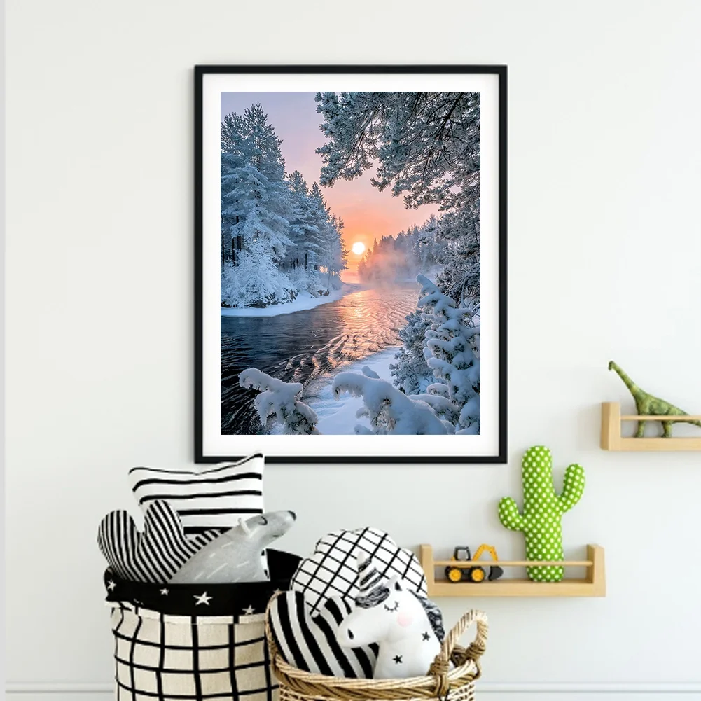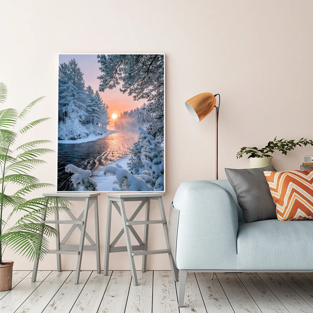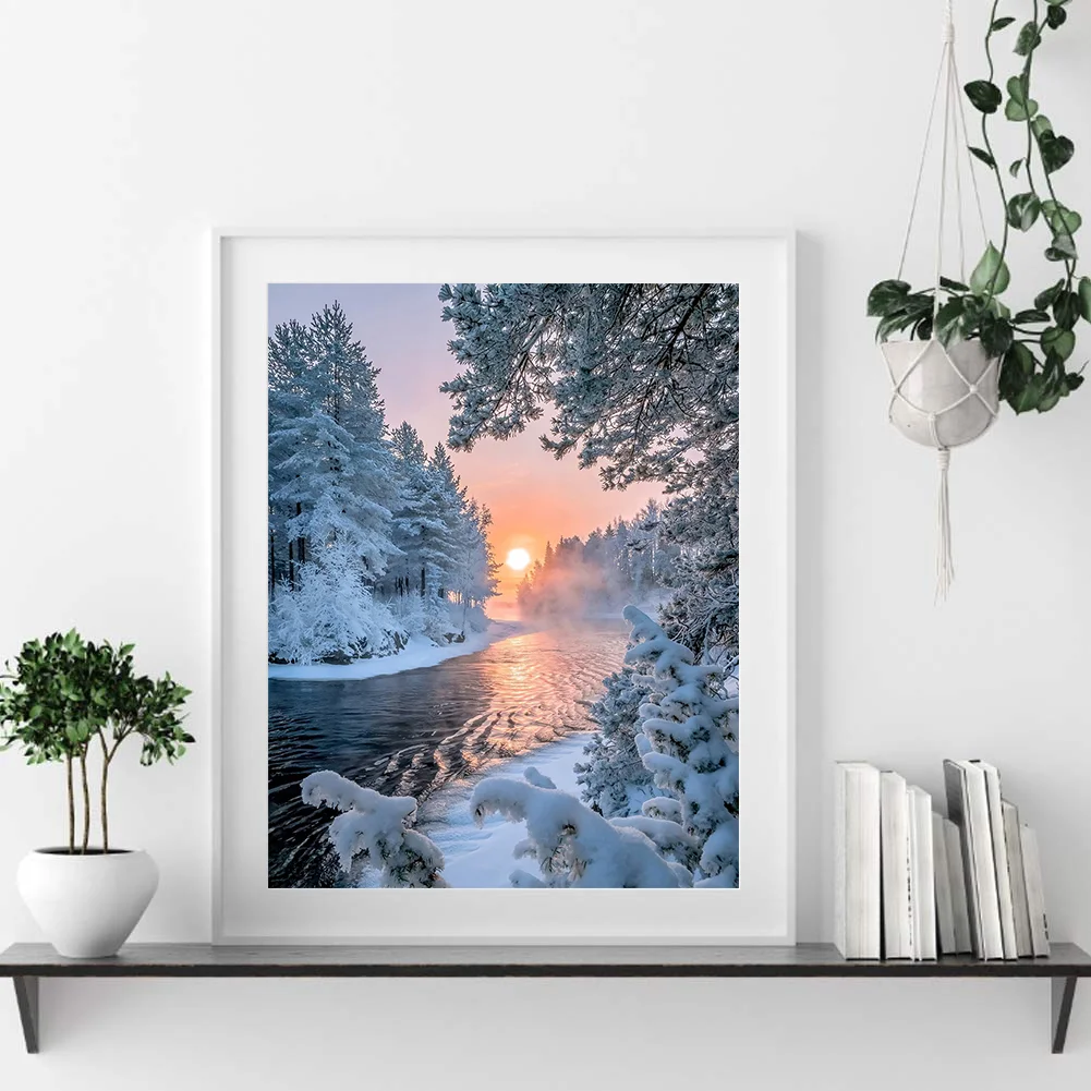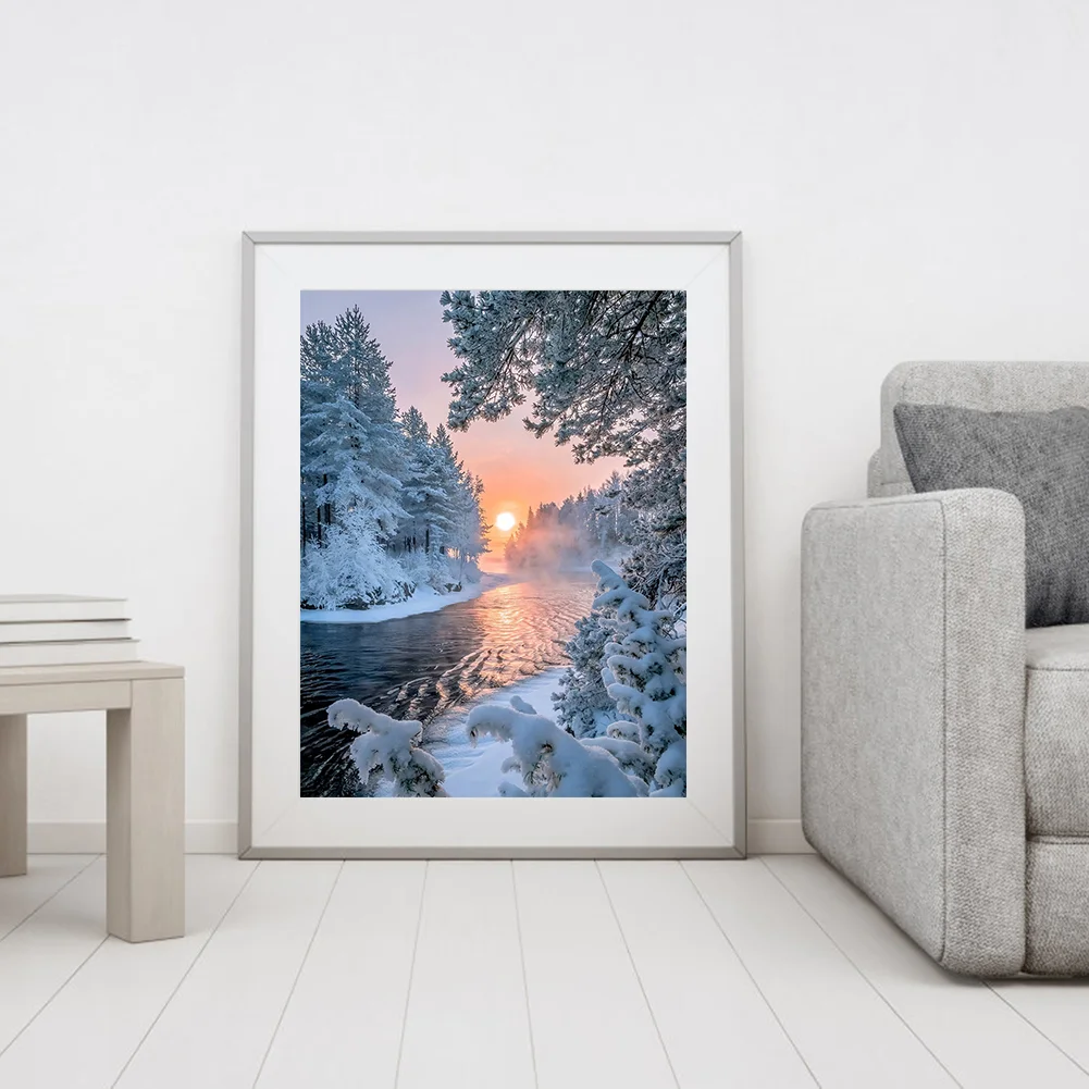 Full Cross Stitch Glacier Lake 11CT Stamped DIY Embroidery Kits Printed Landscape Needlework Handmade Cotton Thread Wall Art Crafts Home Decoration Gifts