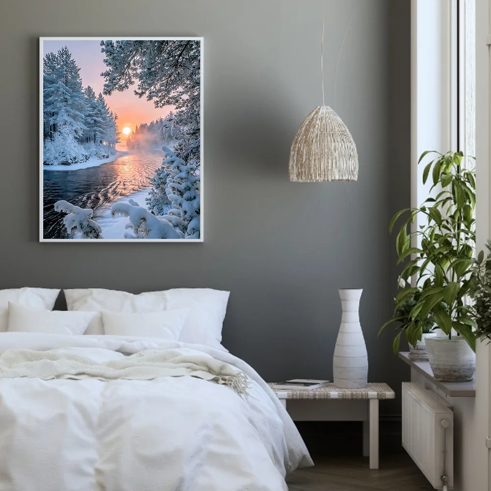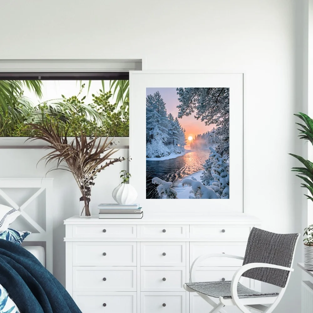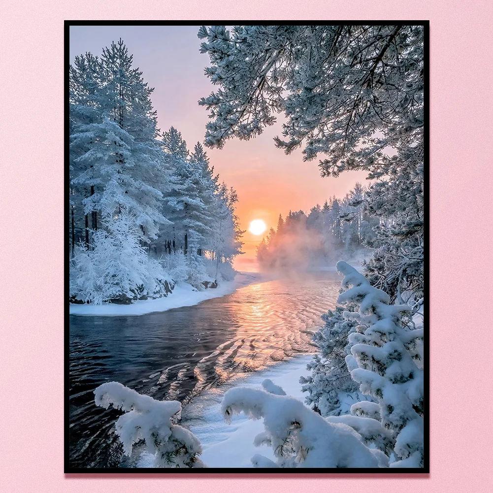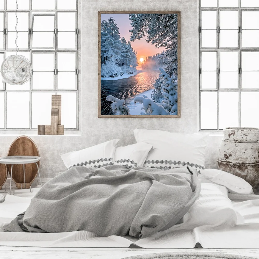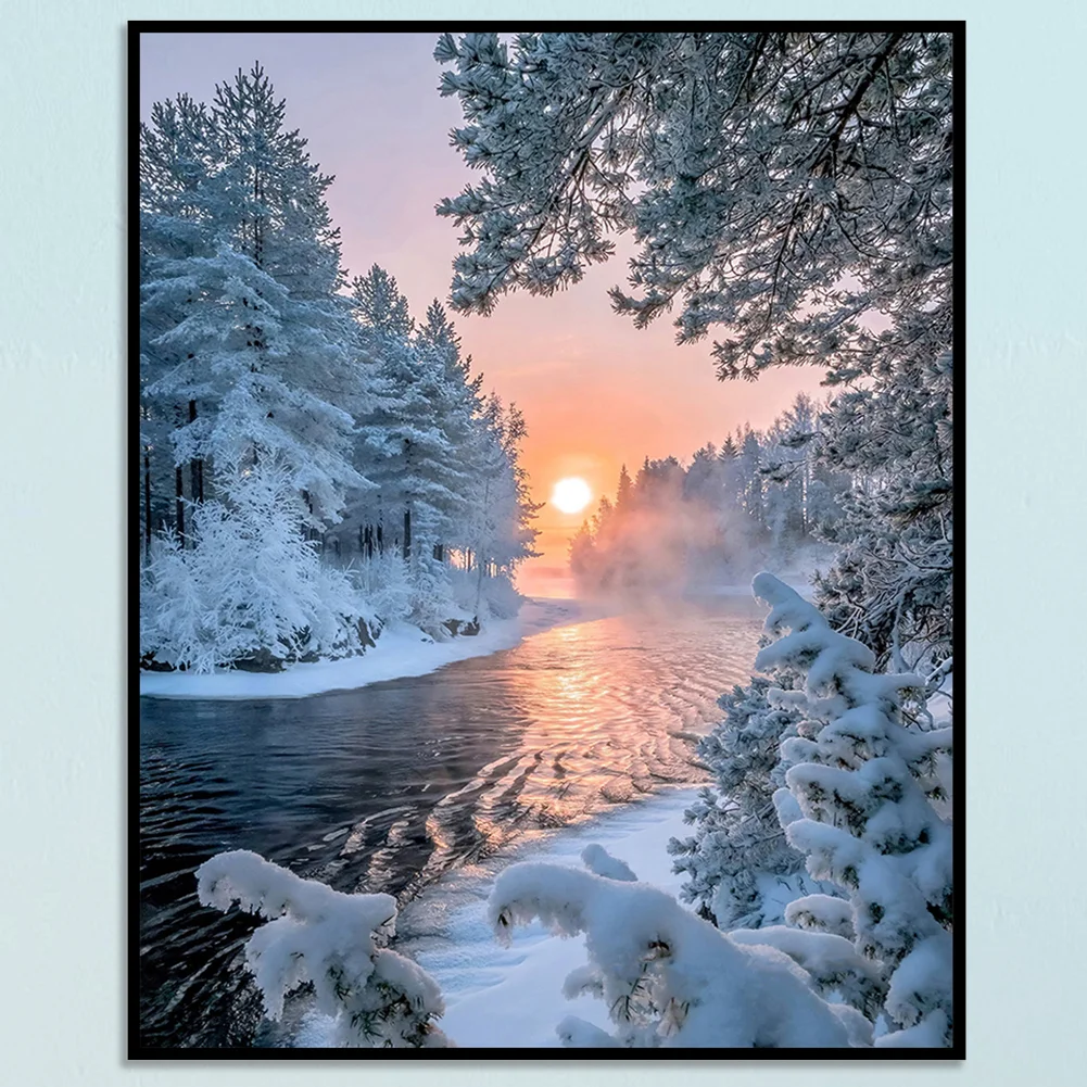Full Cross Stitch Glacier Lake 11CT Stamped DIY Embroidery Kits Printed Landscape Needlework Handmade Cotton Thread Wall Art Crafts Home Decoration Gifts