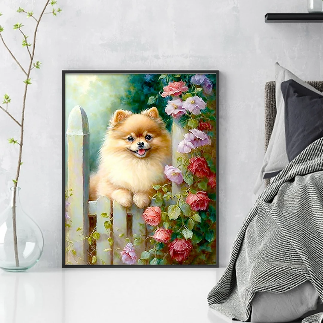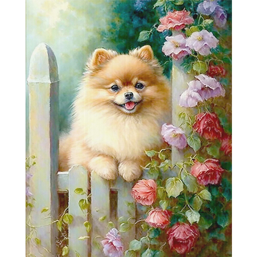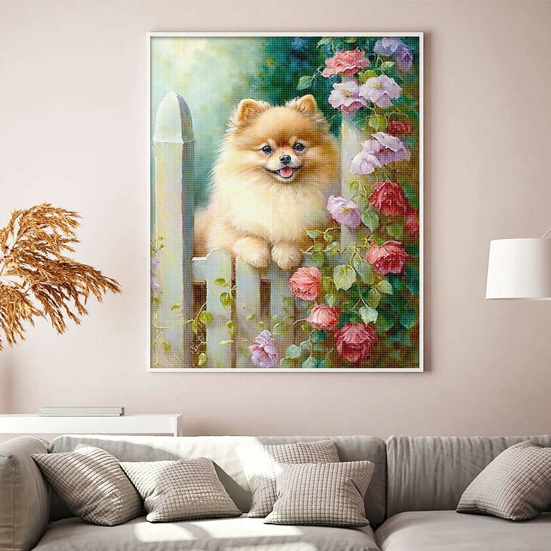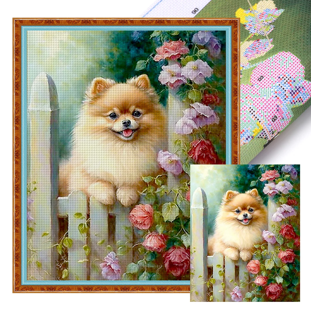 11CT Stamped Cross Stitch Kit - Pomeranian Flowers And Plants (40*50cm)