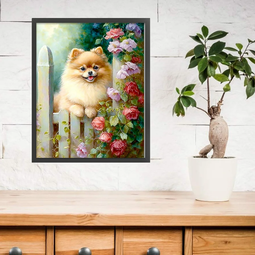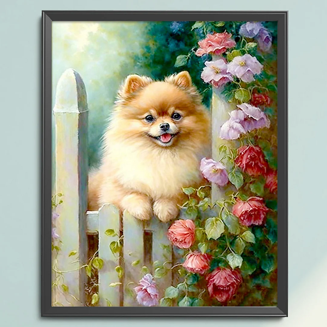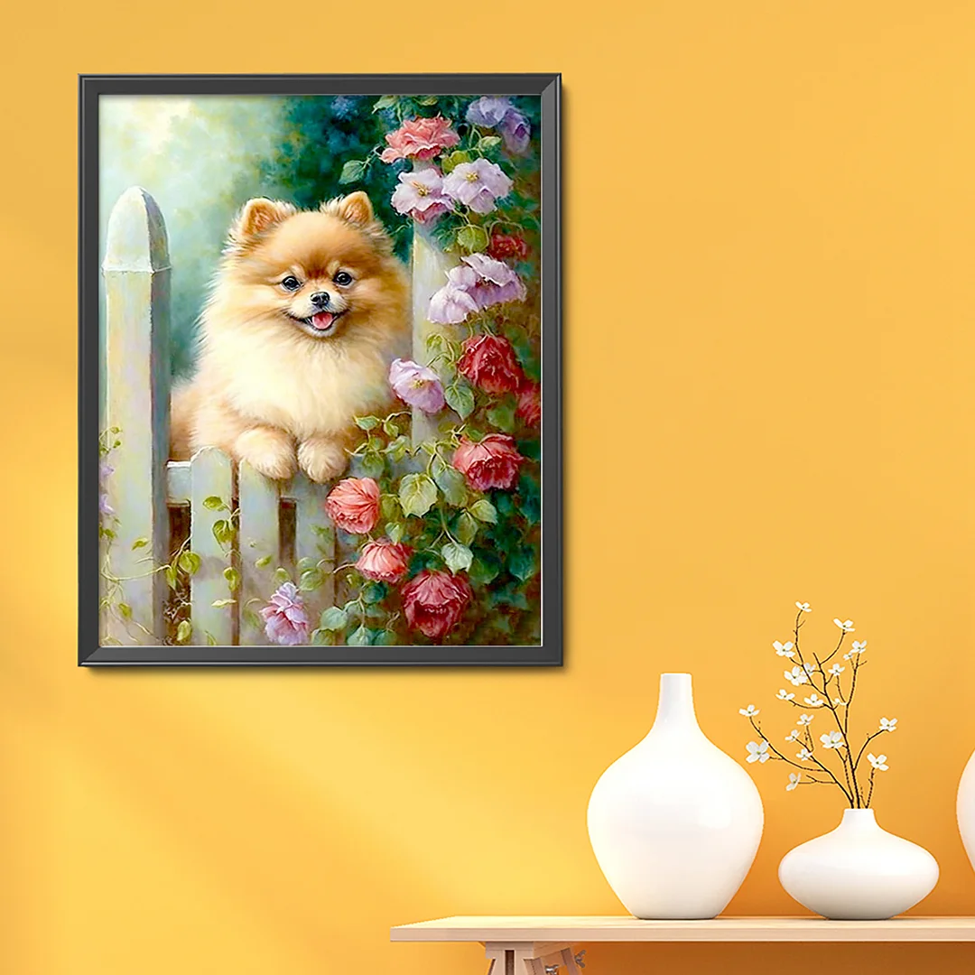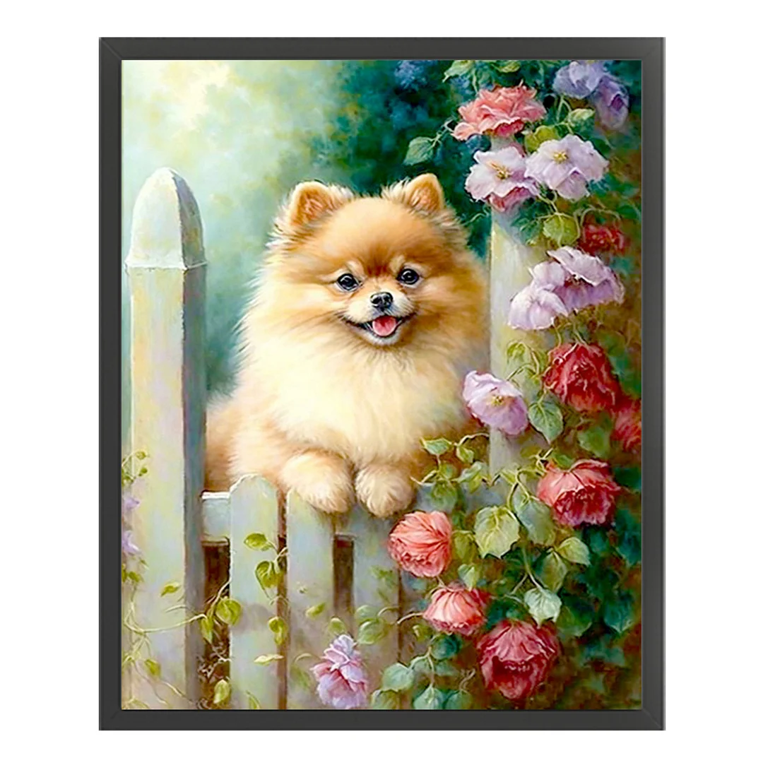 11CT Stamped Cross Stitch Kit - Pomeranian Flowers And Plants (40*50cm)