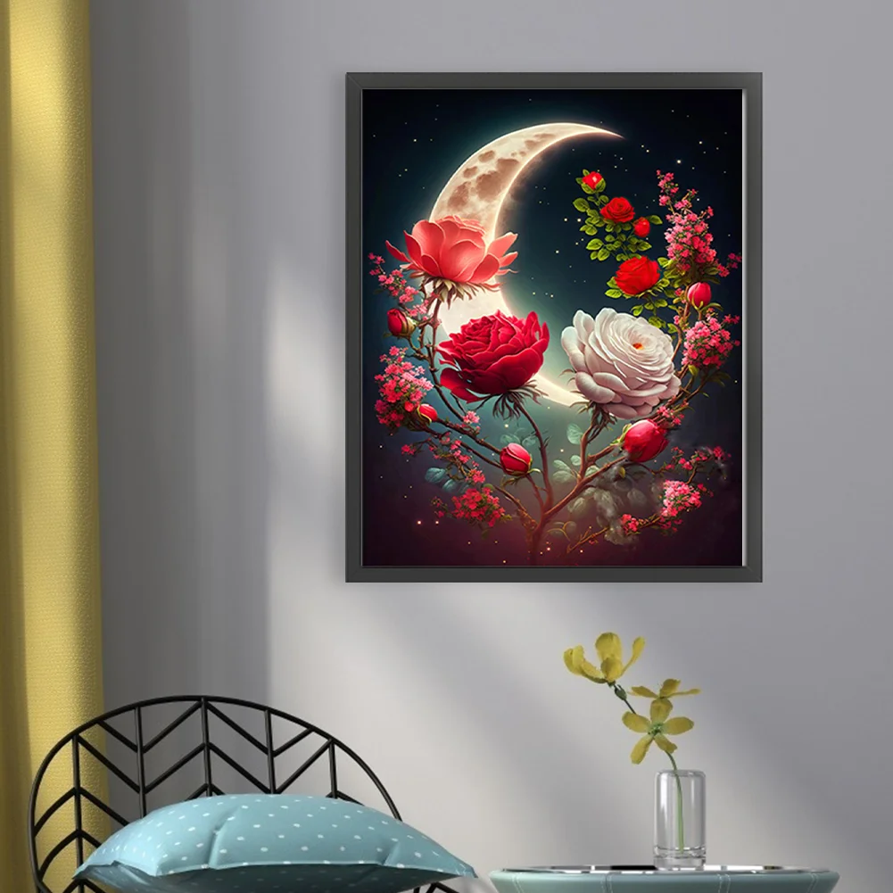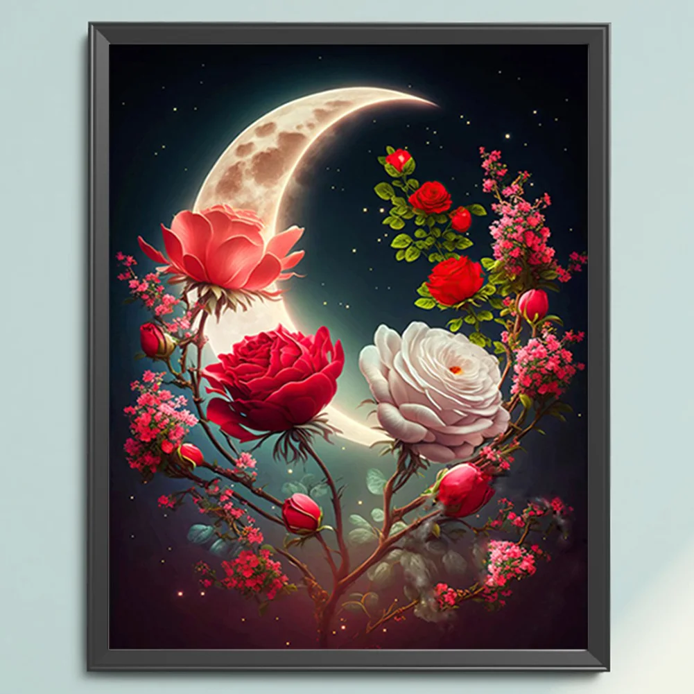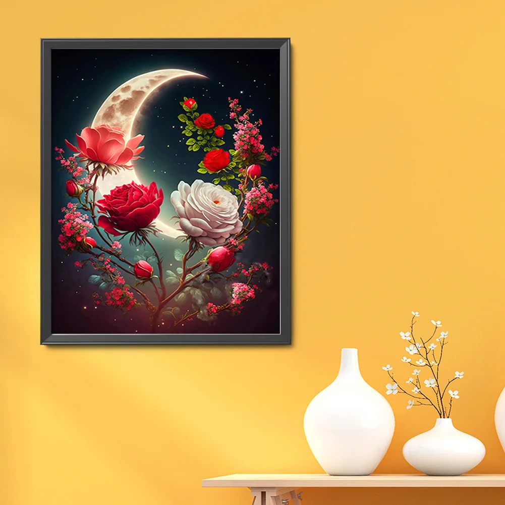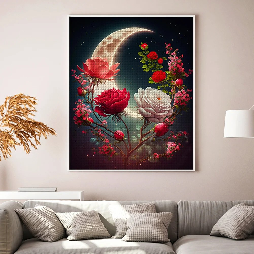 11CT Stamped Cross Stitch Kit - Rose Under The Moon (40*50cm)