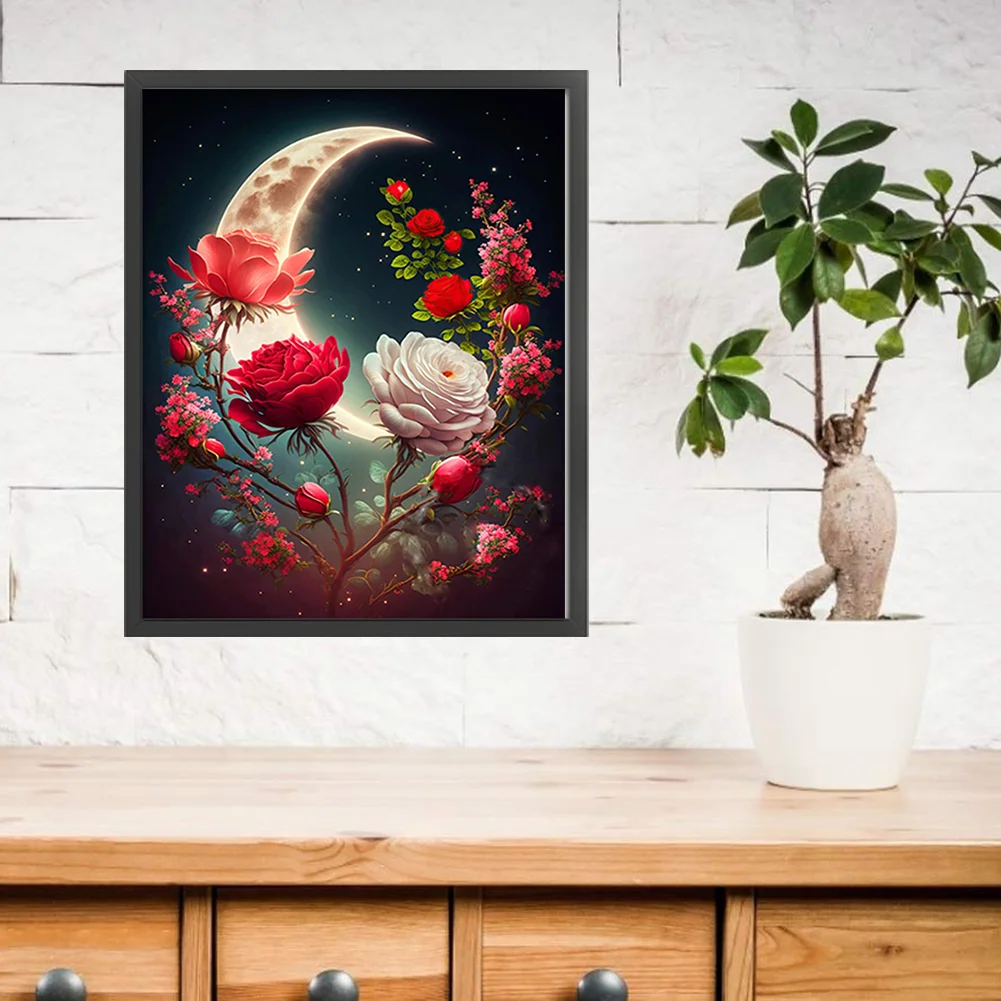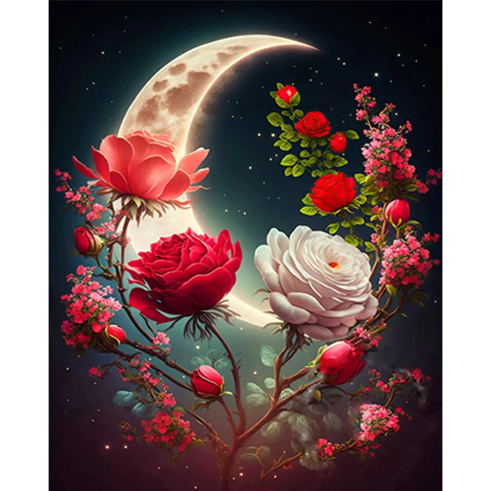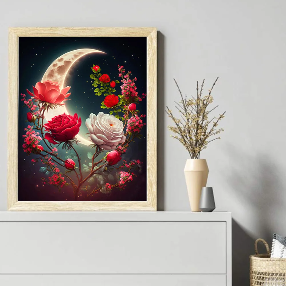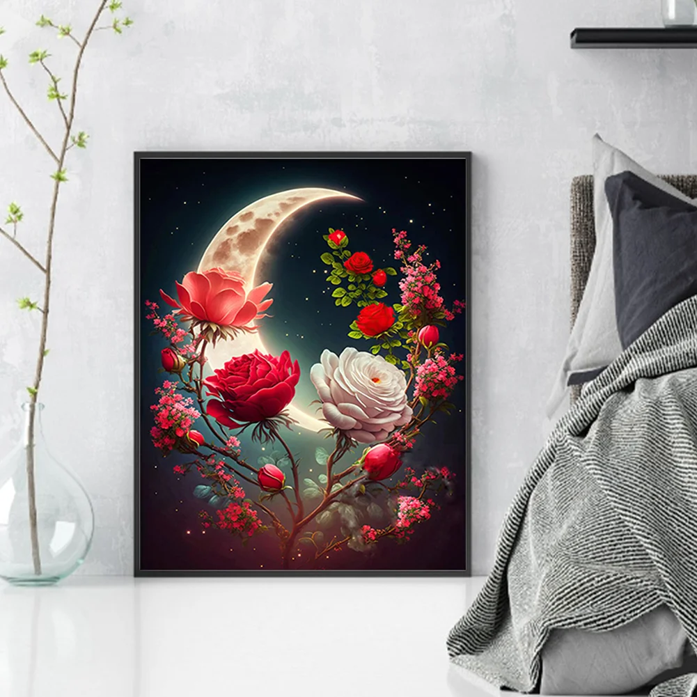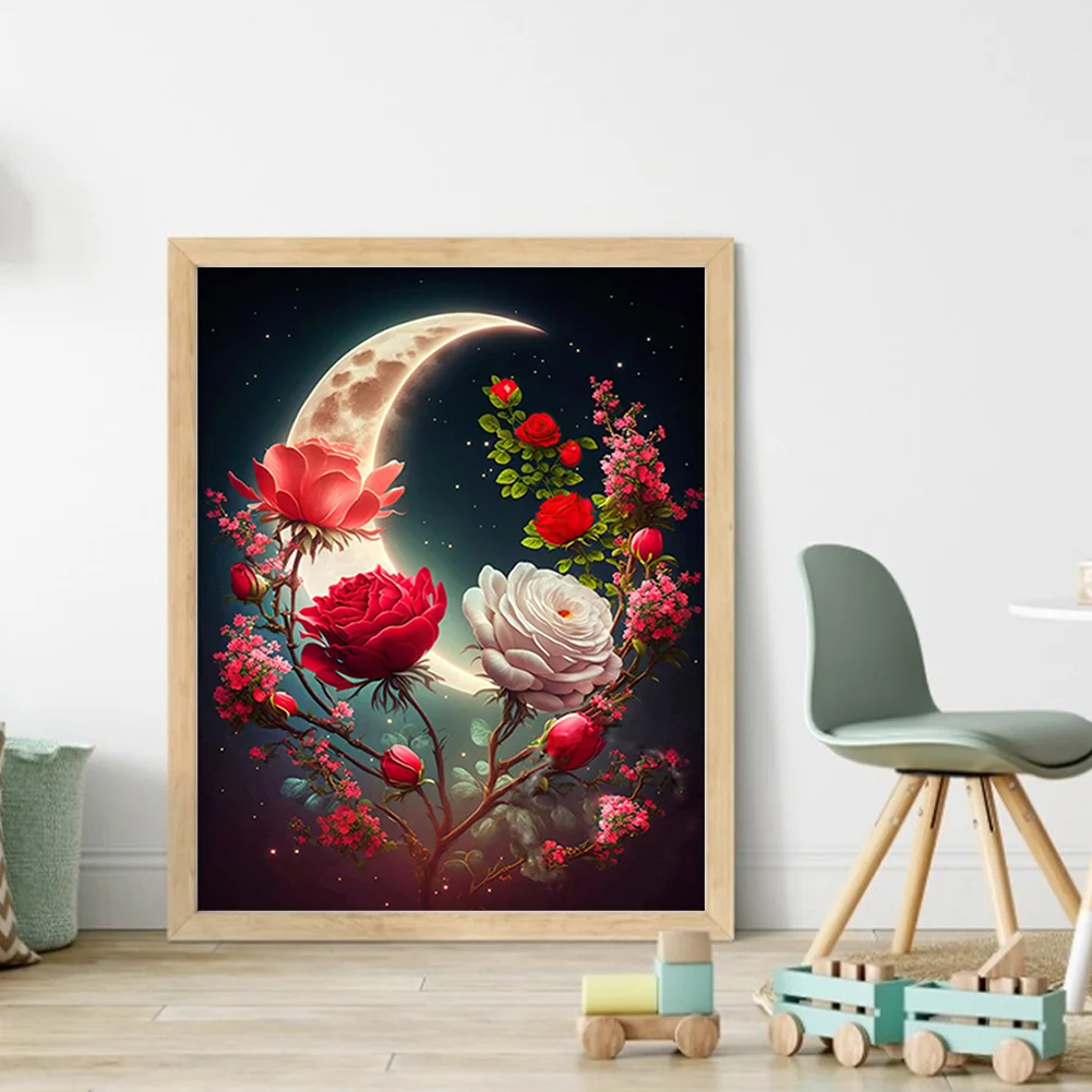 11CT Stamped Cross Stitch Kit - Rose Under The Moon (40*50cm)