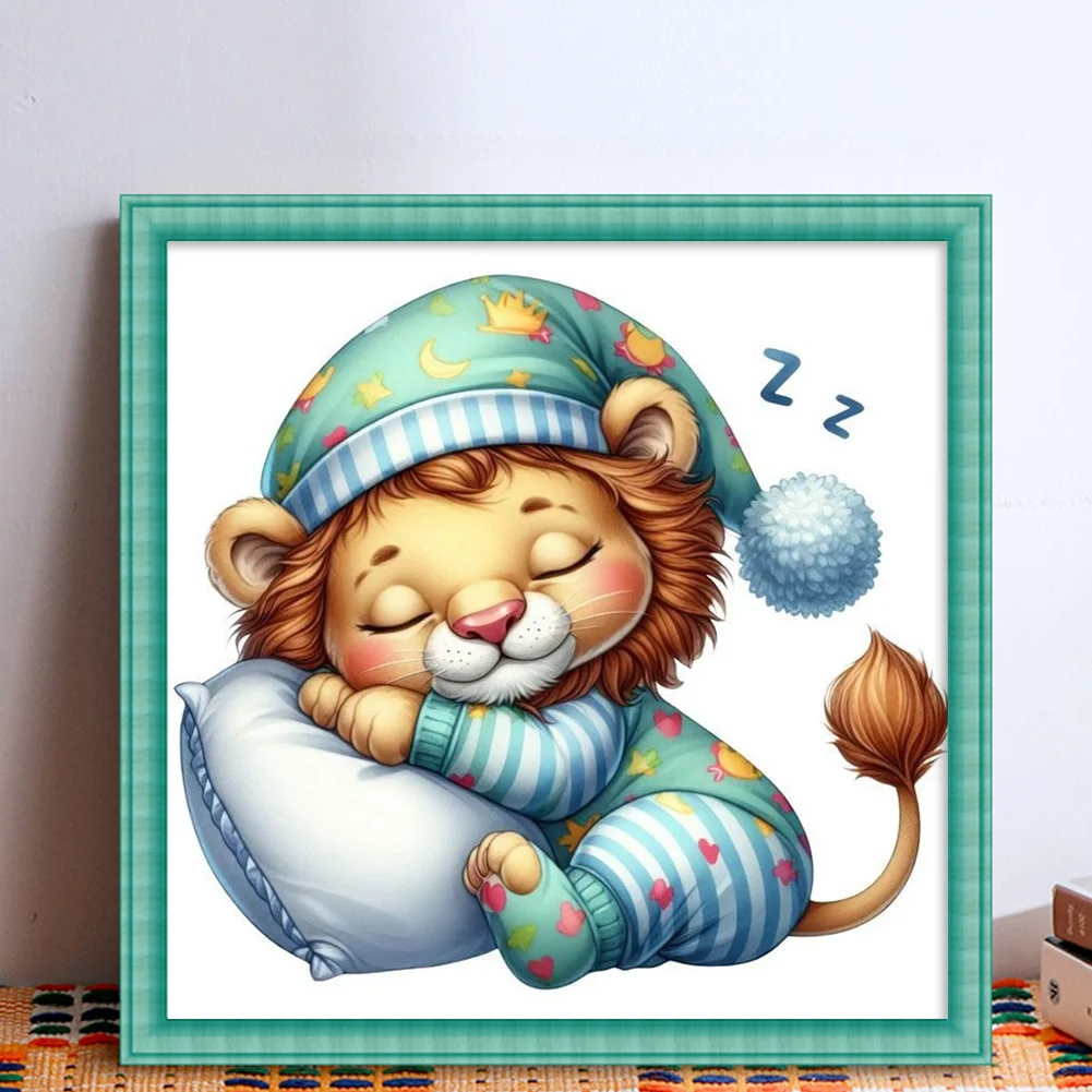 11CT Stamped Cross Stitch Kit - Sleeping Lion (40*40cm)
