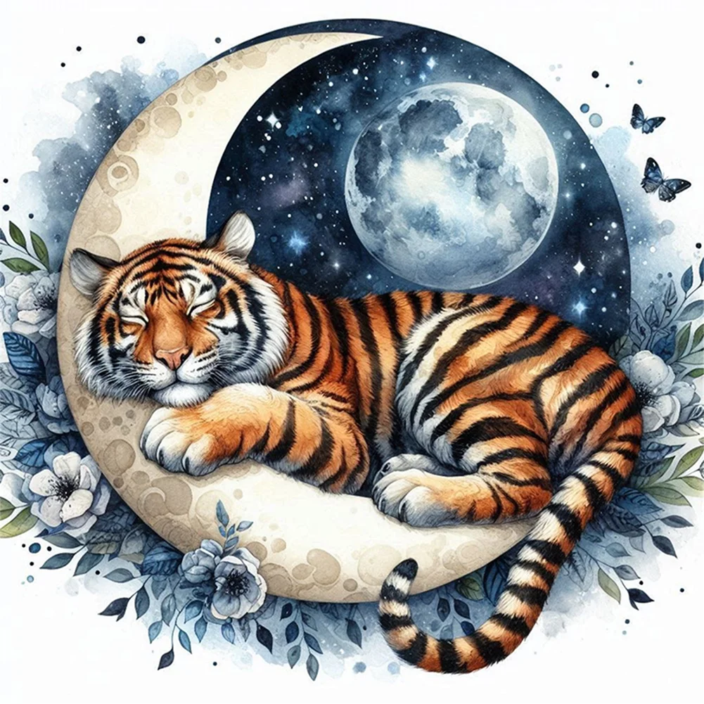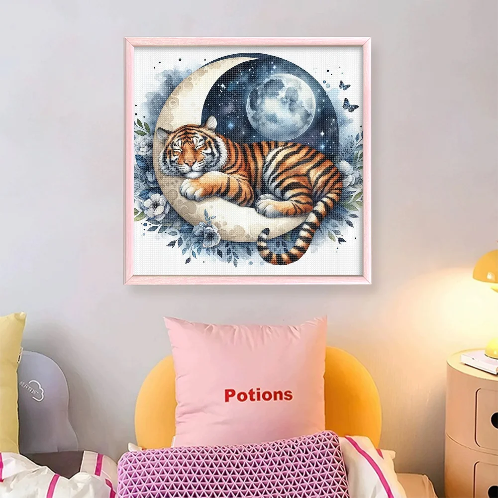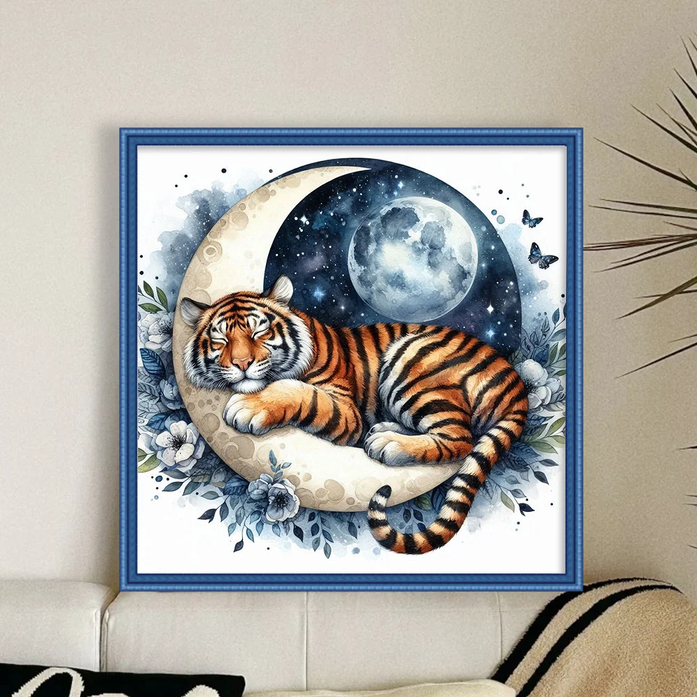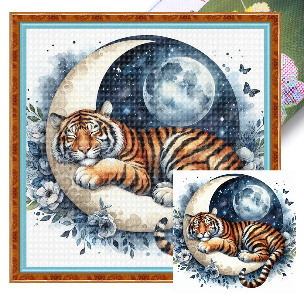11CT Stamped Cross Stitch Kit - Tiger Moon (40*40cm)