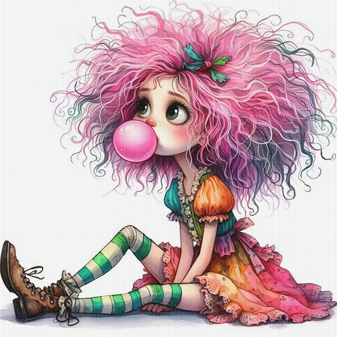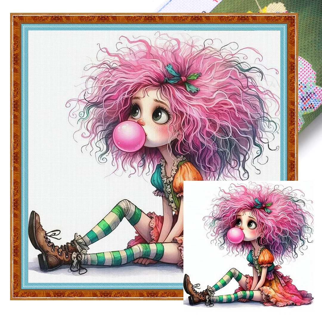 11CT Stamped Cross Stitch Kit - Weird Girl (40*40cm)