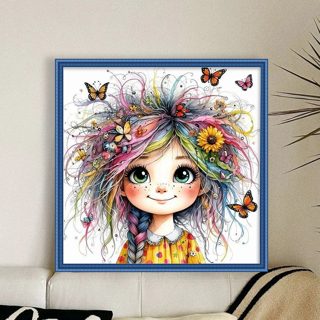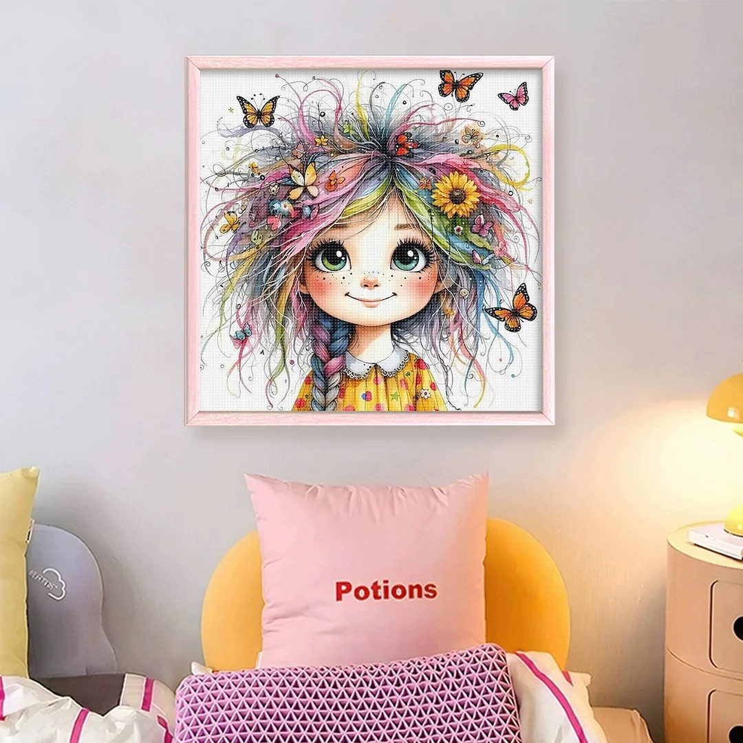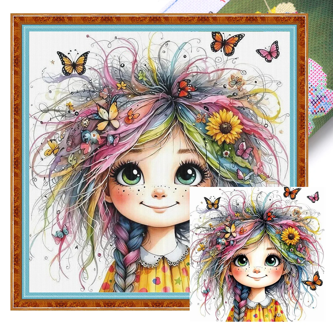 11CT Stamped Cross Stitch Kit - Weird Girl (40*40cm)