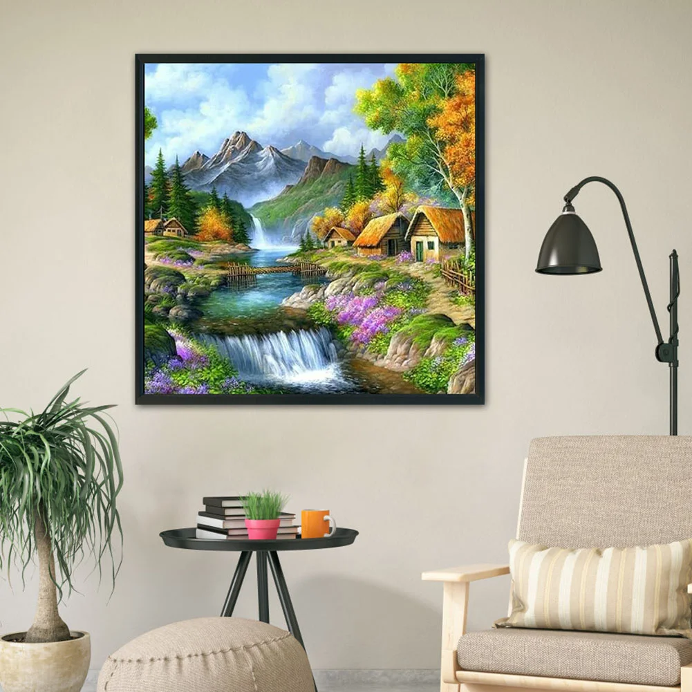 Stamped Cross Stitch Kits View of Countryside 3-Strand Ecological Cotton Thread 11CT Pre Printed Fabric Needlework Embroidery DIY Sets Crafts Home Decoration