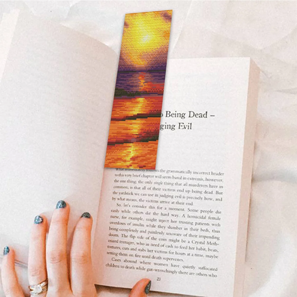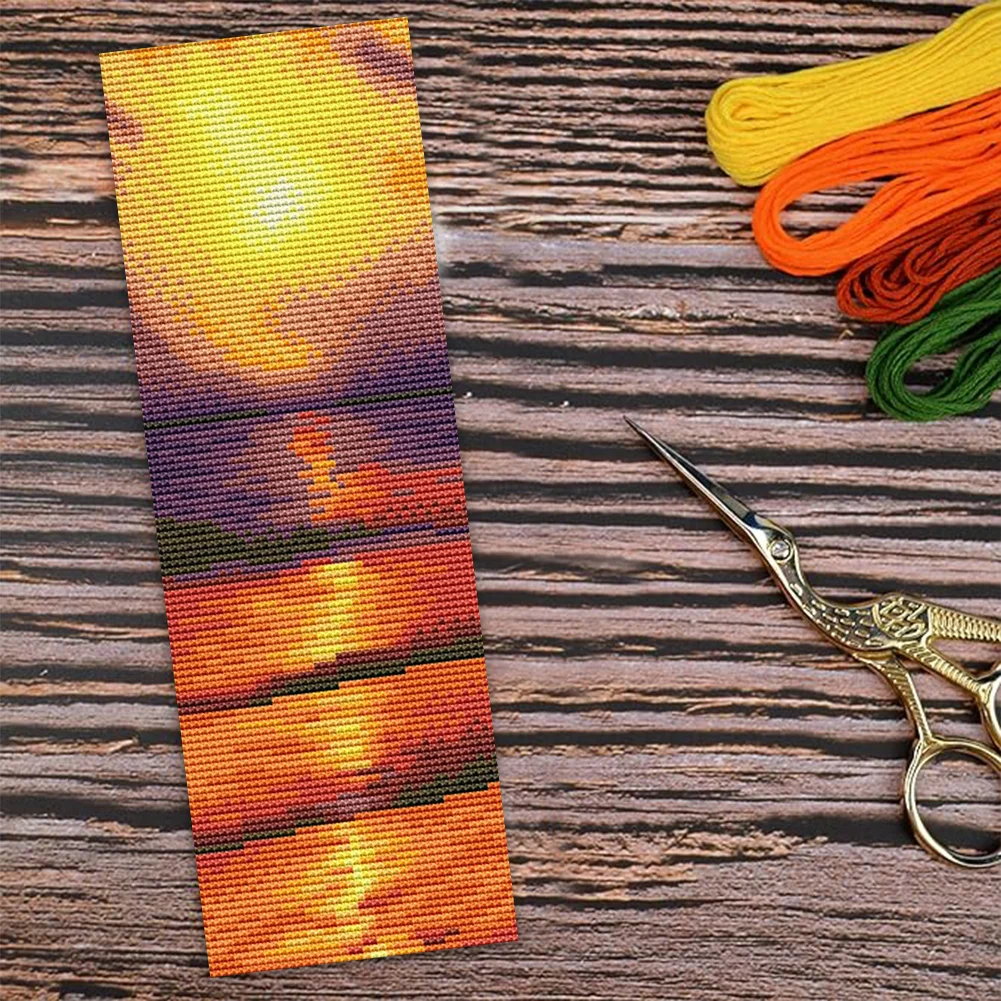 11CT Double-Sided Stamped Cross Stitch Bookmark - Sea Sunset (18*6CM)