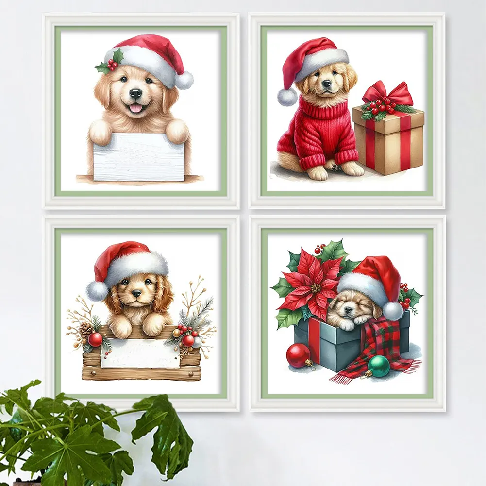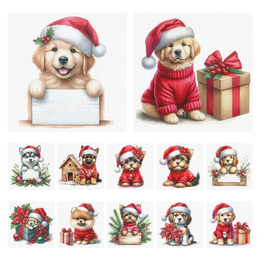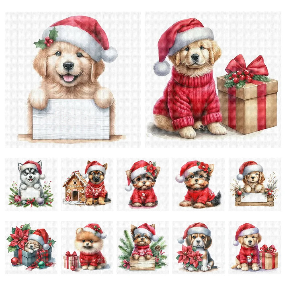 (12pcs) 11CT Partial Stamped Cross Stitch - Christmas Puppy (12.5*12.5cm)