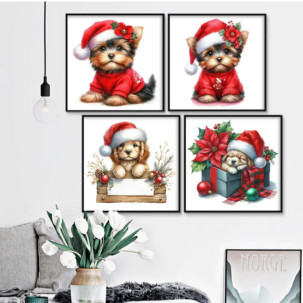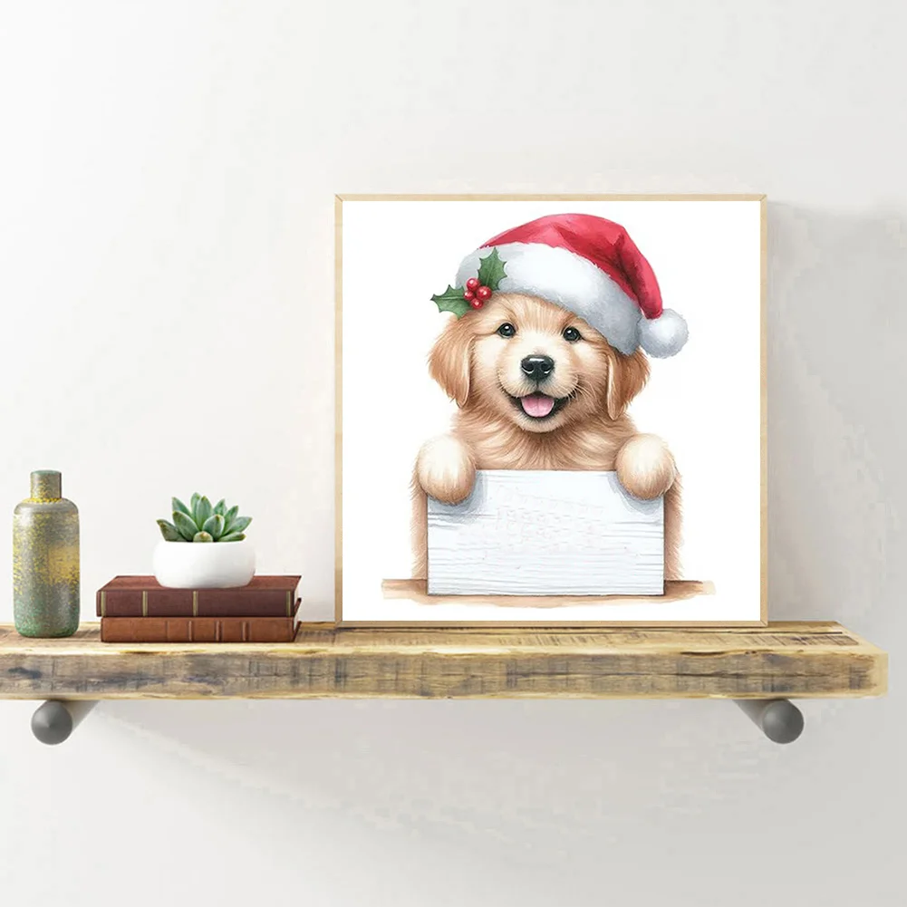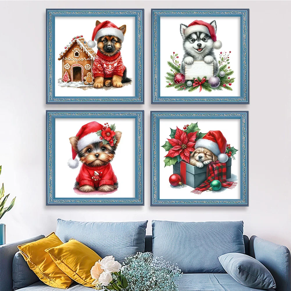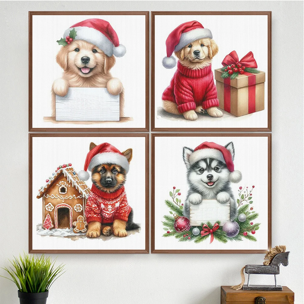 (12pcs) 11CT Partial Stamped Cross Stitch - Christmas Puppy (12.5*12.5cm)