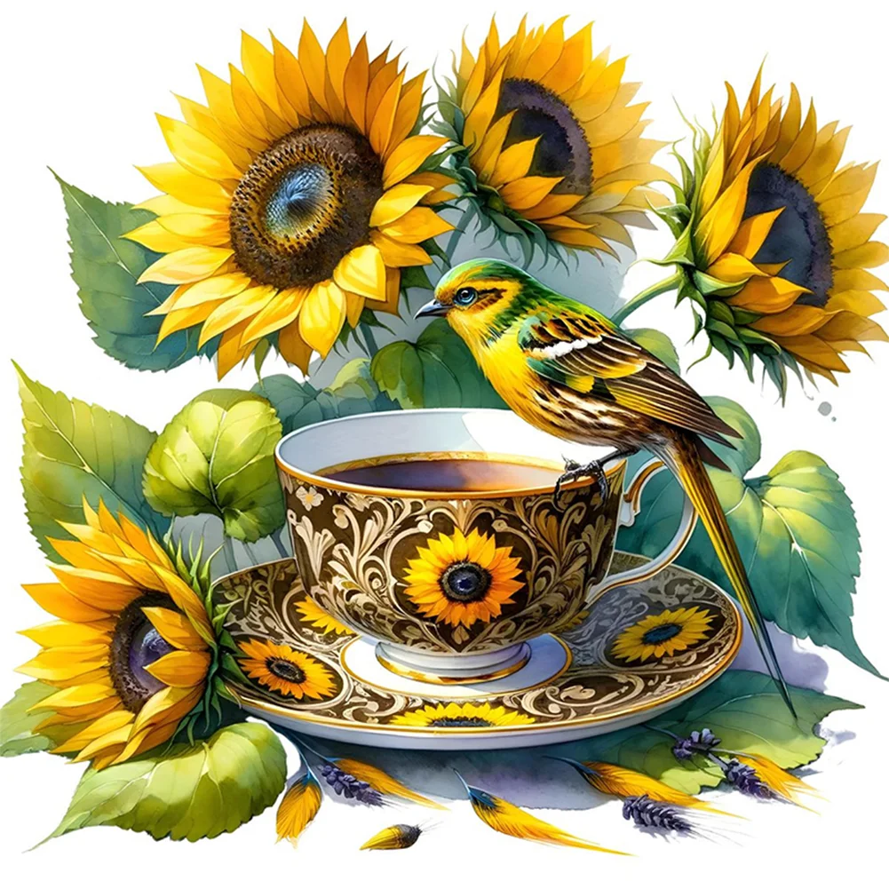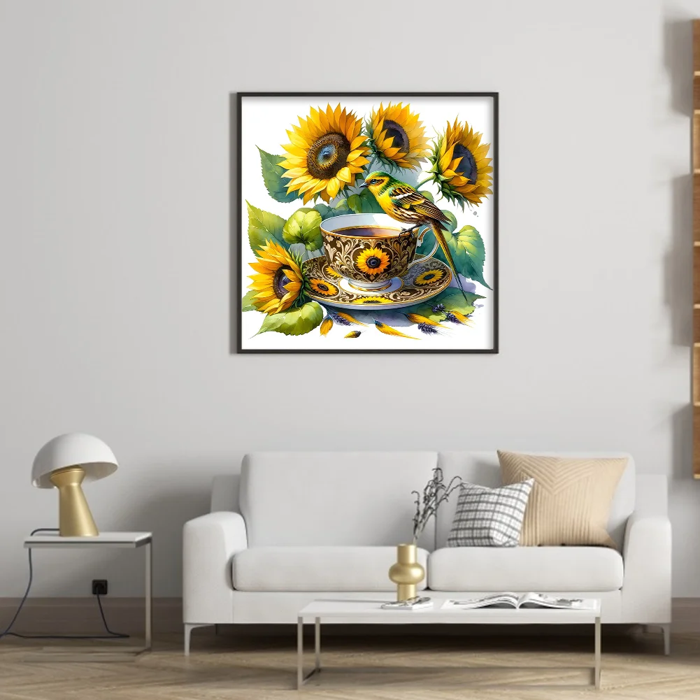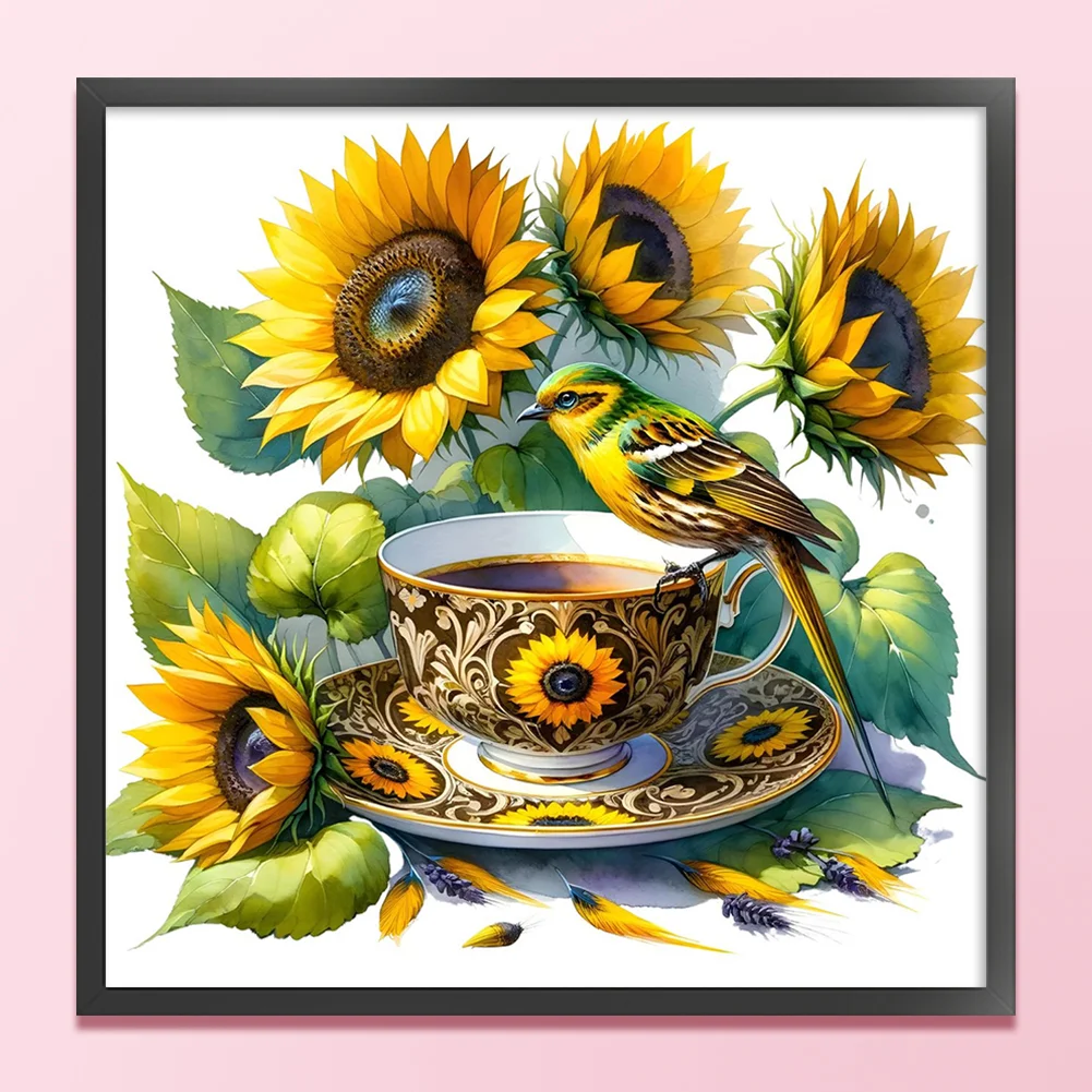 14CT Counted Cross Stitch Kit - Sunflower And Bird Teacup (40*40cm)