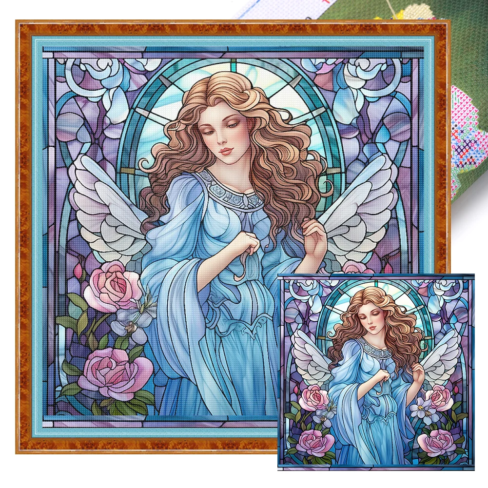 14CT Full Counted Cross Stitch Kit - Glass Painting-Madonna Of The Angels (40*40cm)