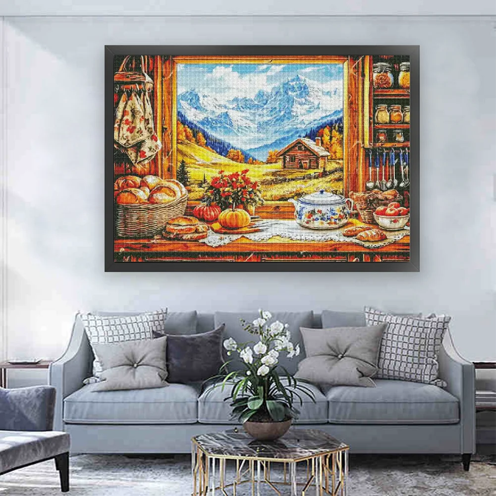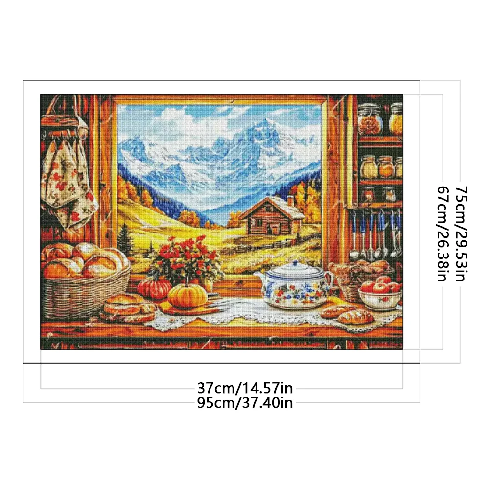 14CT Full Stamped Cross Stitch - Autumn Window View (95*75cm)