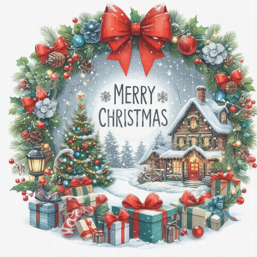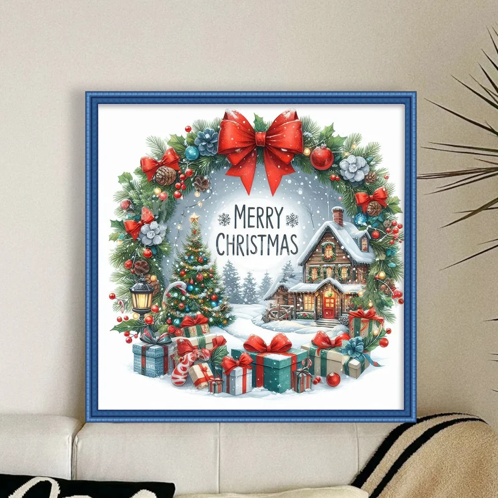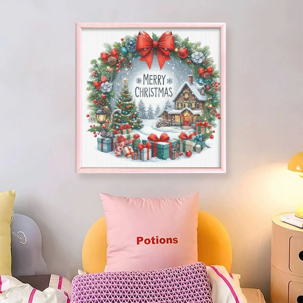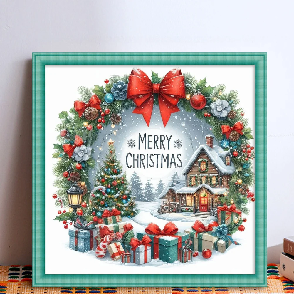 14CT Full Stamped Cross Stitch Kit - Christmas Cottage (40*40cm)