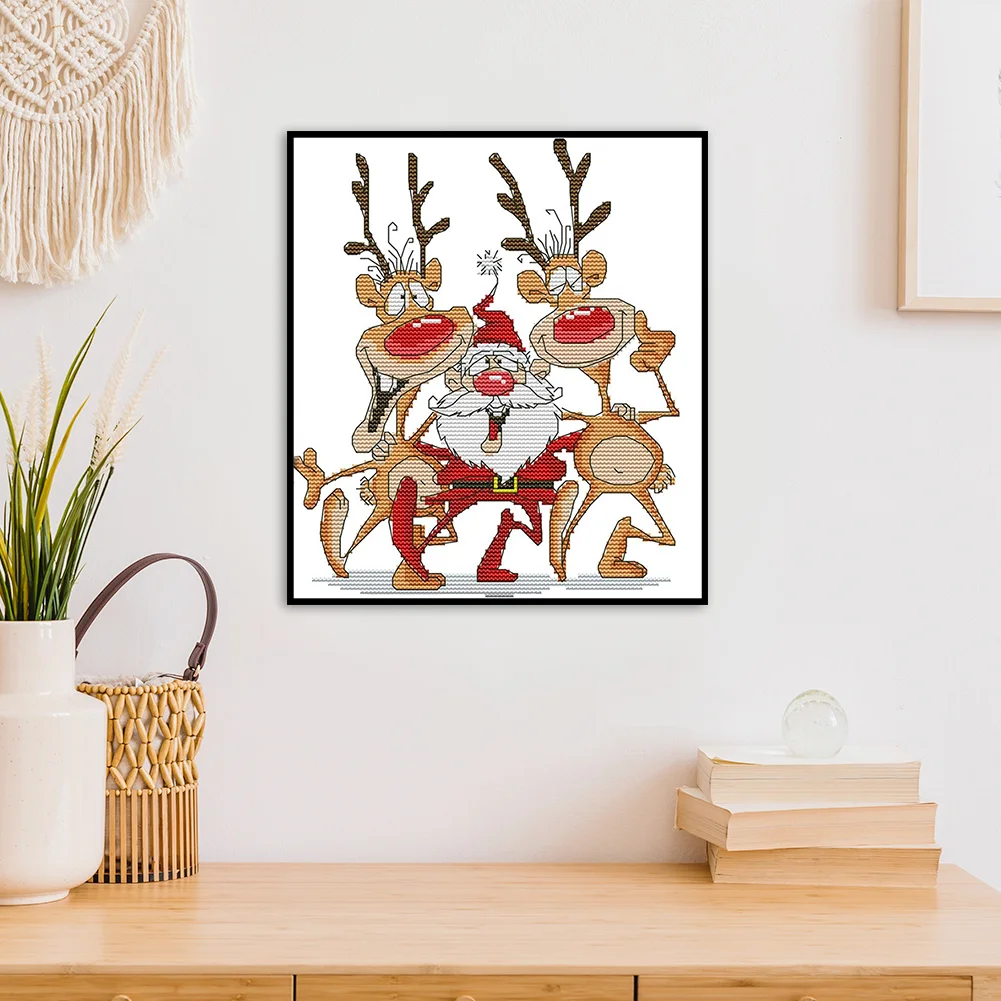 Partial Cross Stitch 14CT Santa and Reindeer Counted Embroidery DIY Needlework Kits Handmade Cotton Thread Wall Art Crafts Home Decoration Gifts