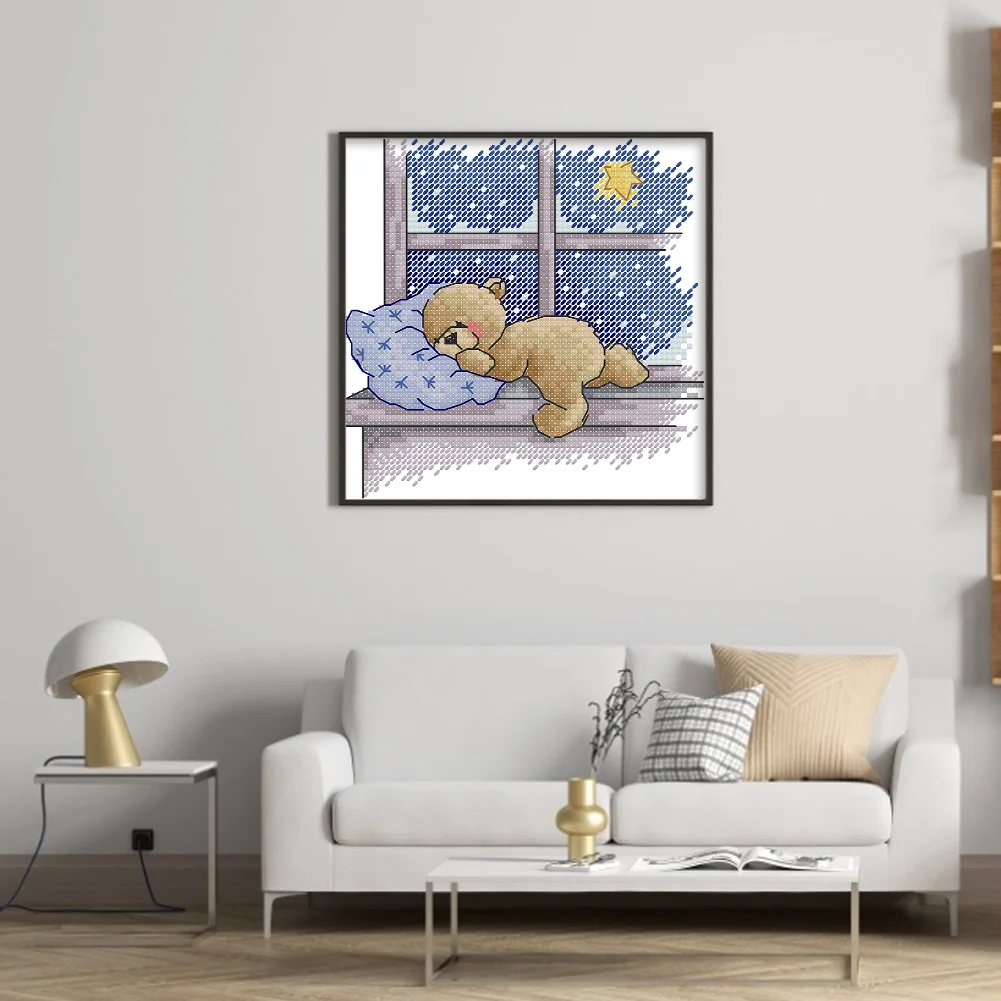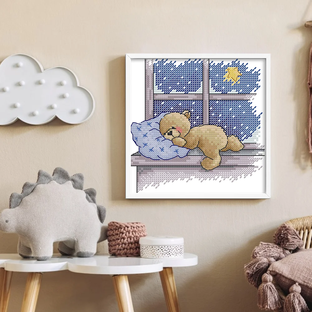 Partial Embroidery Cross Stitch 14CT Bear Stamped/Counted Embroidery DIY Needlework Kits Handmade Cotton Thread Wall Art Crafts Home Decoration Gifts