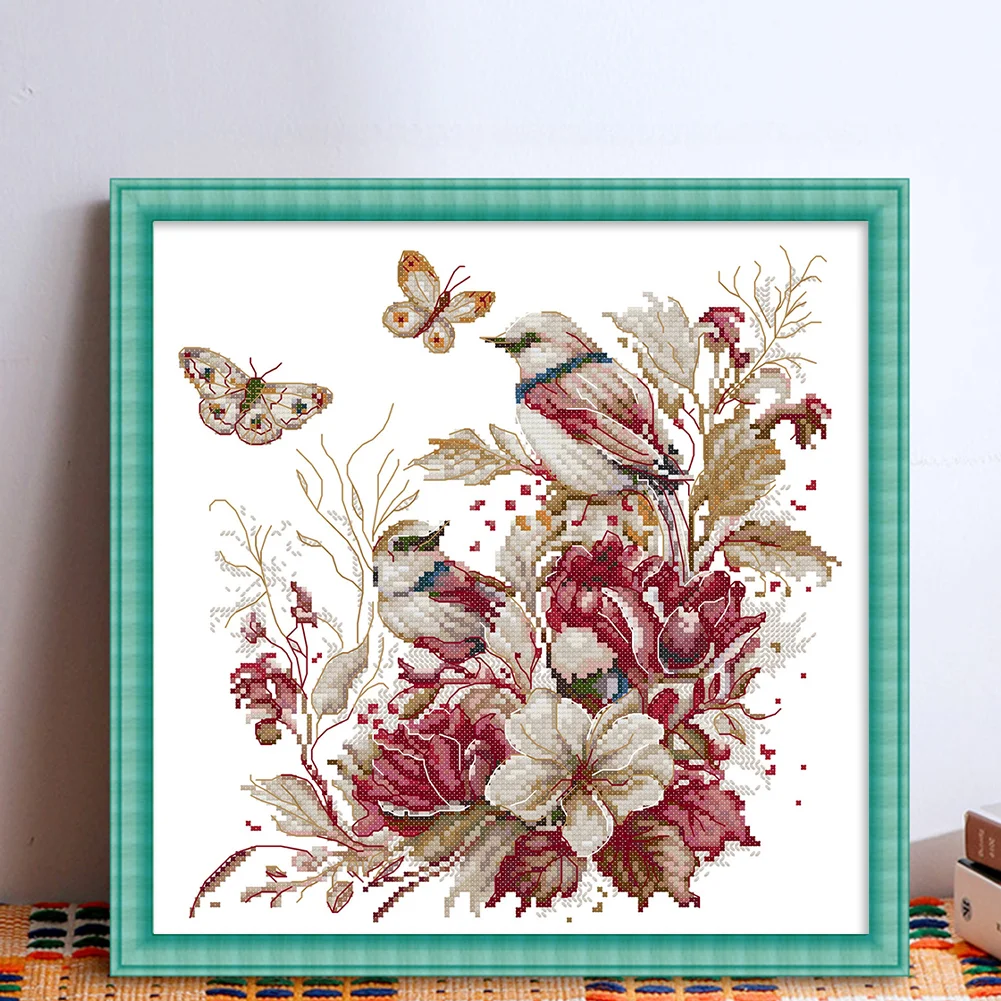 14CT Partial Stamped Cross Stitch - Autumn Birds (33*33cm)