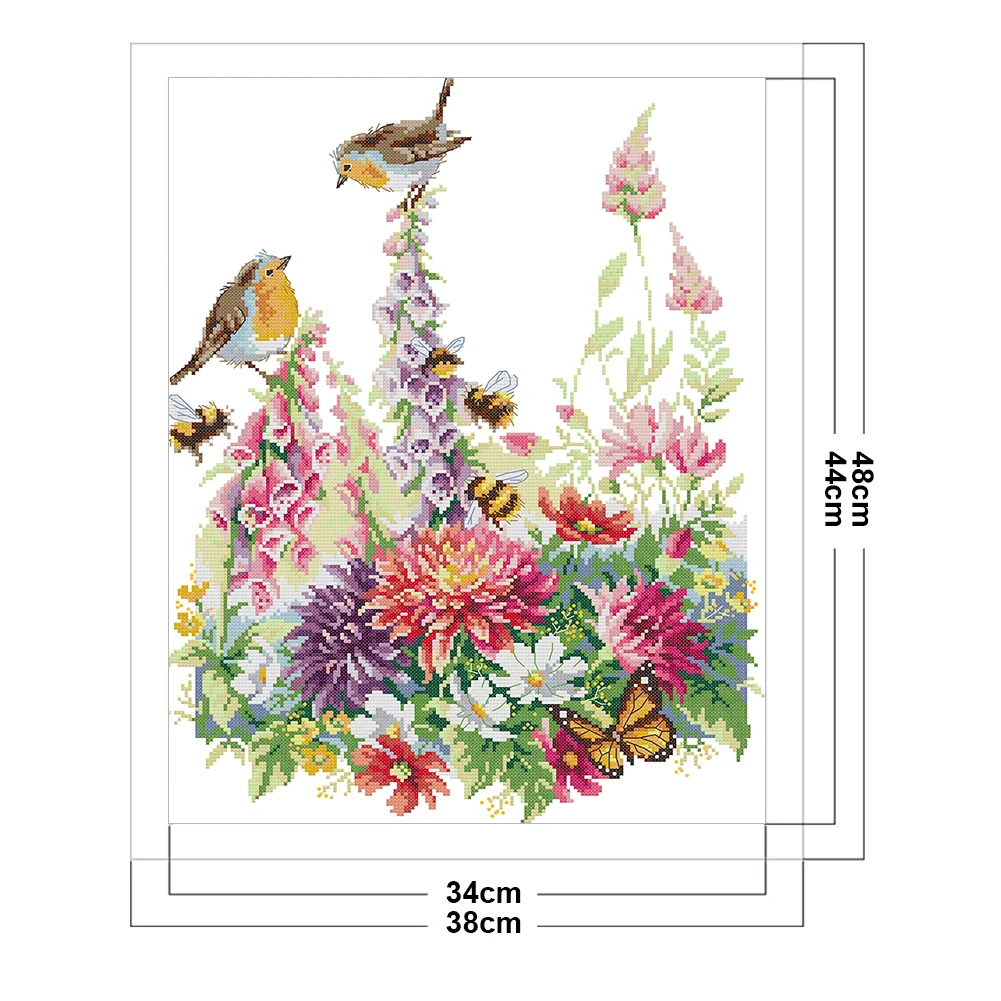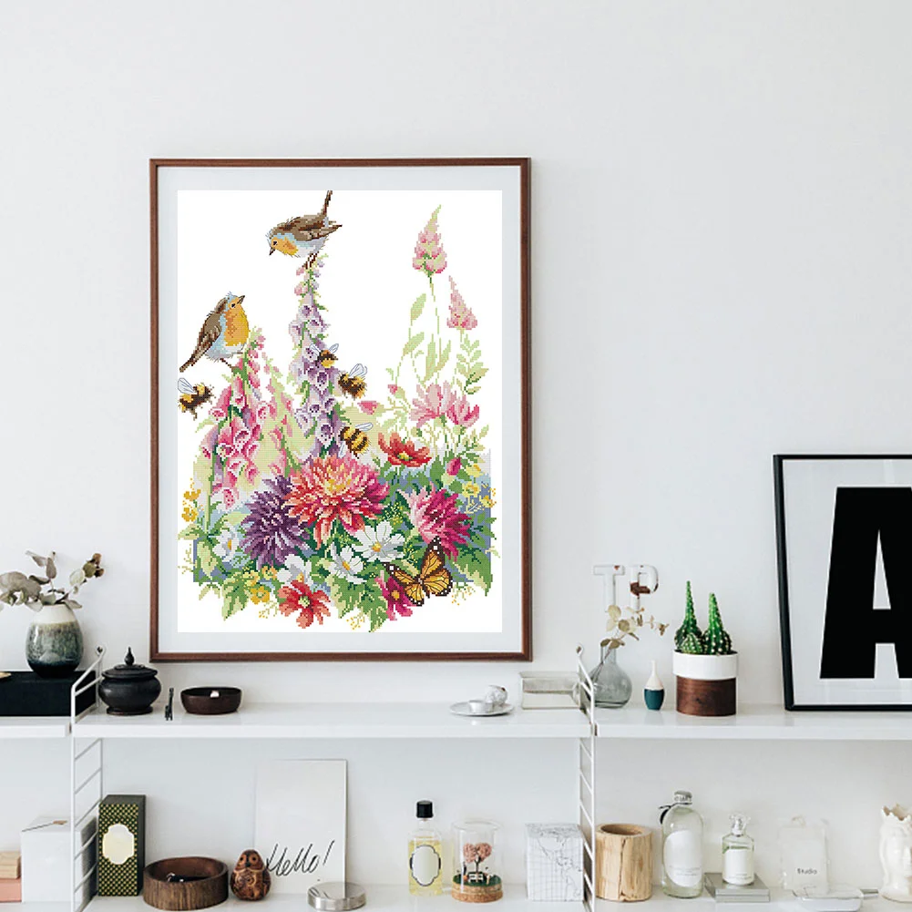 Partial Cross Stitch 14CT Cotton Thread DIY Bird and Flower Printed Embroidery Kits Handmade Stamped Needlework Craft Home Decoration Hanging Painting Gift