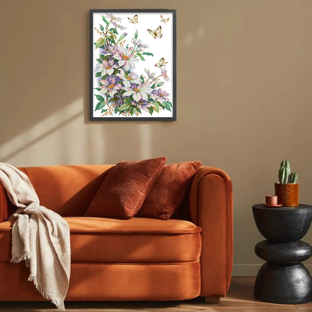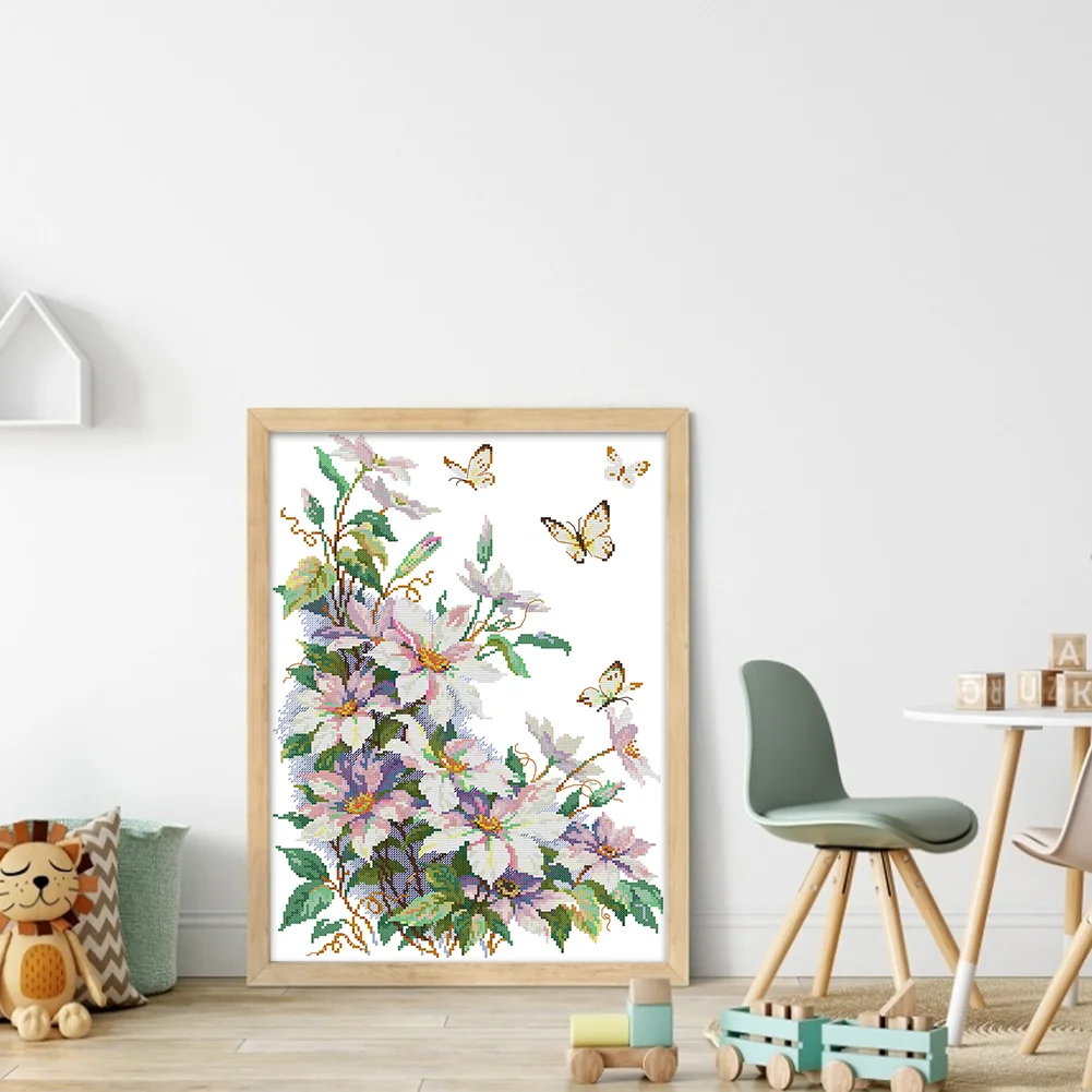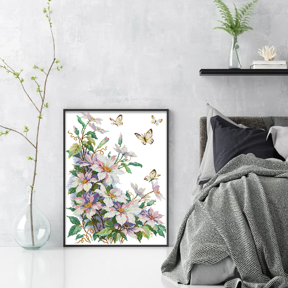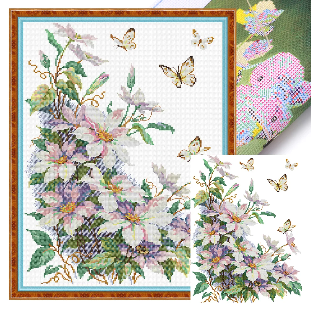 14CT Partial Stamped Cross Stitch - Clematis (35*47cm)