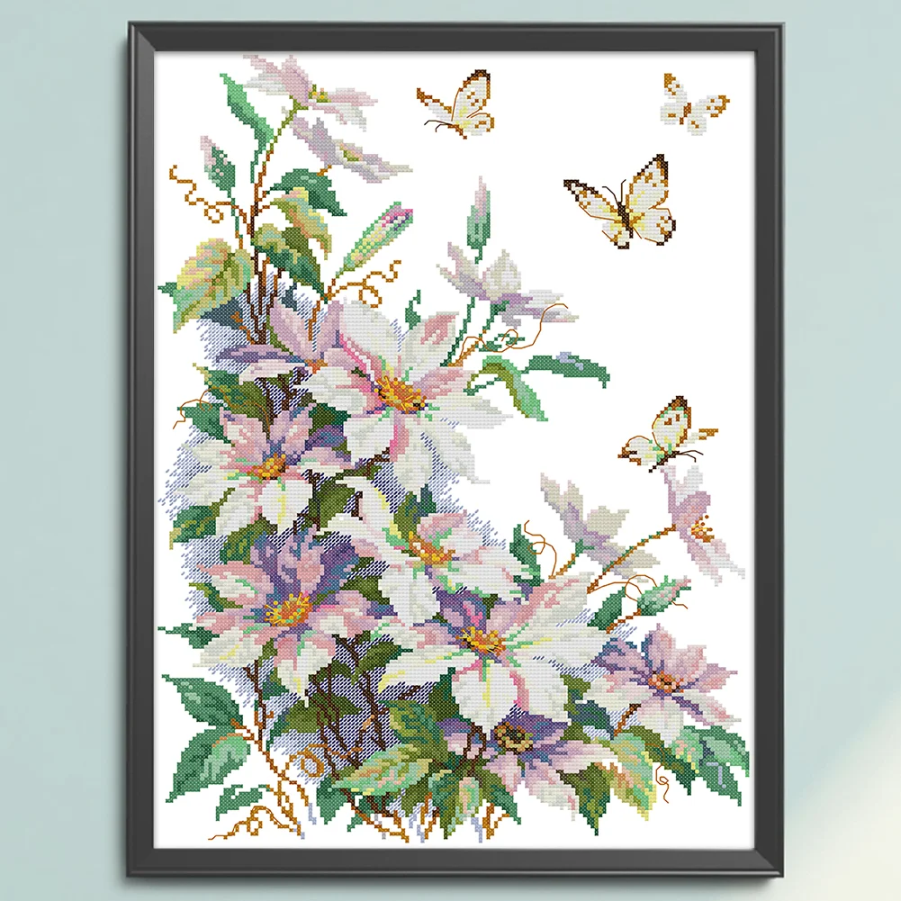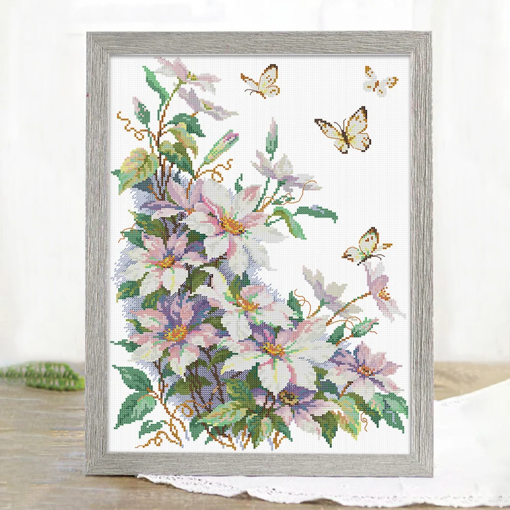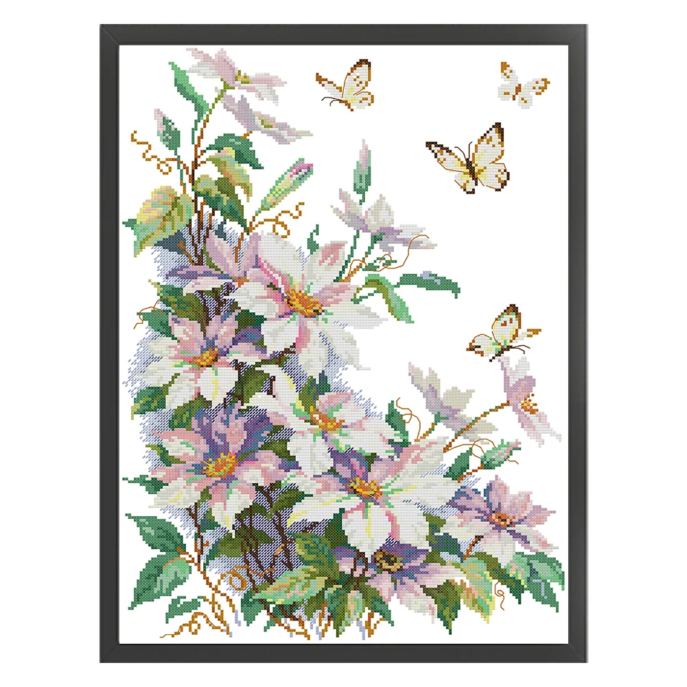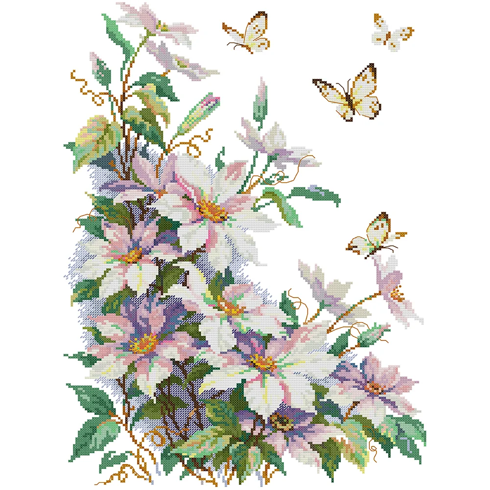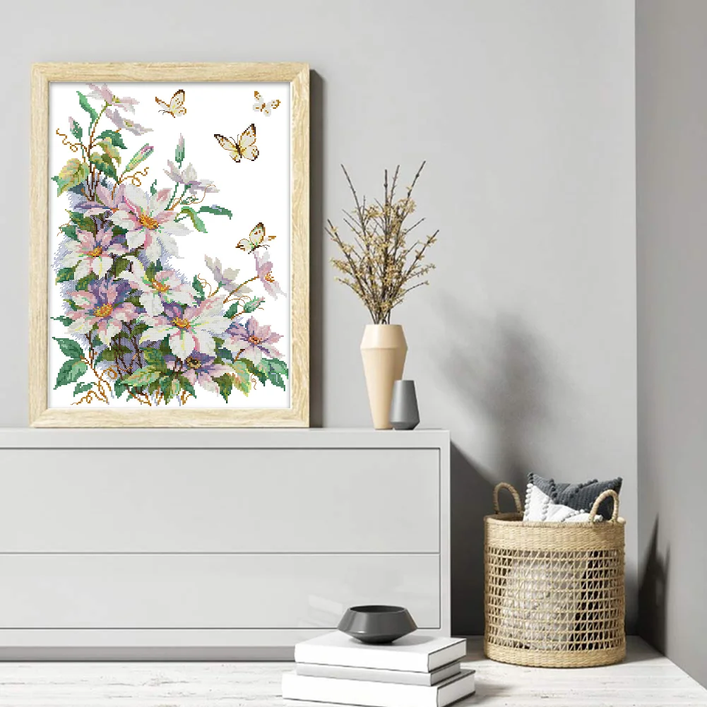 14CT Partial Stamped Cross Stitch - Clematis (35*47cm)