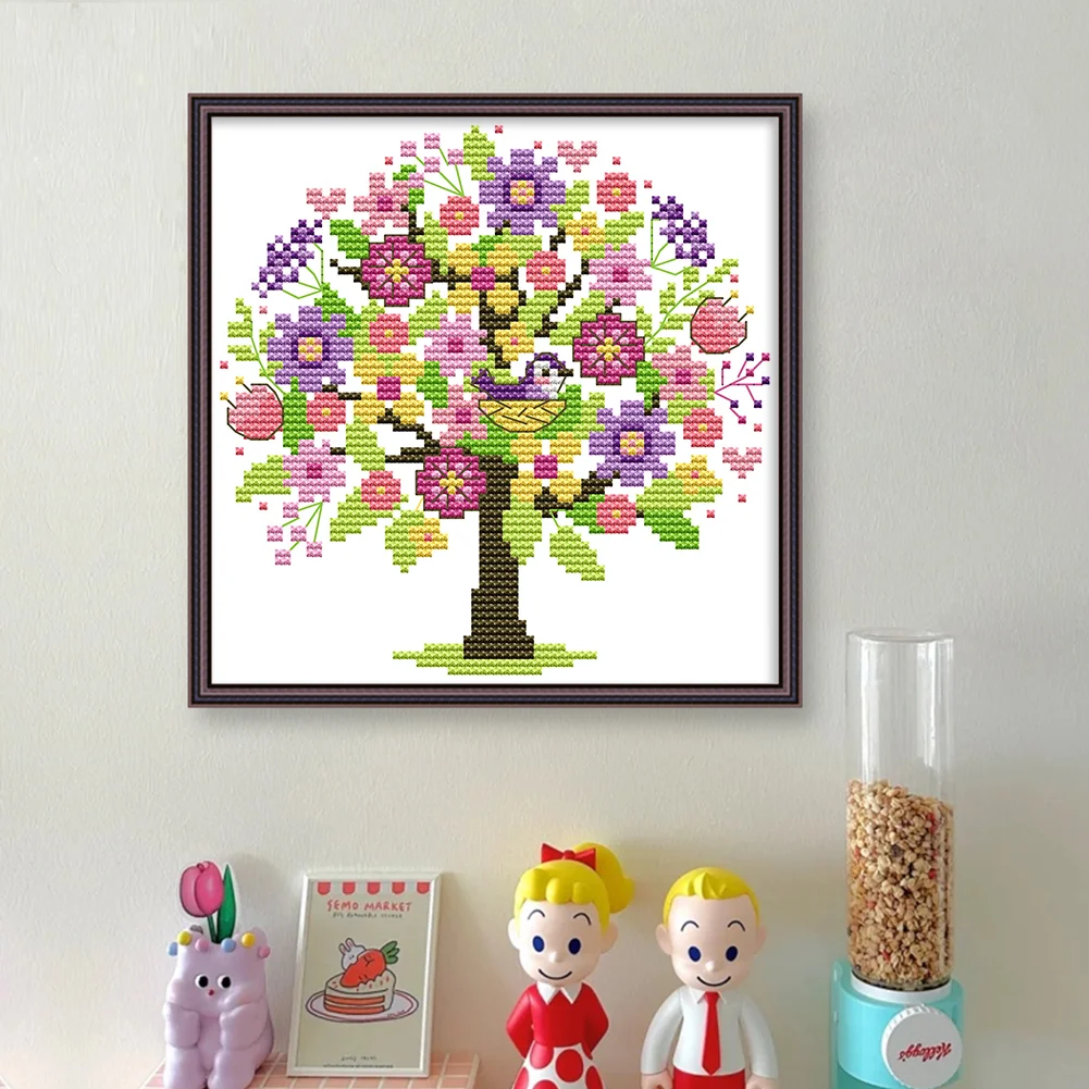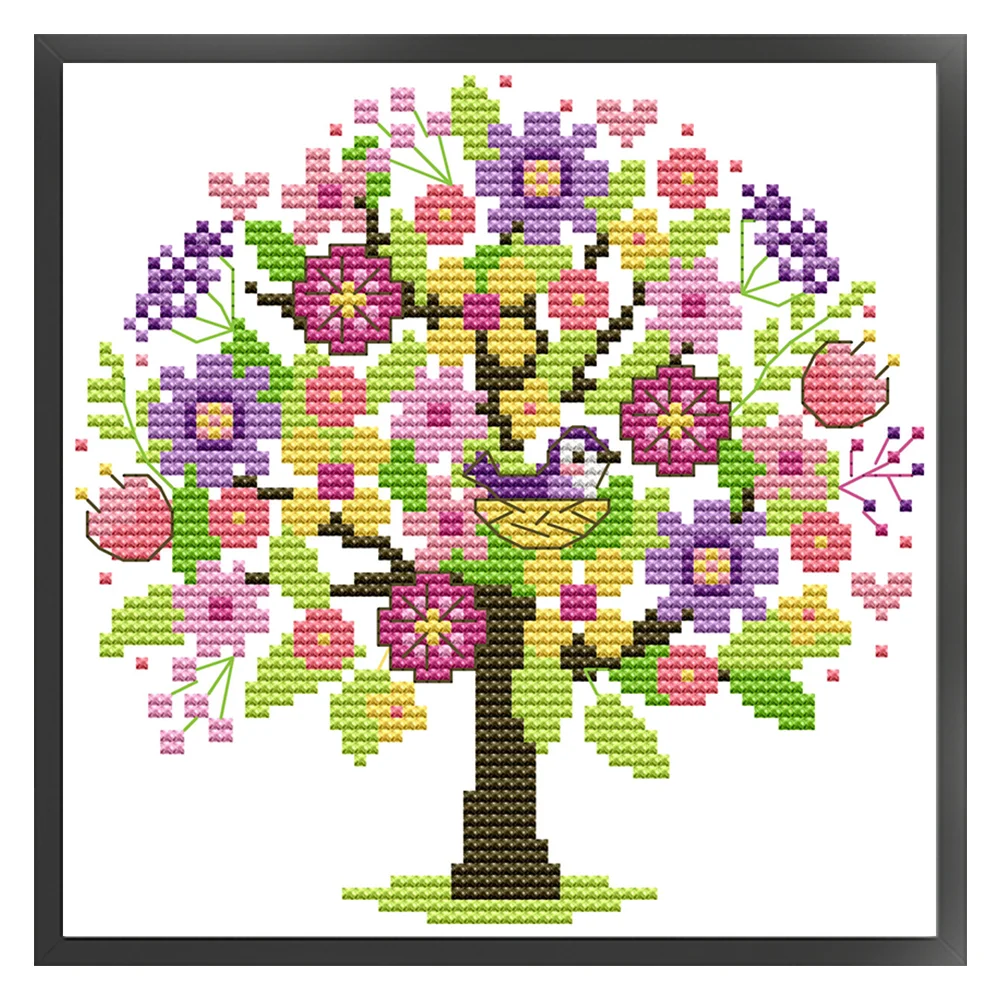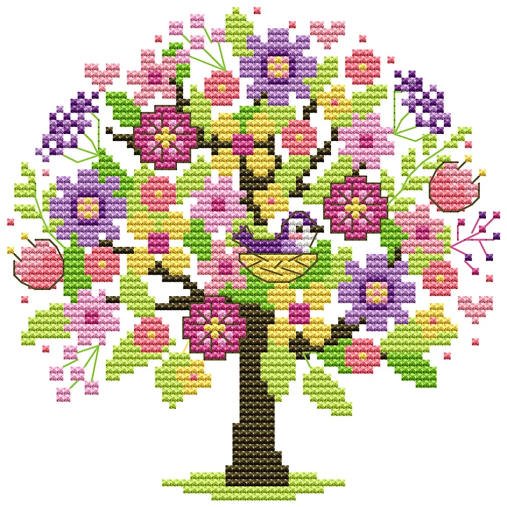 14CT Partial Stamped Cross Stitch Kit - Four Seasons Trees - Spring (18*18cm)