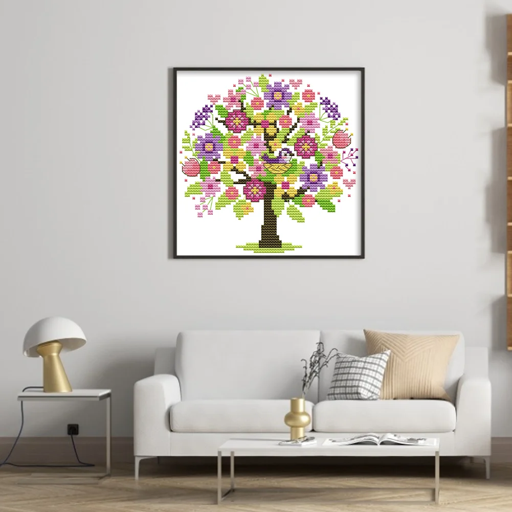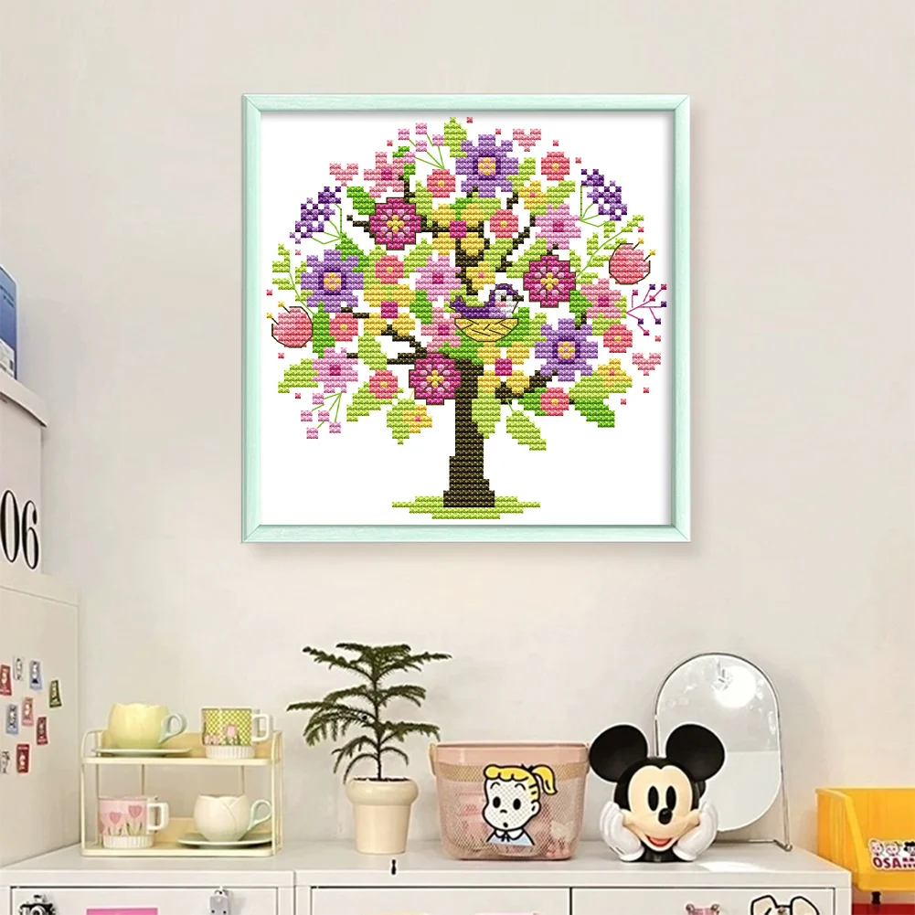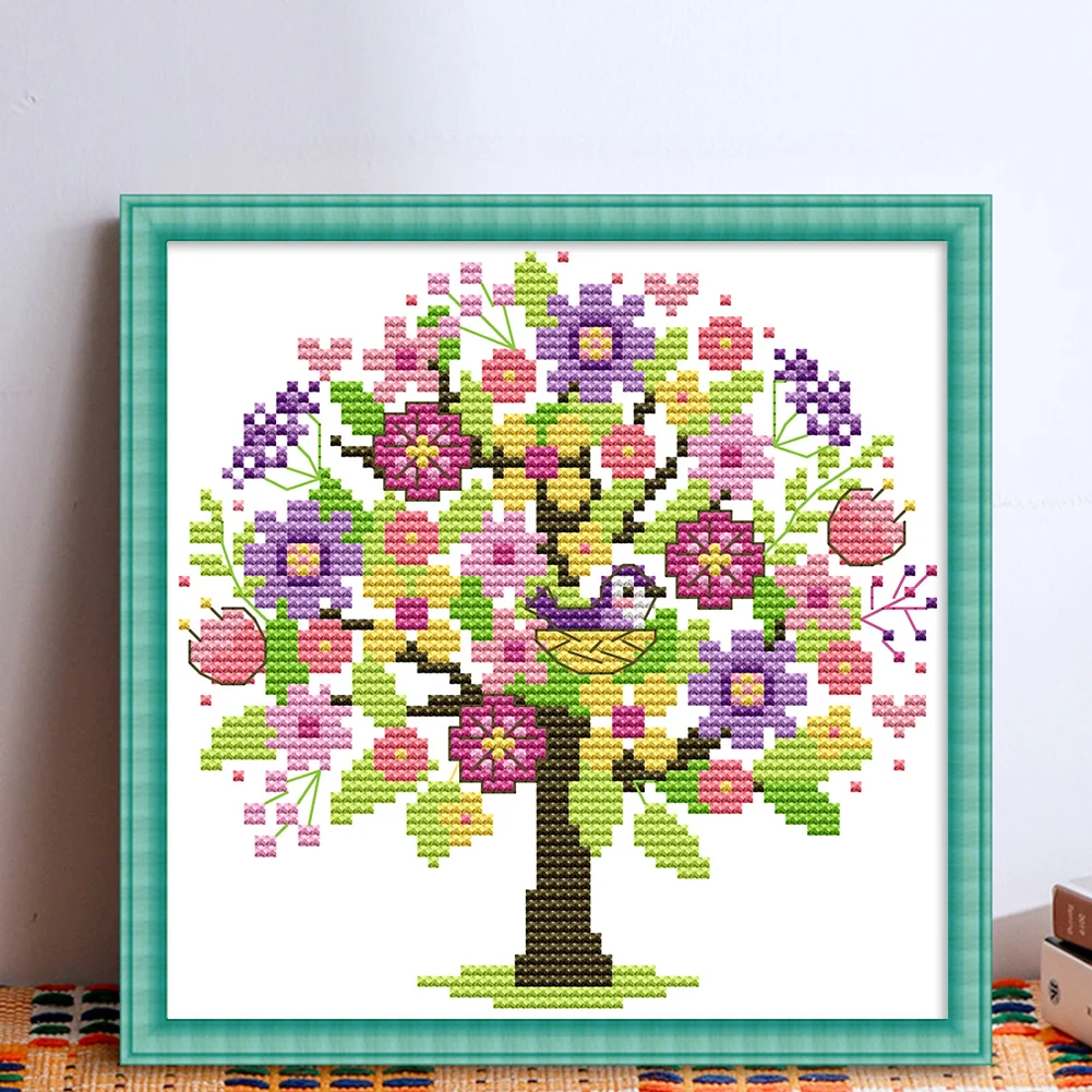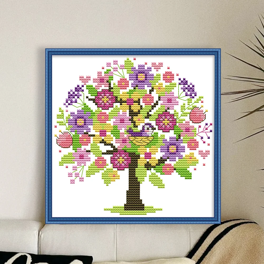14CT Partial Stamped Cross Stitch Kit - Four Seasons Trees - Spring (18*18cm)