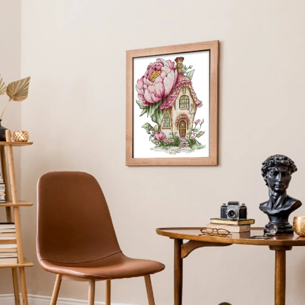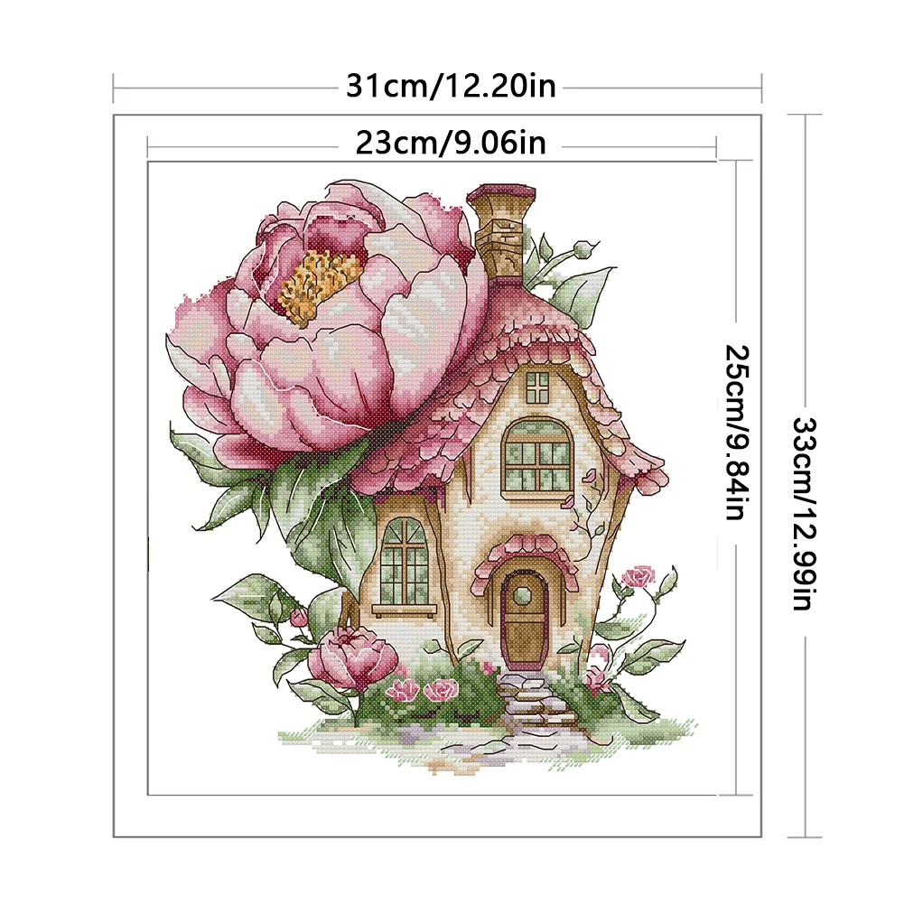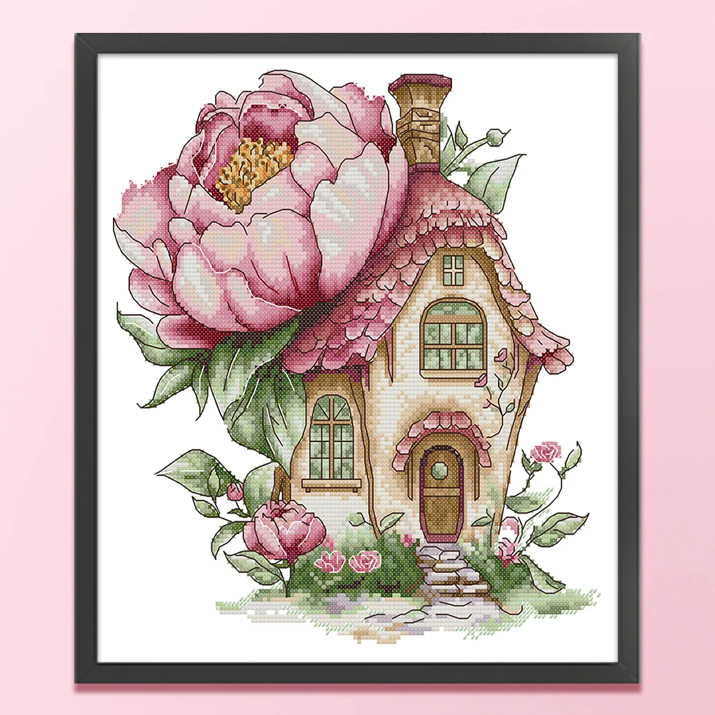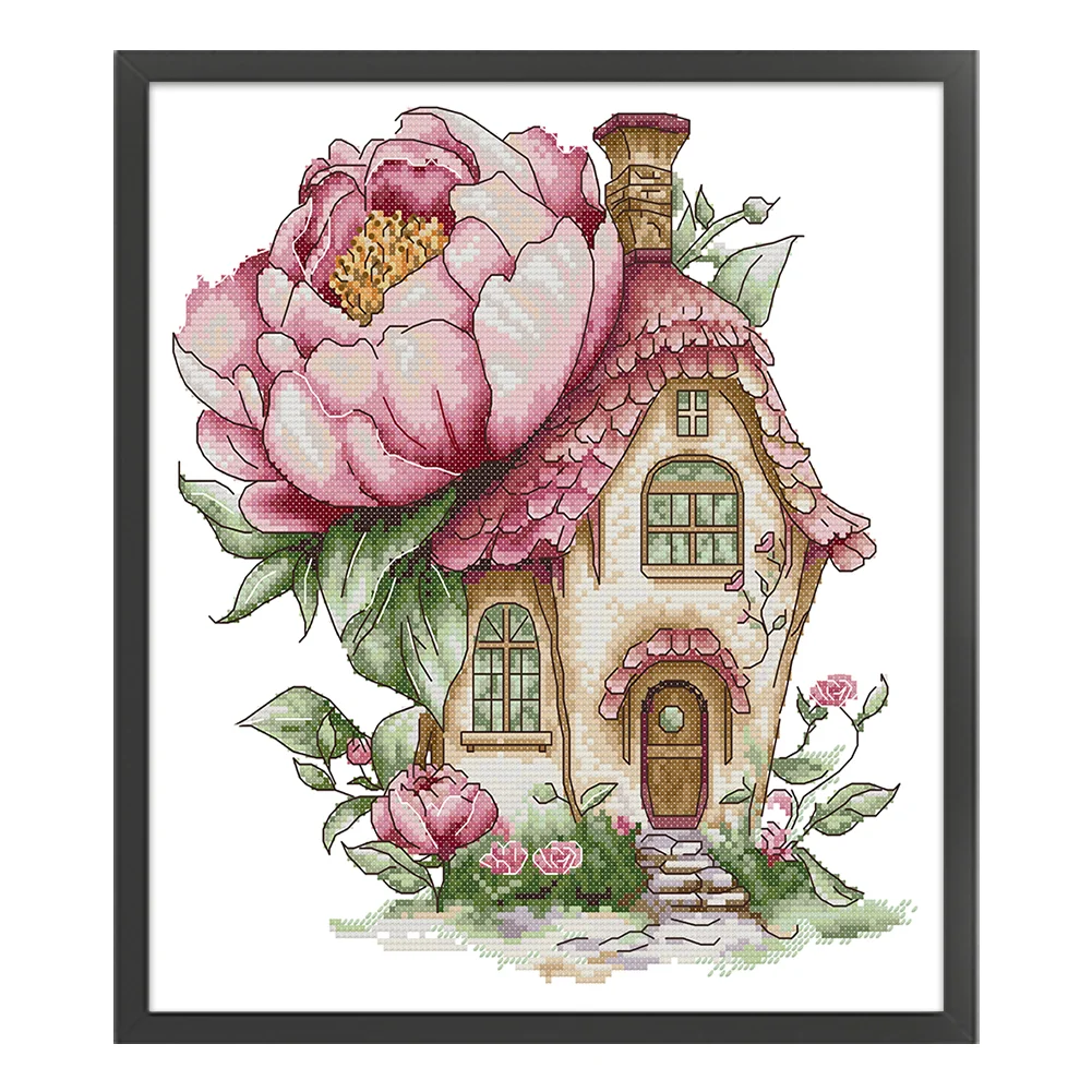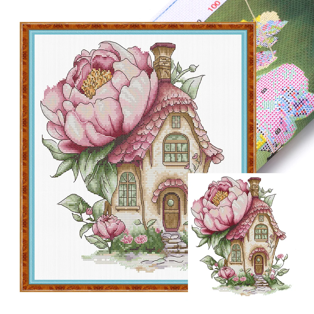 14CT Partial Stamped Cross Stitch - Peony Cottage (31*33cm)