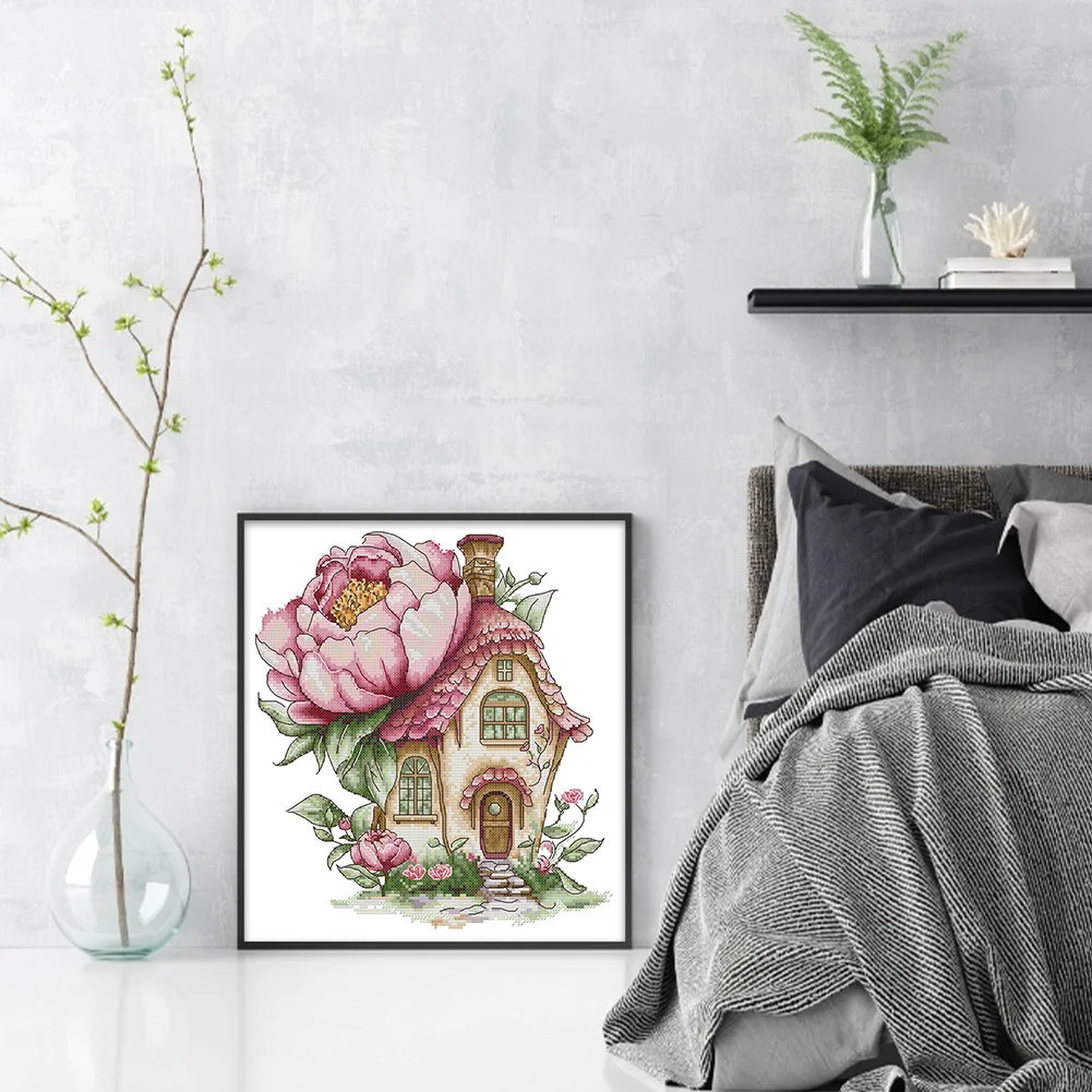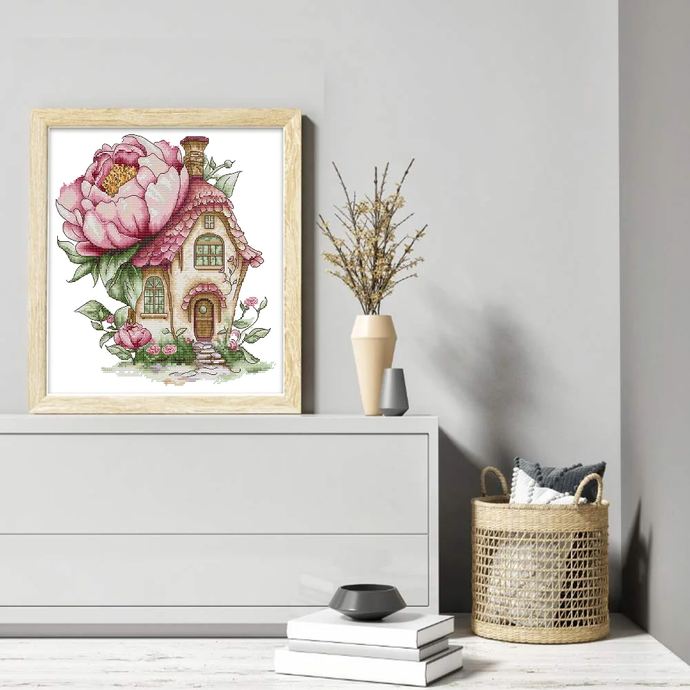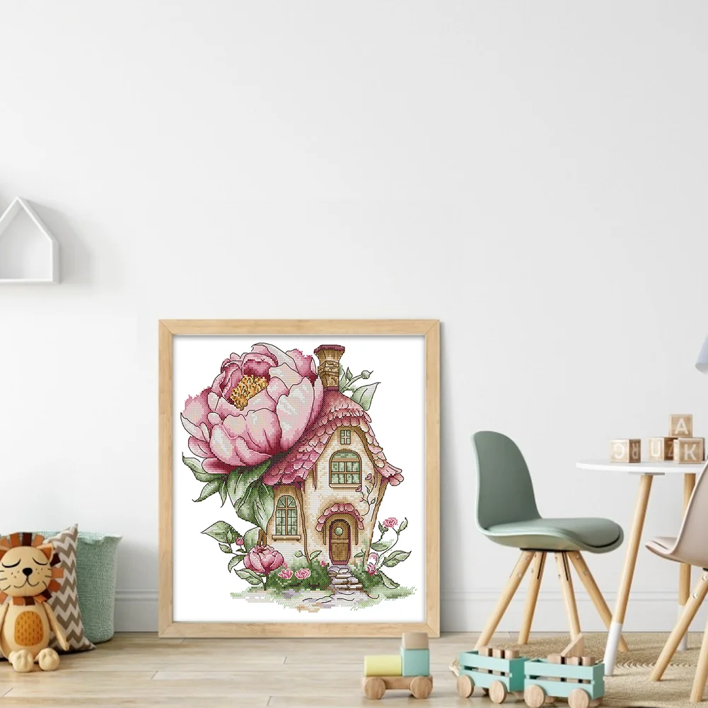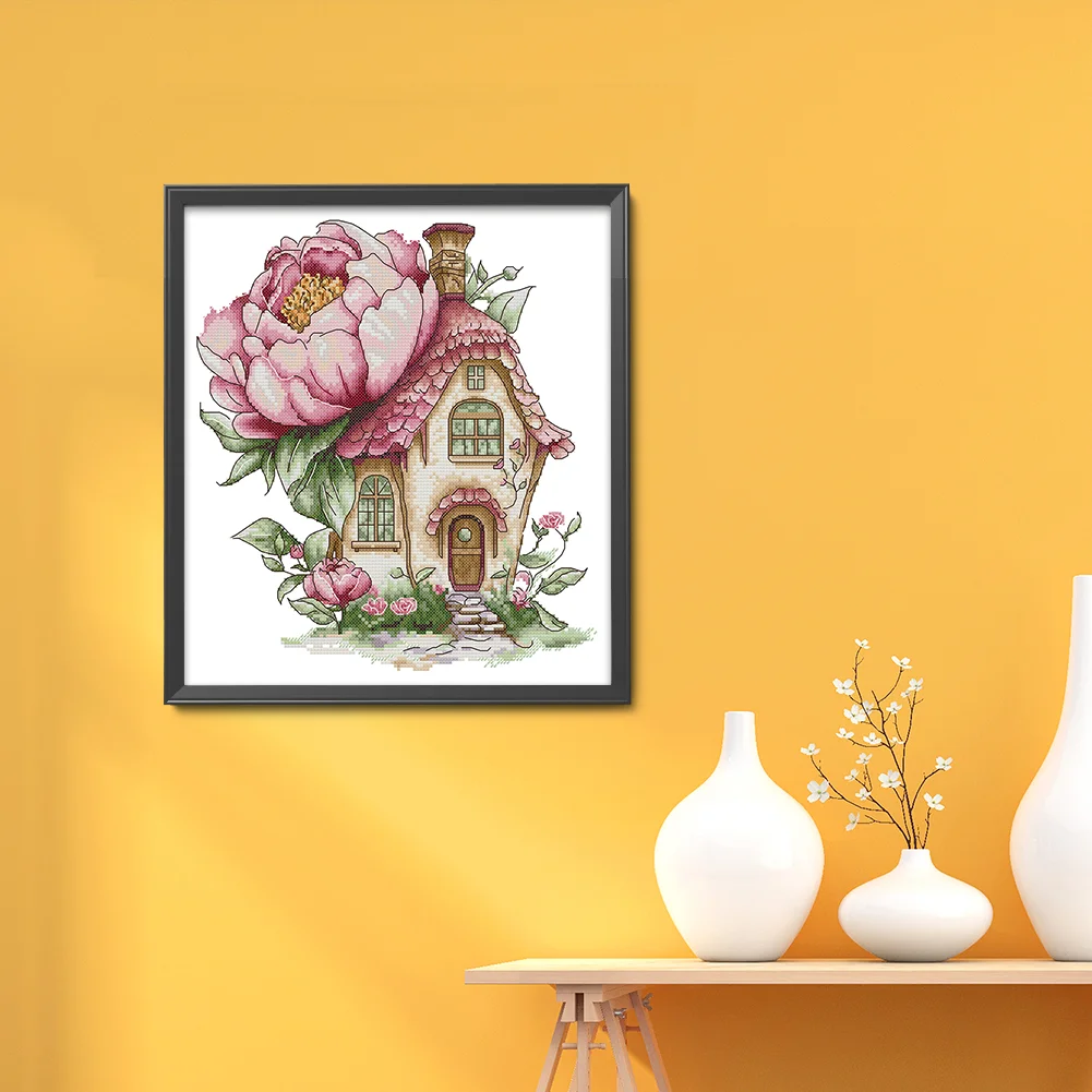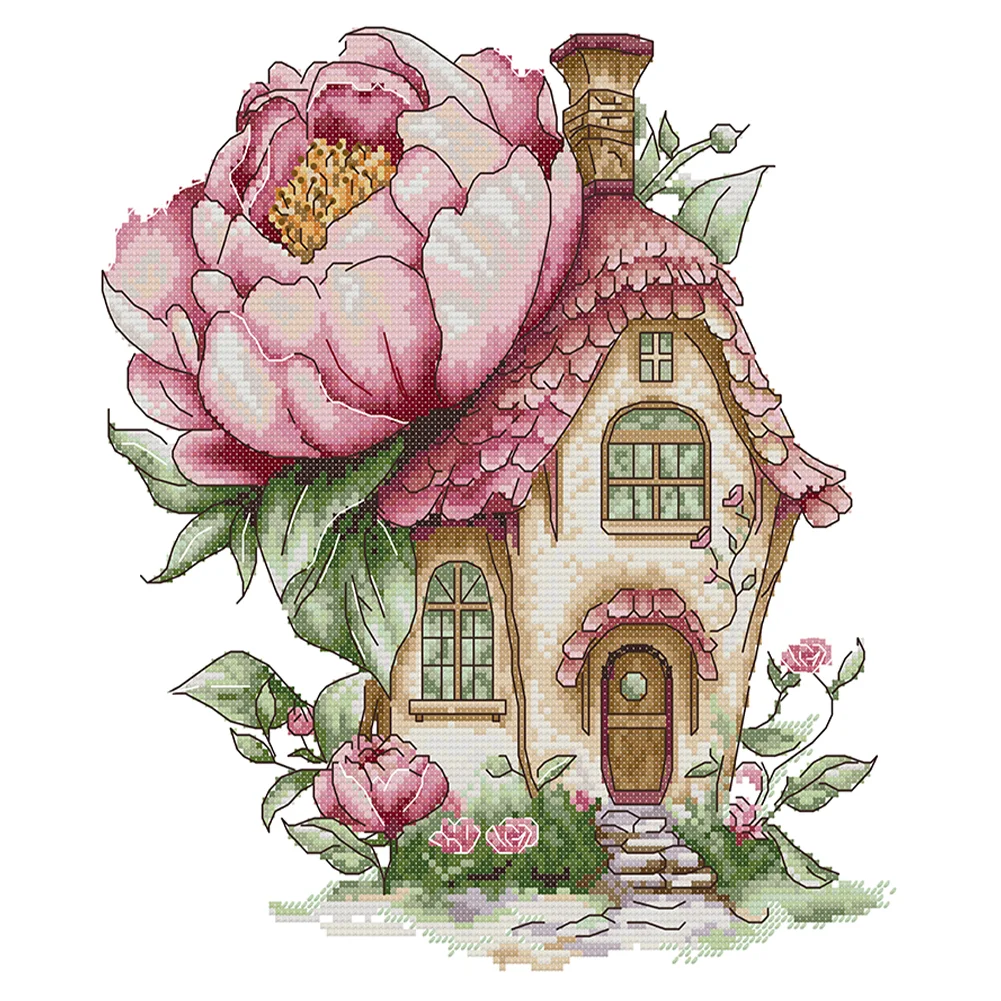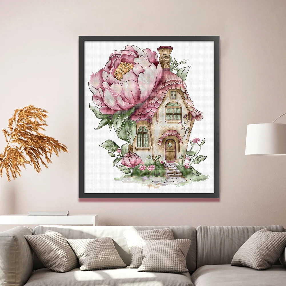 14CT Partial Stamped Cross Stitch - Peony Cottage (31*33cm)
