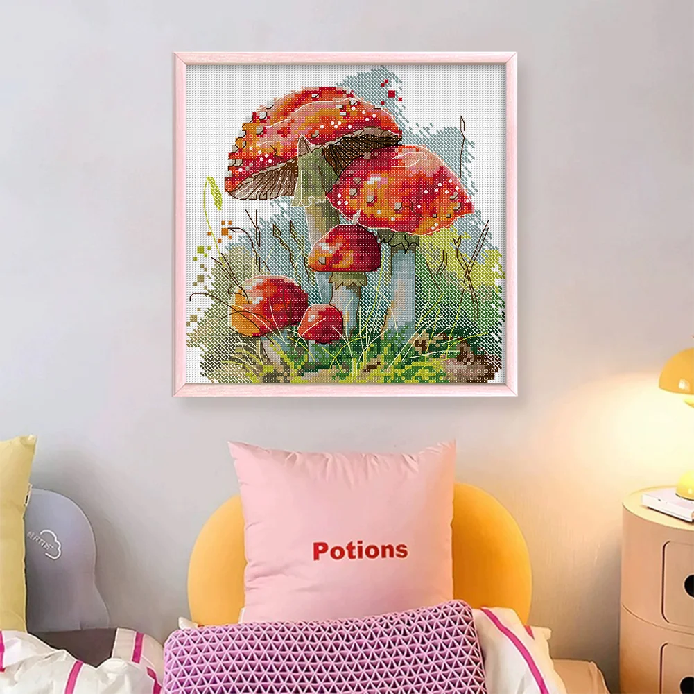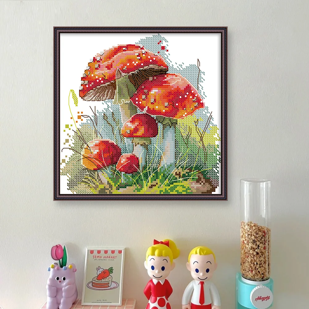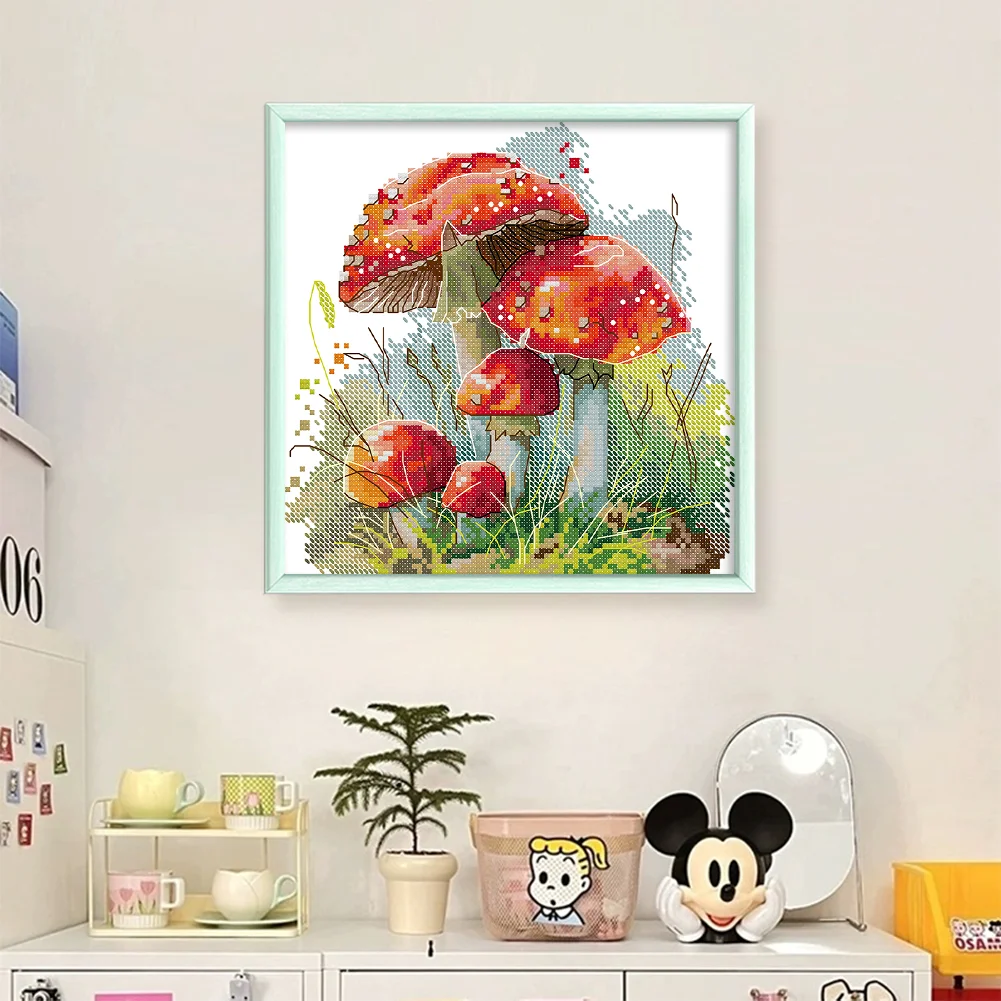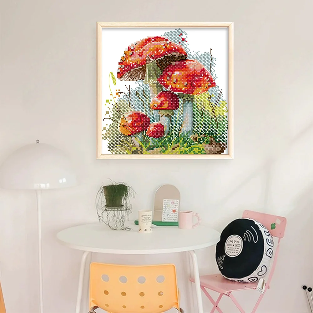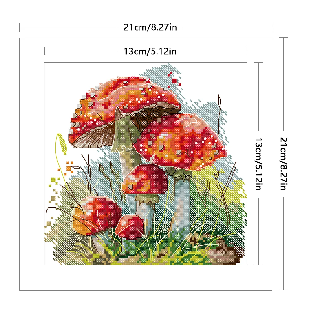 14CT Partial Stamped Cross Stitch - Red Mushroom In The Grass (21*21cm)