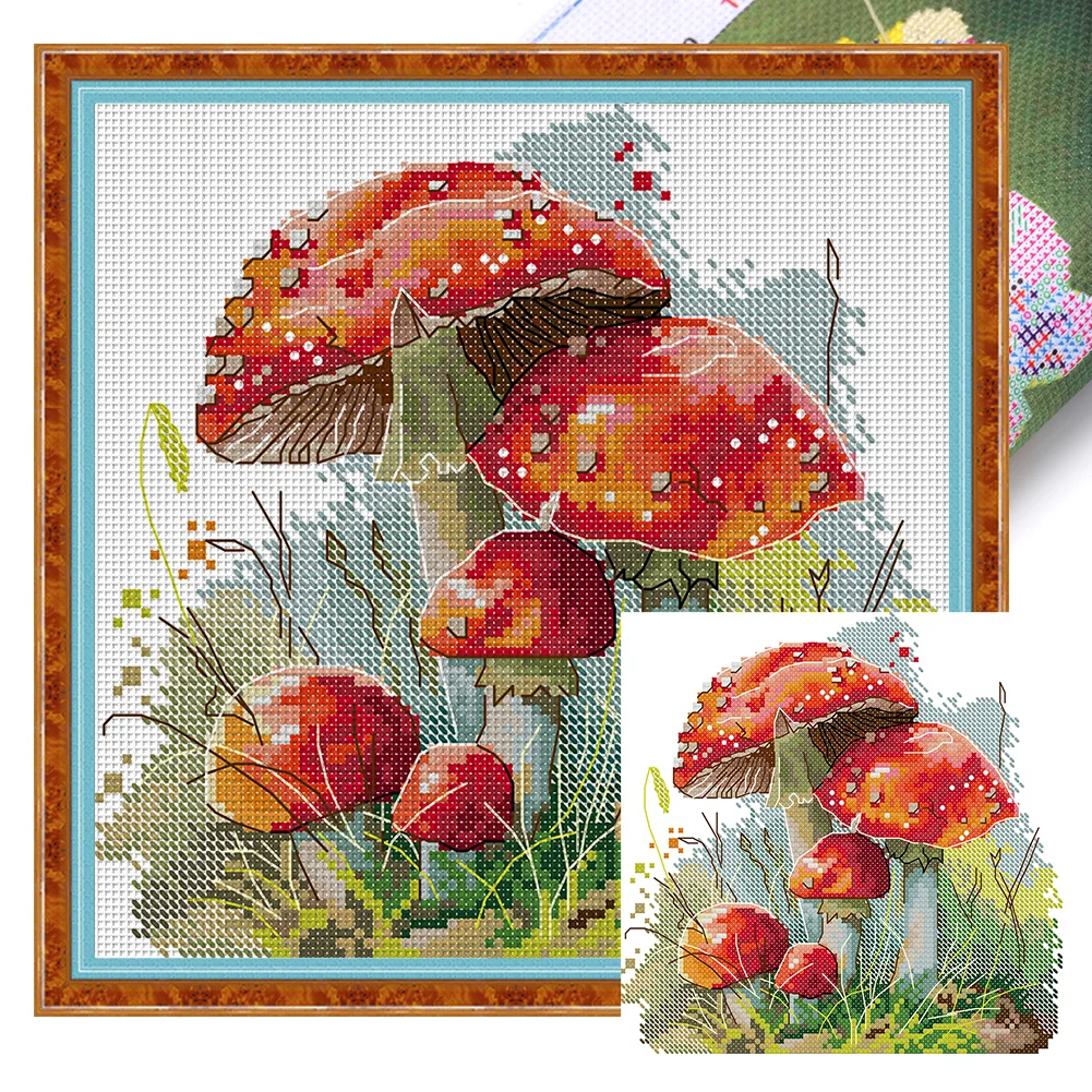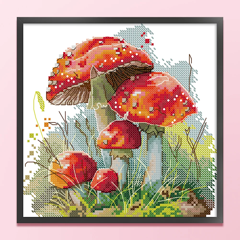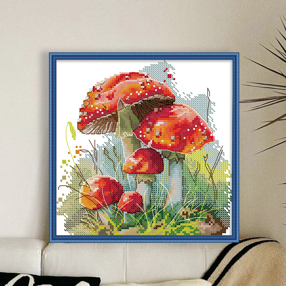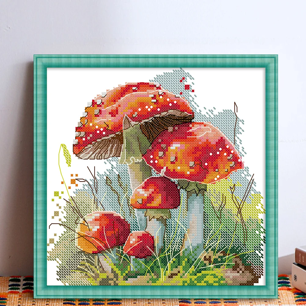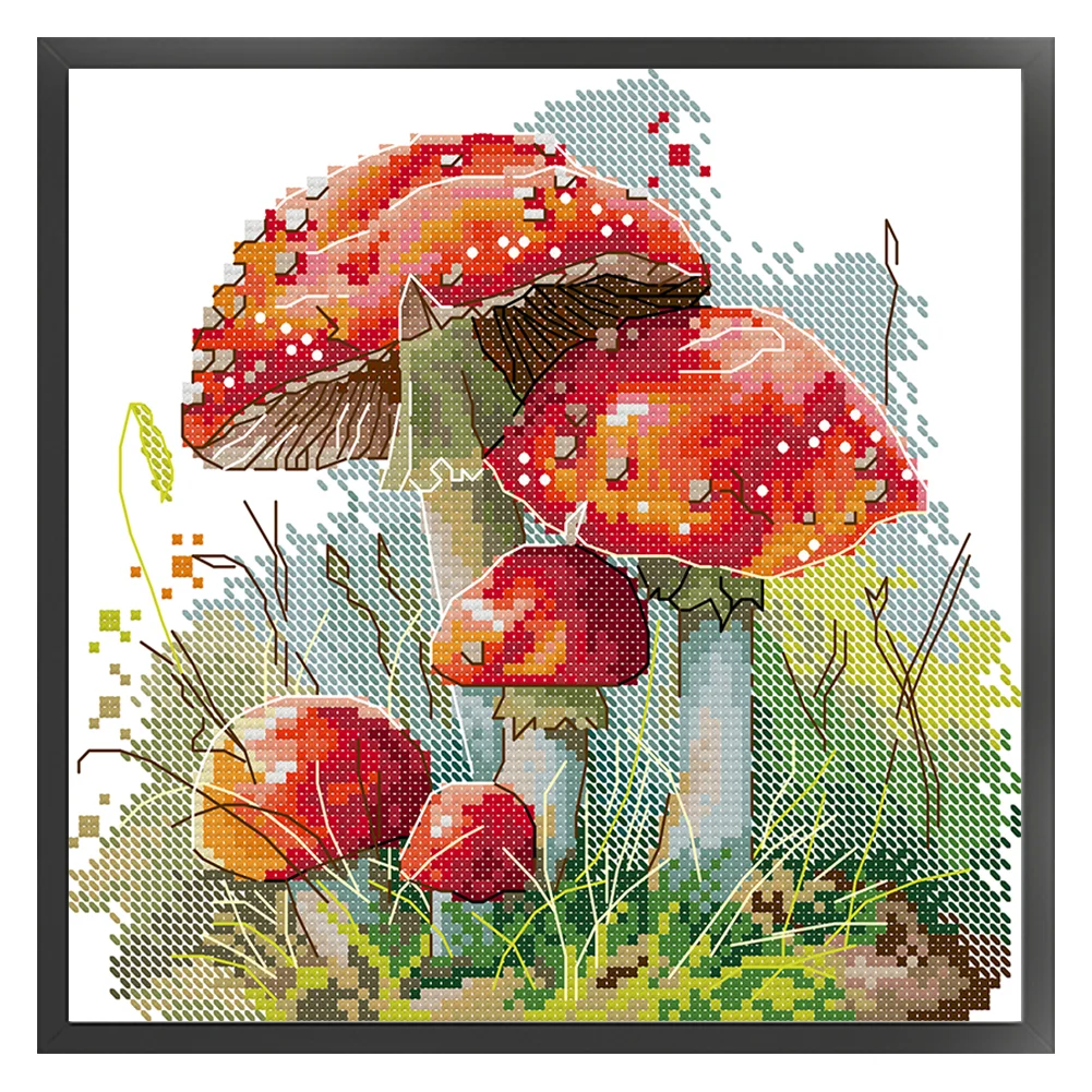 14CT Partial Stamped Cross Stitch - Red Mushroom In The Grass (21*21cm)