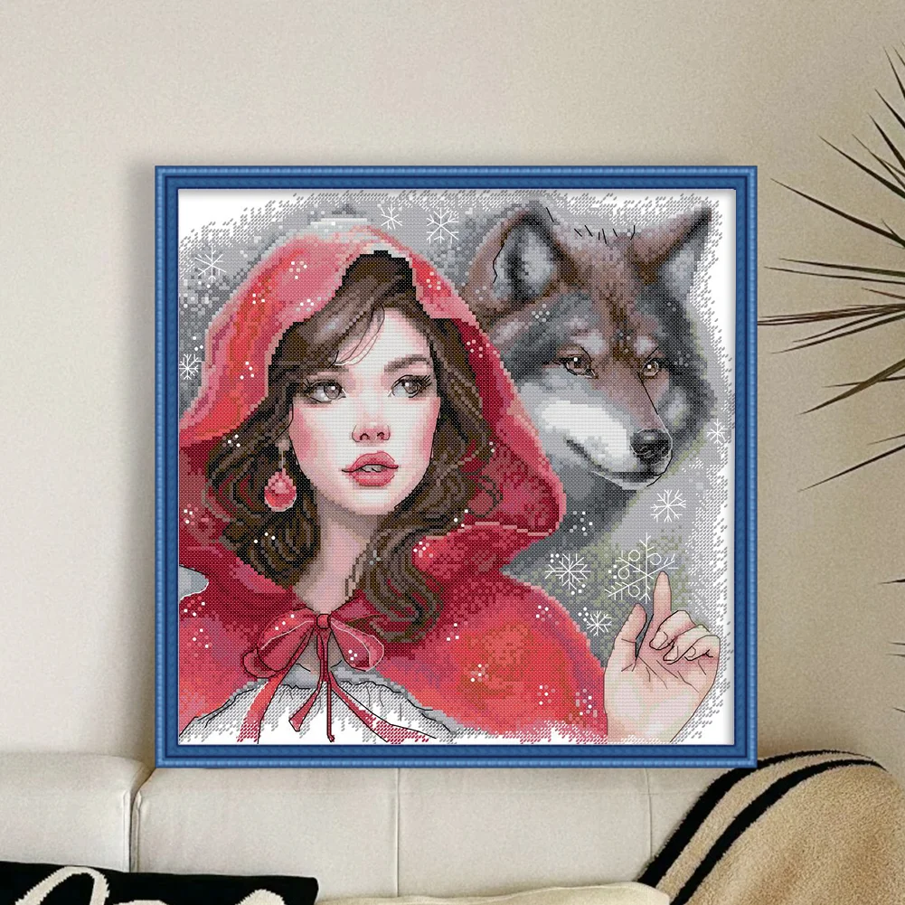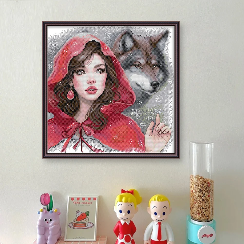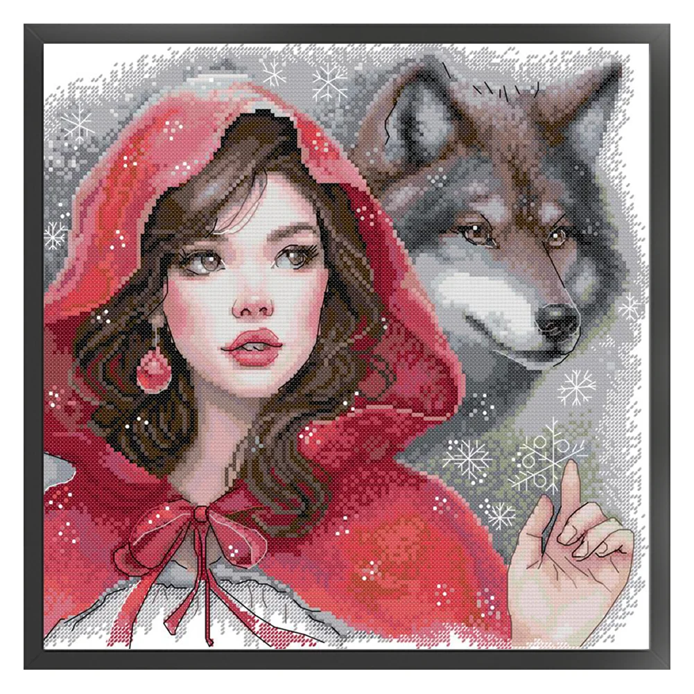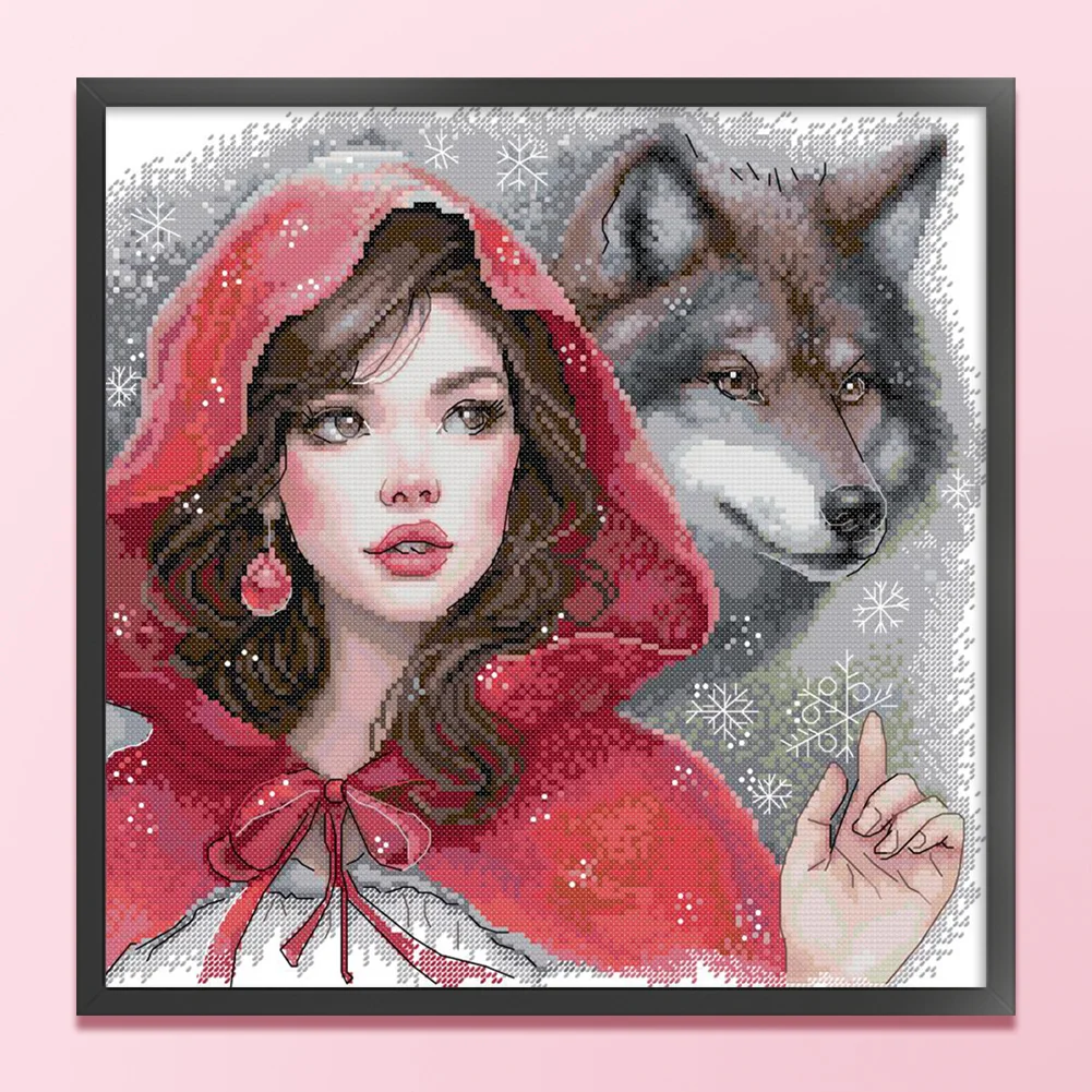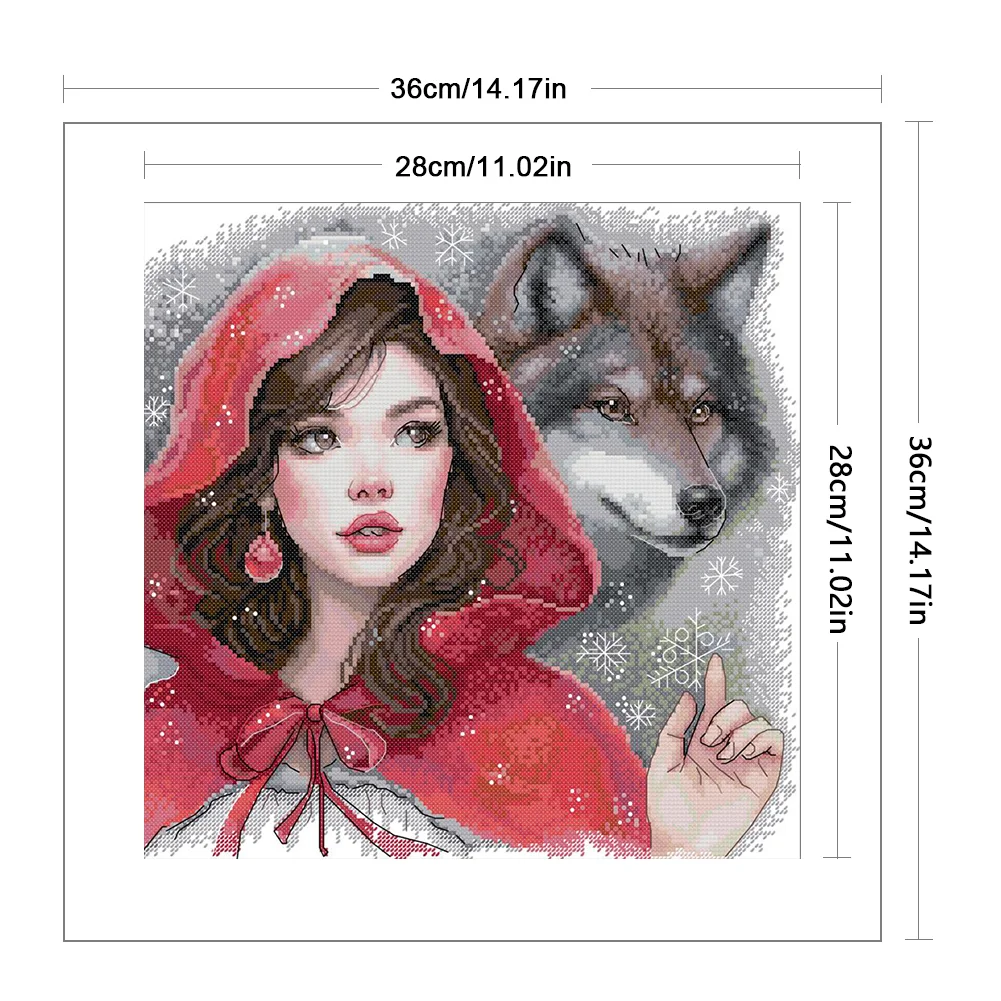 14CT Partial Stamped Cross Stitch - The Red Girl And The Big Bad Wolf (36*36cm)