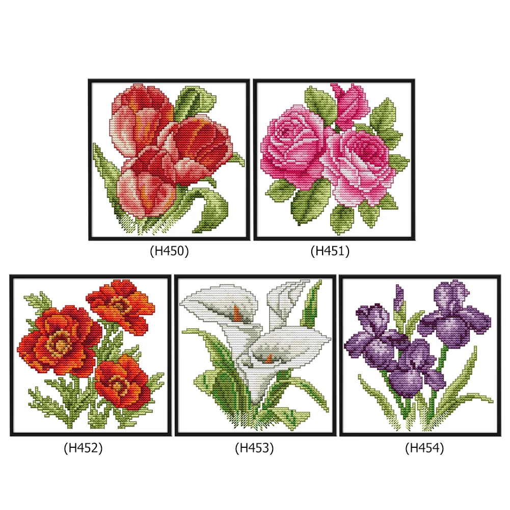 17x17cm Eco-cotton Thread 14CT Stamped Print DIY Blooming Flowers Handmade Cross Stitch Artwork Canvas Embroidery Kit Needlework Home Decor Ornaments Craft