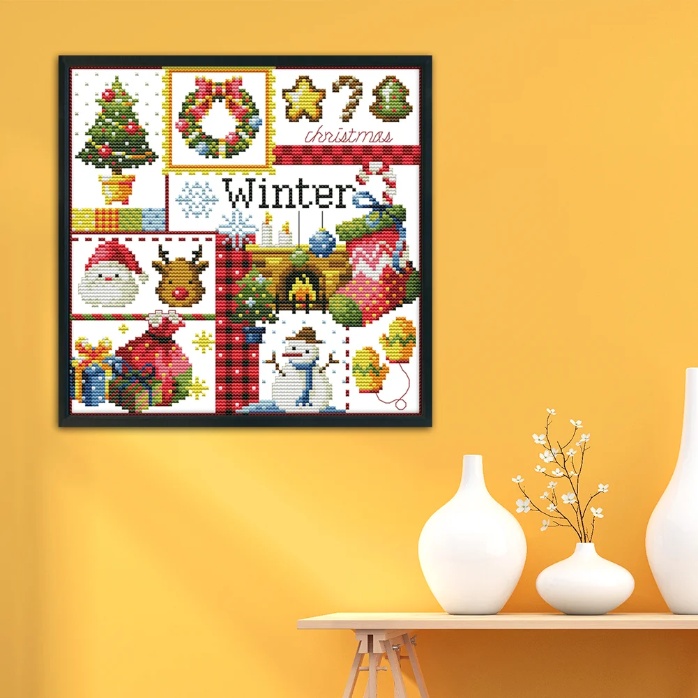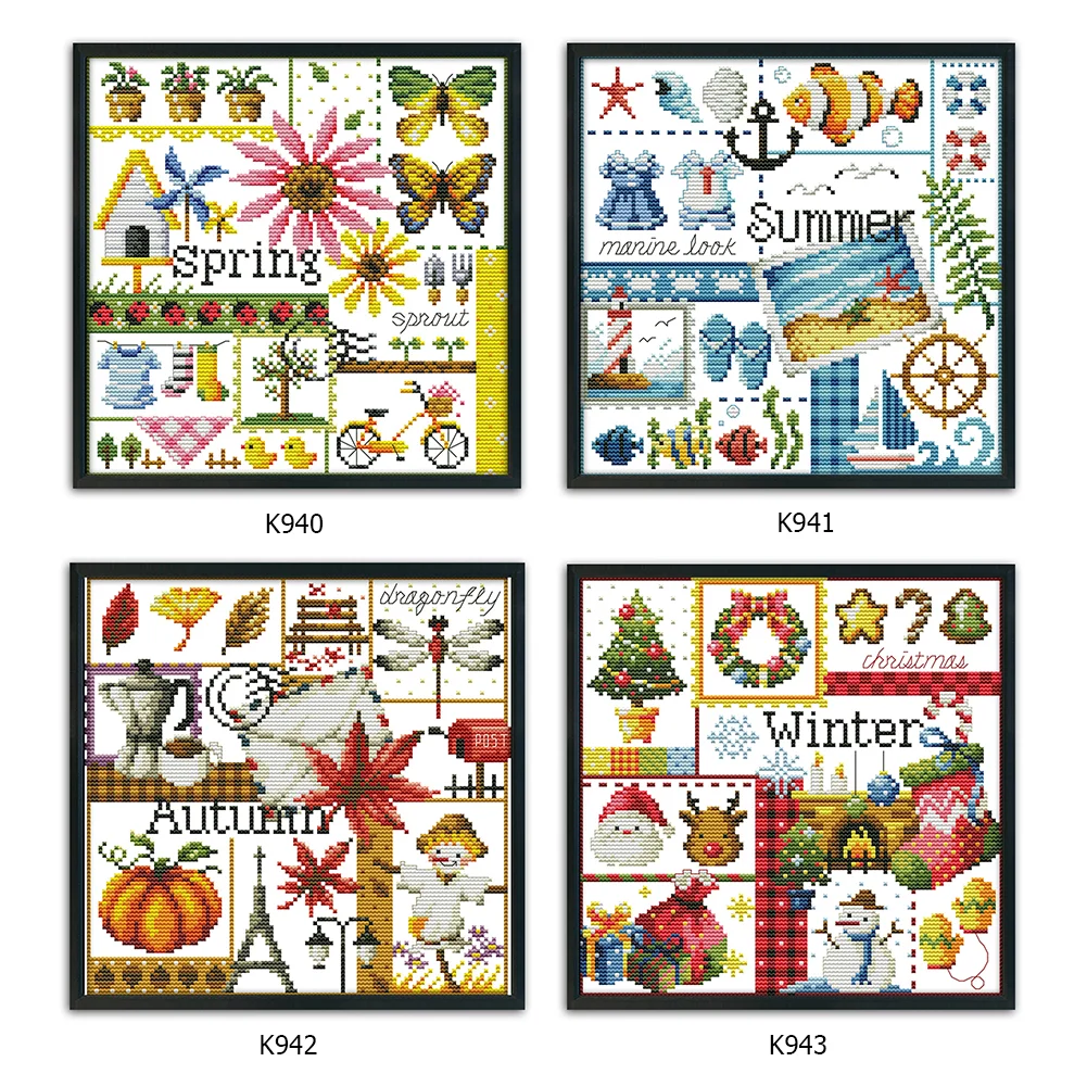 14CT Stamped Cross Stitch Kits Needlework DIY Four Seasons Printed Ecological Cotton Embroidery Mosaic Craft Artwork for Home Decor Gift