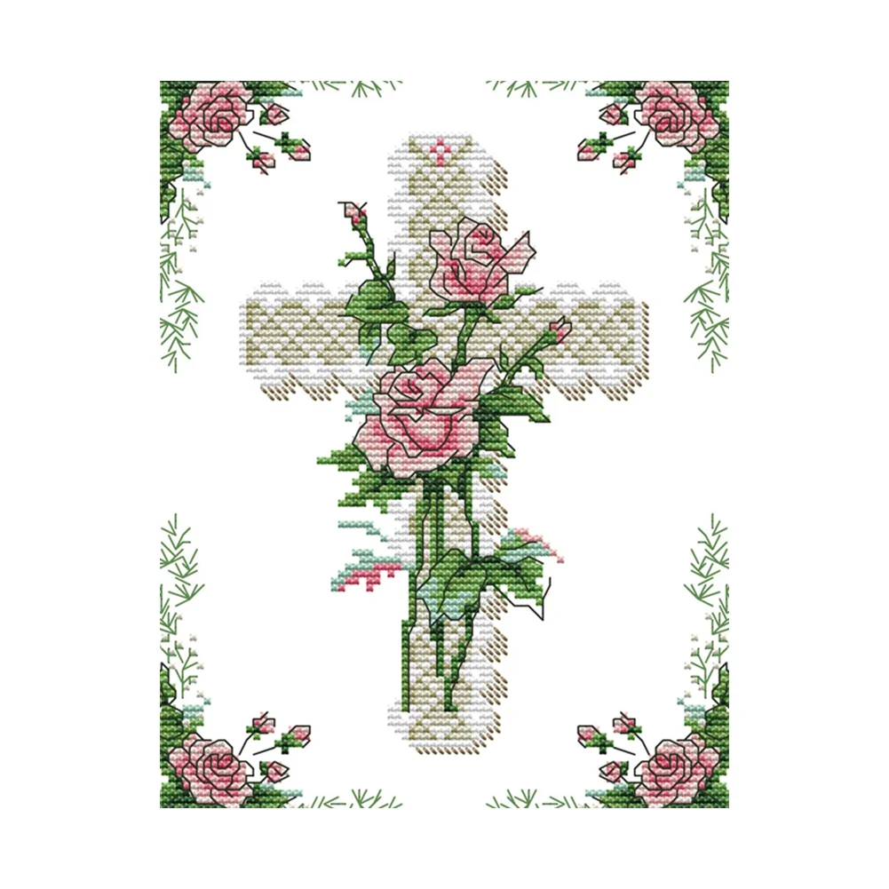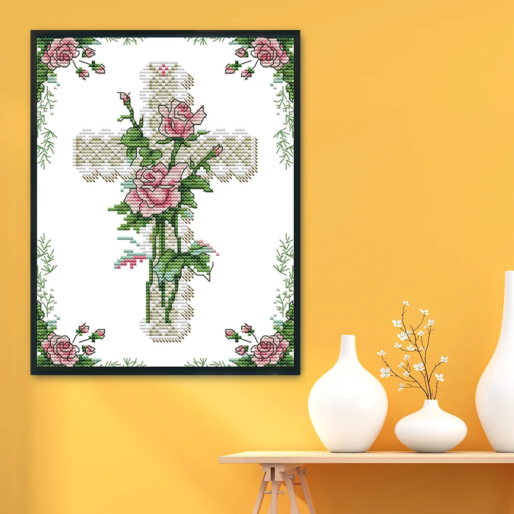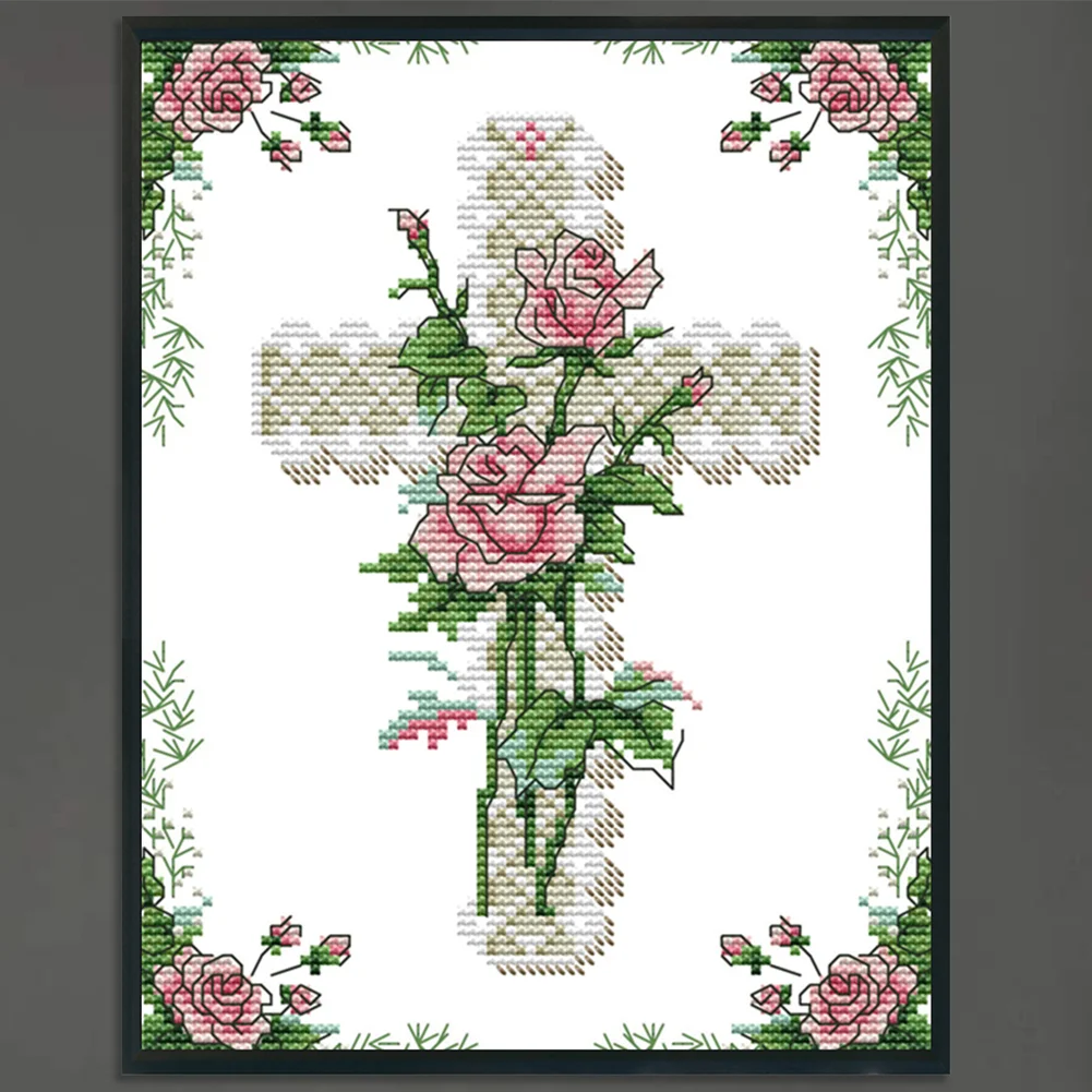 Religious Still Life Stamped Fabric Cross Stitch Kits 2-Strand Cotton Thread 14CT Pre Printed Needlework Embroidery DIY Sets Crafts Home Decoration