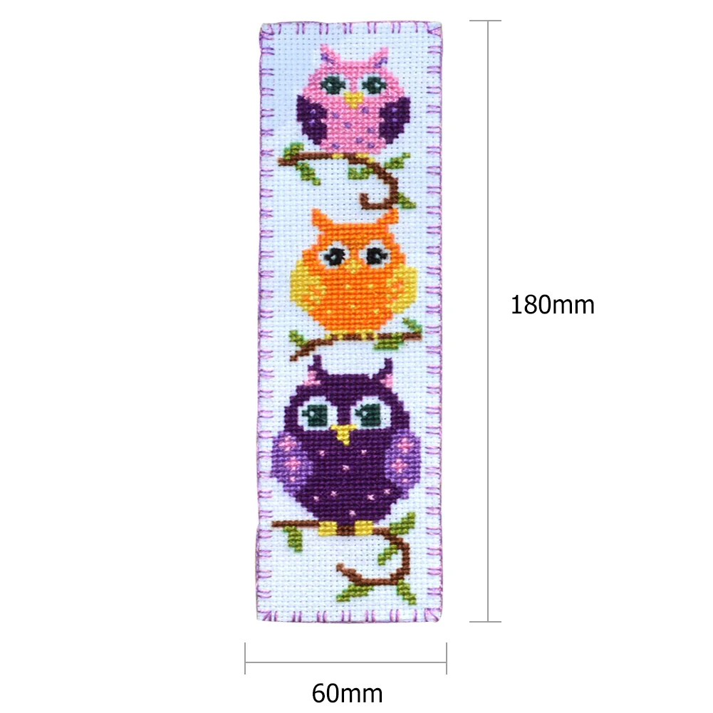 Owl Bird Bookmark Eco-cotton Thread Double-sided 14CT Counted DIY Handmade Cross Stitch Artwork Canvas Embroidery Kit Needlework Book Tab Ornaments Craft