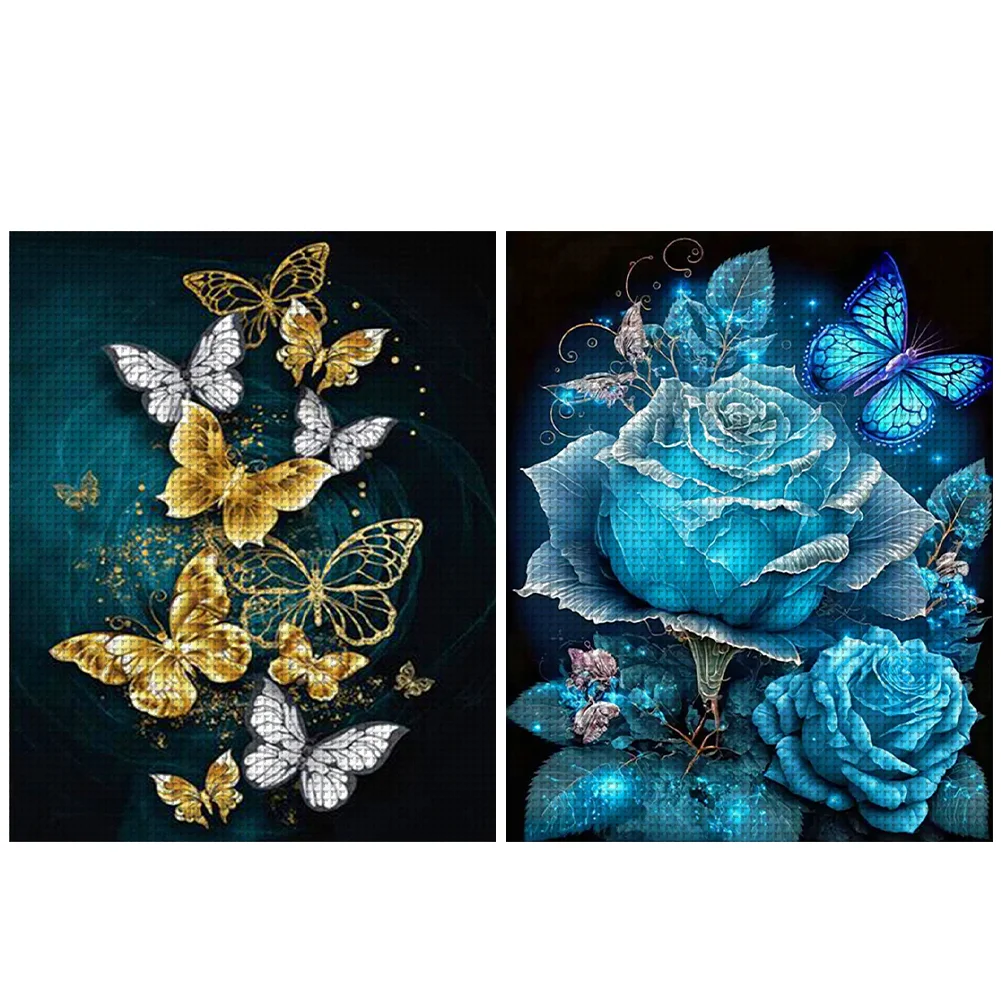 (2pcs) 11CT Full Stamped Cross Stitch Kit - Flower (40*50CM)